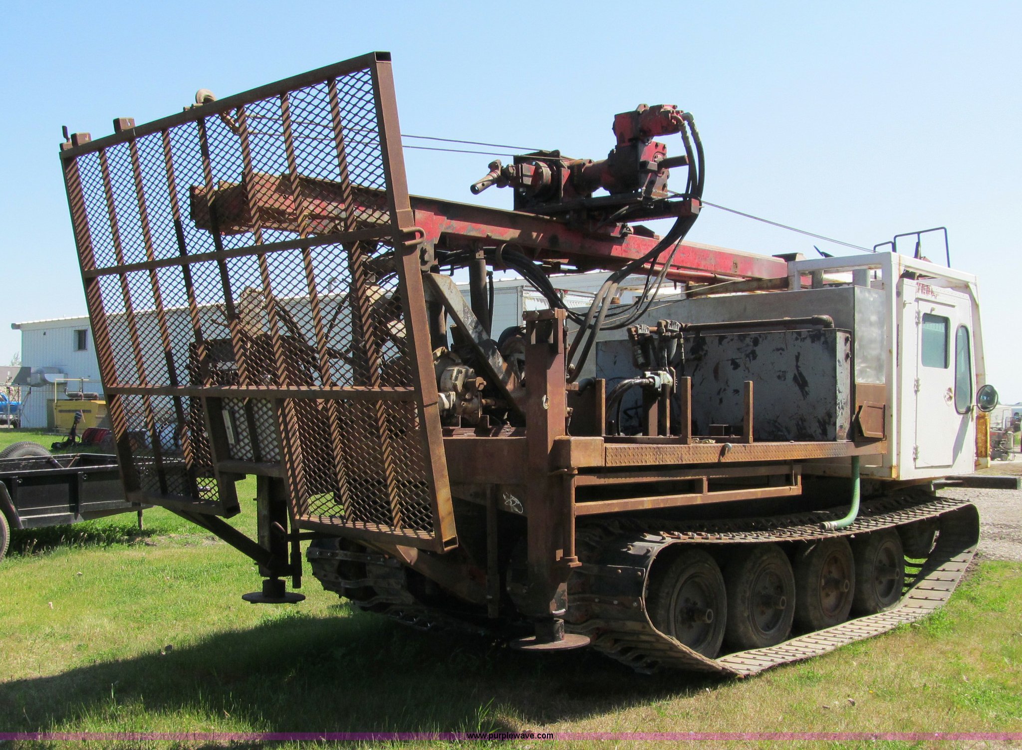 1980 Mobile B53 all terrain test drill rig. 3,445 hours on meter, Mounted on a Go Tracts GT800 Serial 800-82-06, Cummins 6BTA 200 HP engine, Five speed manual transmission, Heated two seat cab, Stick steering controls Recently replaced steering pads, (4) hydraulic leveling pads, Single line winch, Fold down work platform, Three stage hydraulic pump, Four speed transmission on rotary auger, Fold out auger rack, Recently replaced bearing in rotary transmission and rotary, (2) winches, Down hole hammer Recently replaced winch, 200 gallon stainless water tank, can be heated, Toolbox, No tooling included, 34" rubber tracks with steel cleats, Foam filled tires, Serial 624531. View repairs. View equipment video. Shipping quotes available. Terracon. 4102 7th Avenue North. Fargo, ND 58102