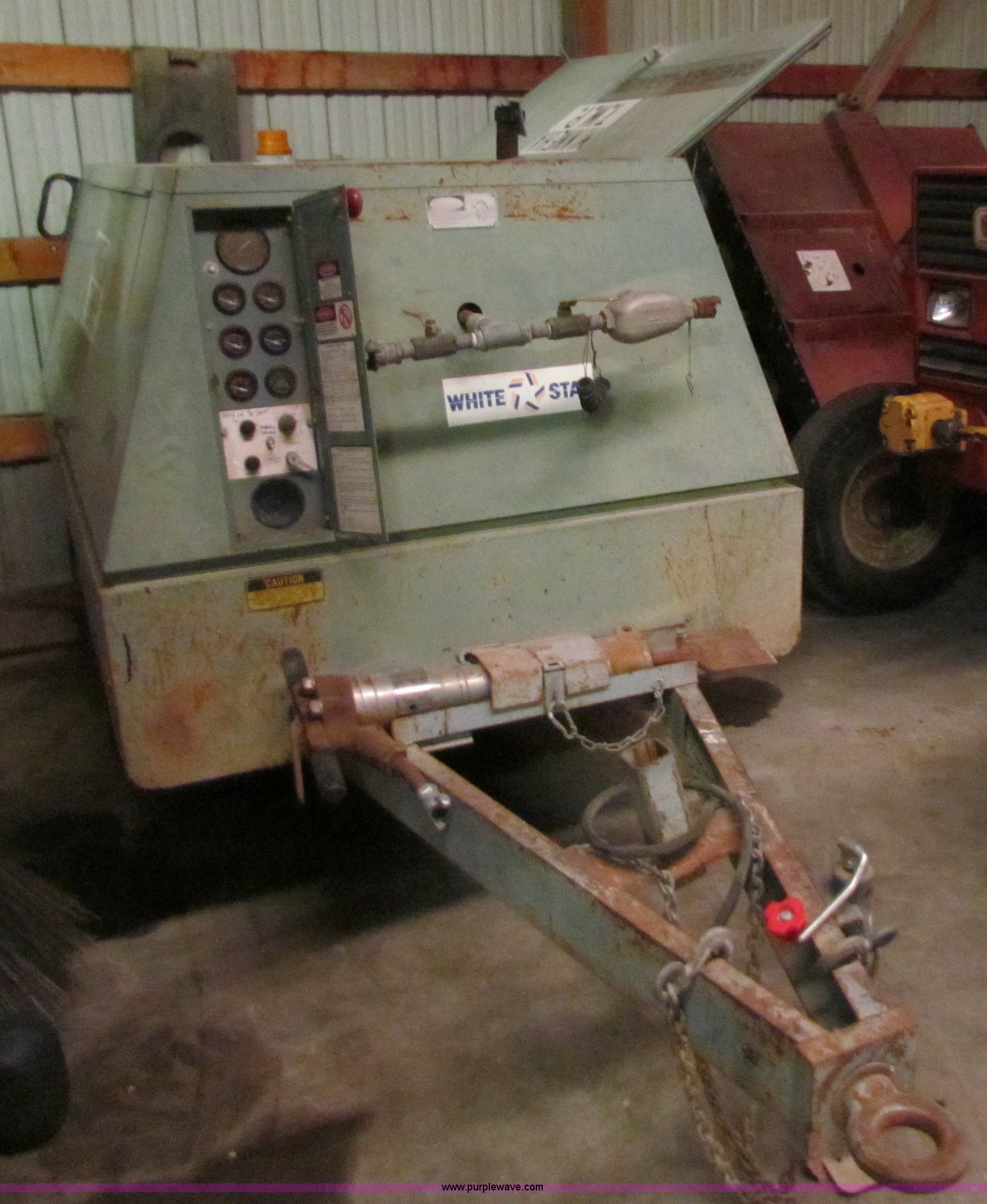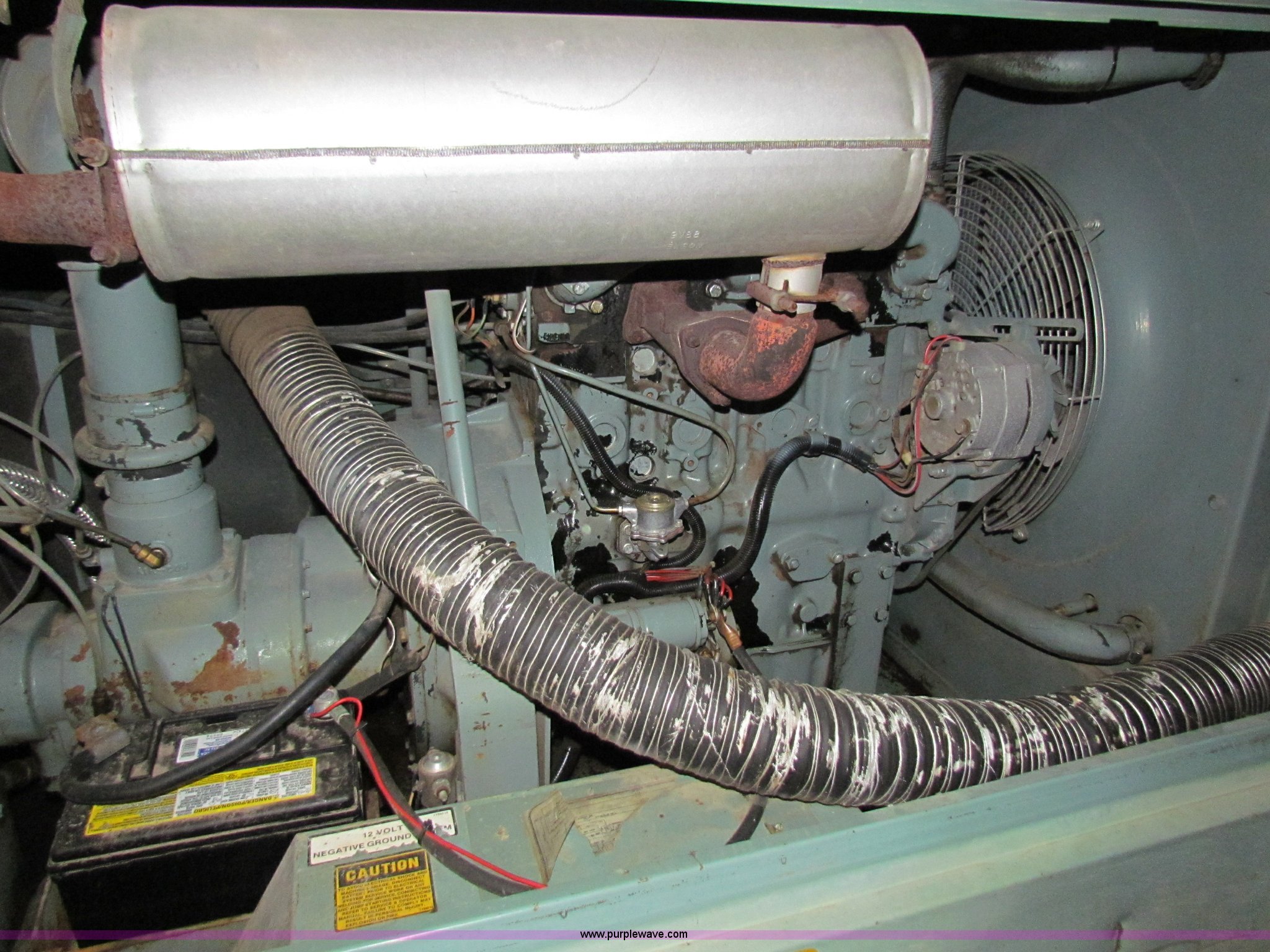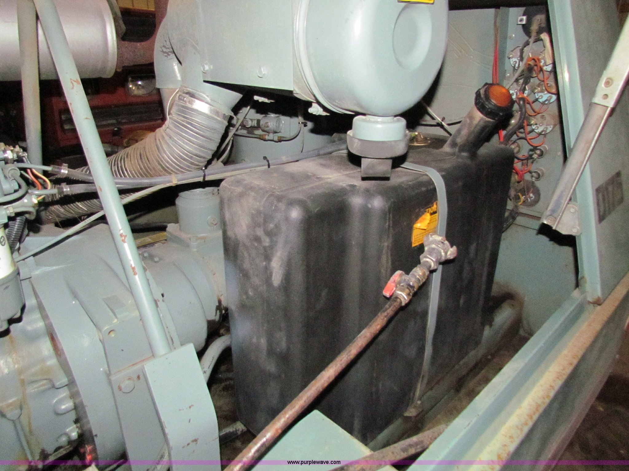 Purple Wave is selling a used Air Compressor in Kansas. This item is a Gardner Denver air compressor with the following: 1,598 hours on meter, Four cylinder diesel engine, 2,025 RPM maximum, 175 CFM capacity, 100 PSI maximum pressure, Pintle hitch, Hammer and 1" hose included, 15" tires, Recently replaced battery, Model D017SPR1A, Serial 1703522