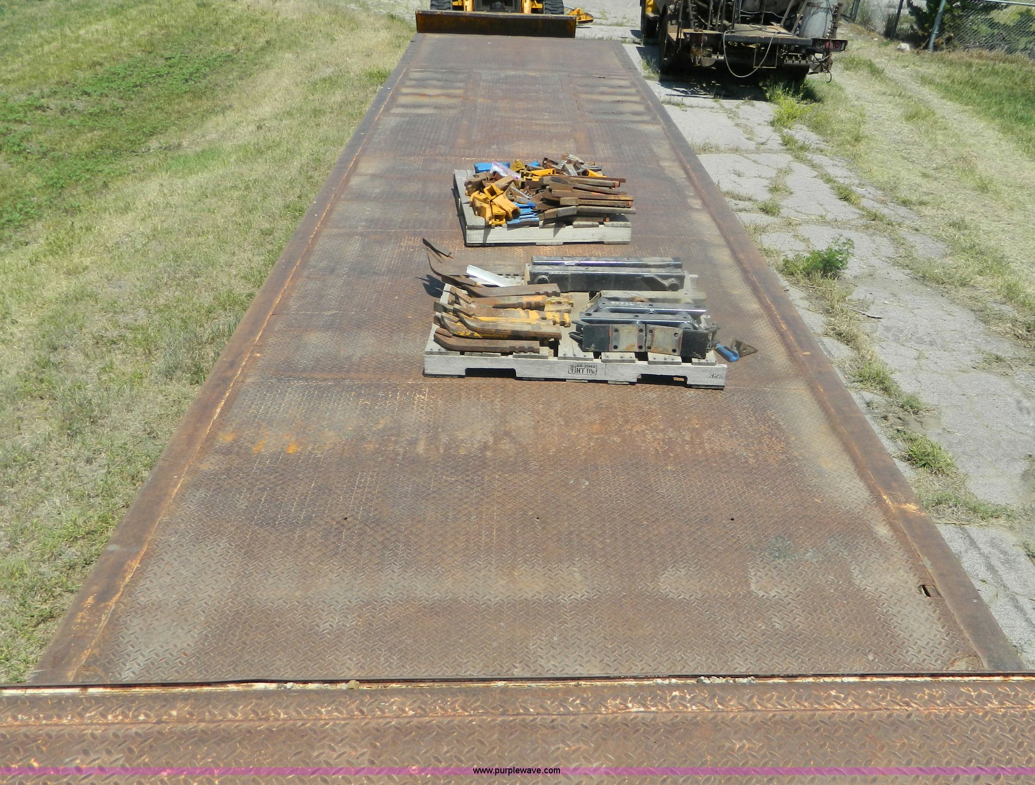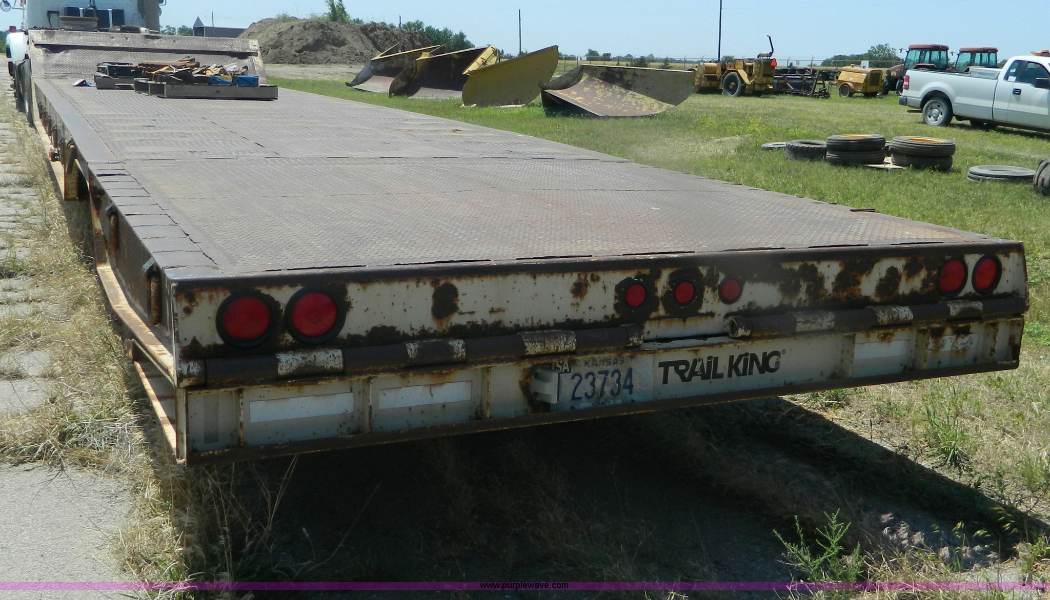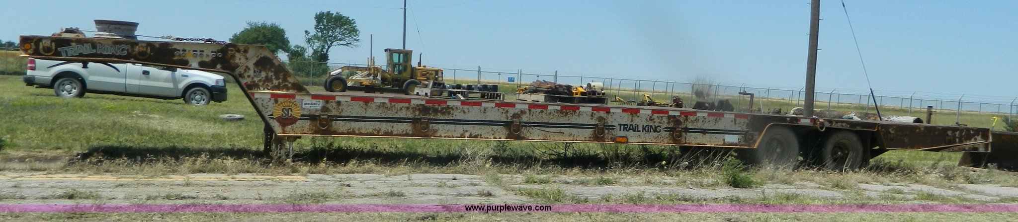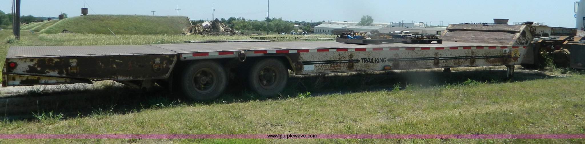 Purple Wave is selling a used Equip. Trailer in Kansas. This item is a 1991 Trail King trailer with the following: 8' top deck, 28' main deck, 93" rear deck, 43" dovetail, 102"W, Hydraulic deck winch, Steel floor, Spring suspension, 10R17.5 tires, GVWR 86,900 lbs, Model TK70HT462, Trailer only, no other items included