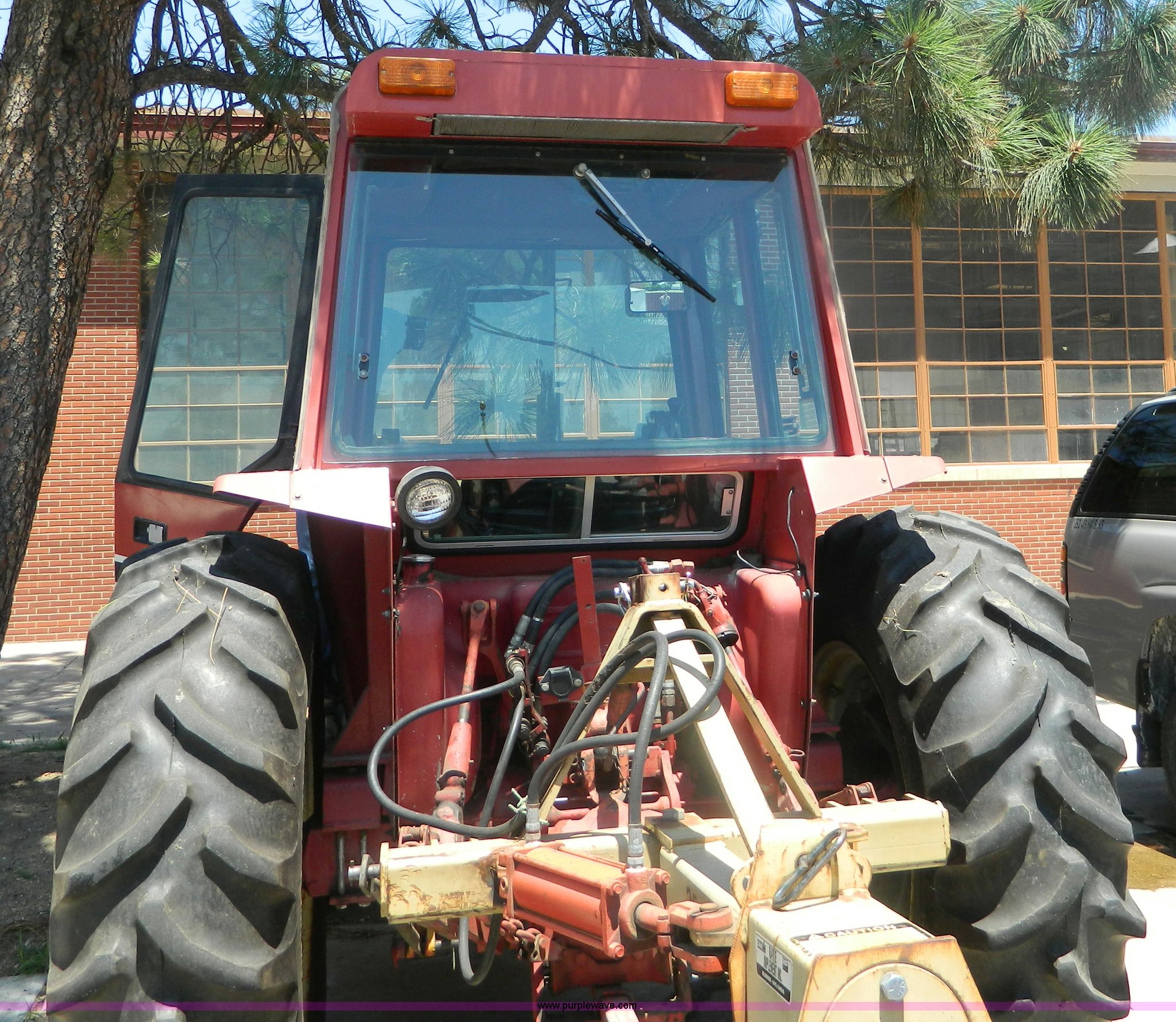 Purple Wave is selling a used Tractor in Kansas. This item is a 1982 International 684 tractor with the following: Four cylinder diesel engine, 80 HP, Manual transmission, 8F-2R gears, Heat, AM/FM, Spring seat, Three point, Draw bar, 540 PTO, (2) rear hydraulic remotes, International 2250 loader, 7'W bucket with snow push, 7' back blade included, 9.5-15 front tires, 16.9-30 rear tires, Cab door hinges have been welded, Serial 589847