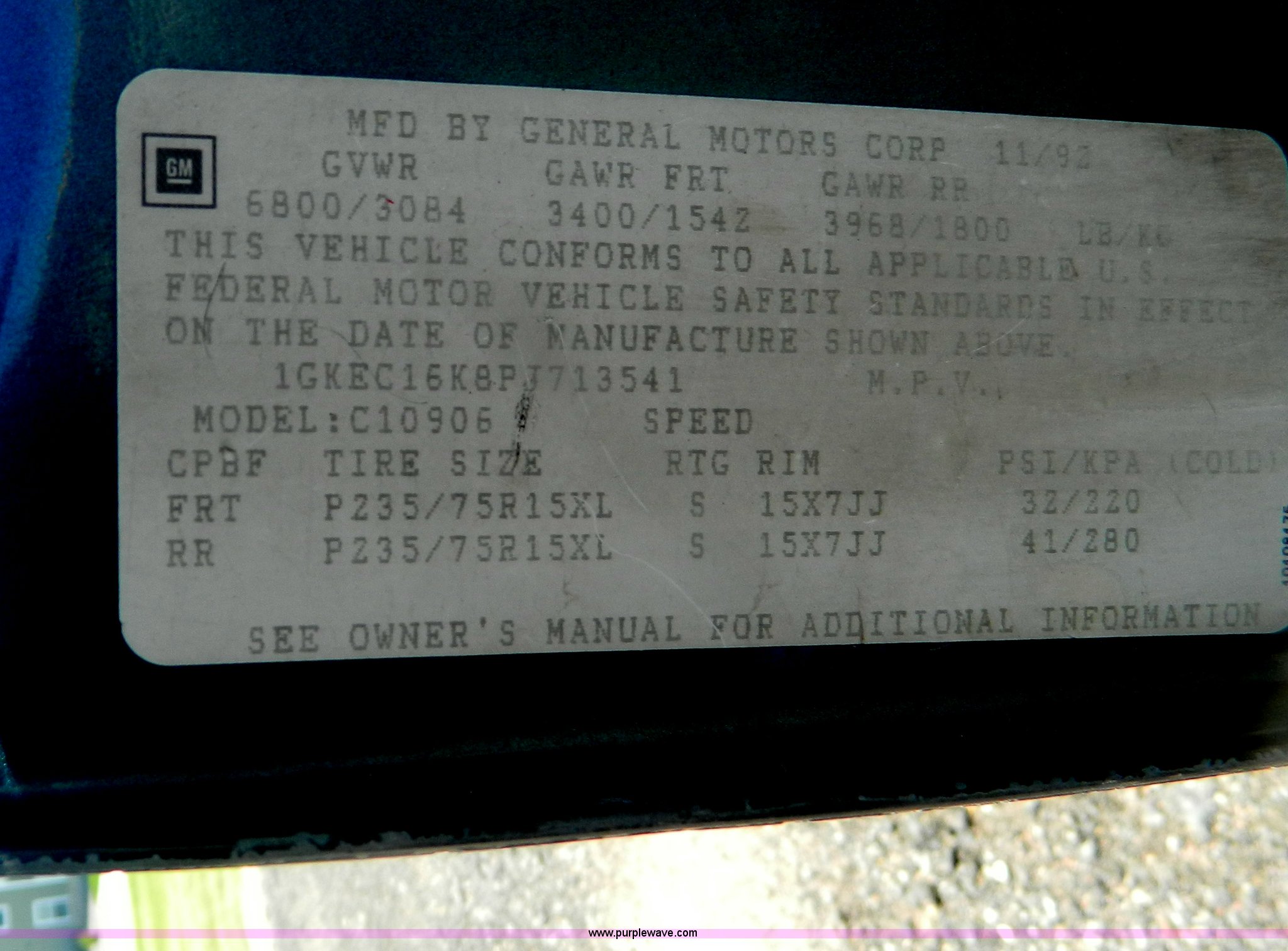 1993 GMC Suburban 1500 SUV. 319,766 miles on odometer, 5.7L V8 TBI gas engine, Automatic transmission, AC and heat, AM/FM, Manual windows and locks, Vinyl interior, P235/75R15 tires, Interior/exterior cosmetic damage, Headliner damage, Decals will be removed. 1GKEC16K8PJ713541. USD 489. 323 W 12th St. Hays, KS 67601
