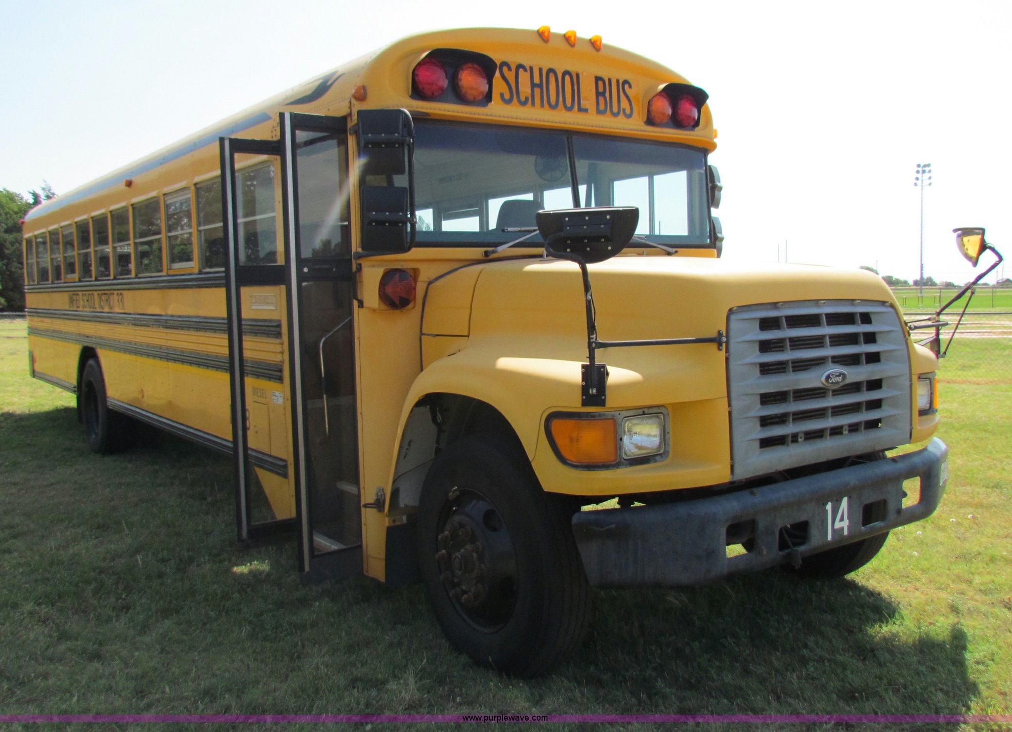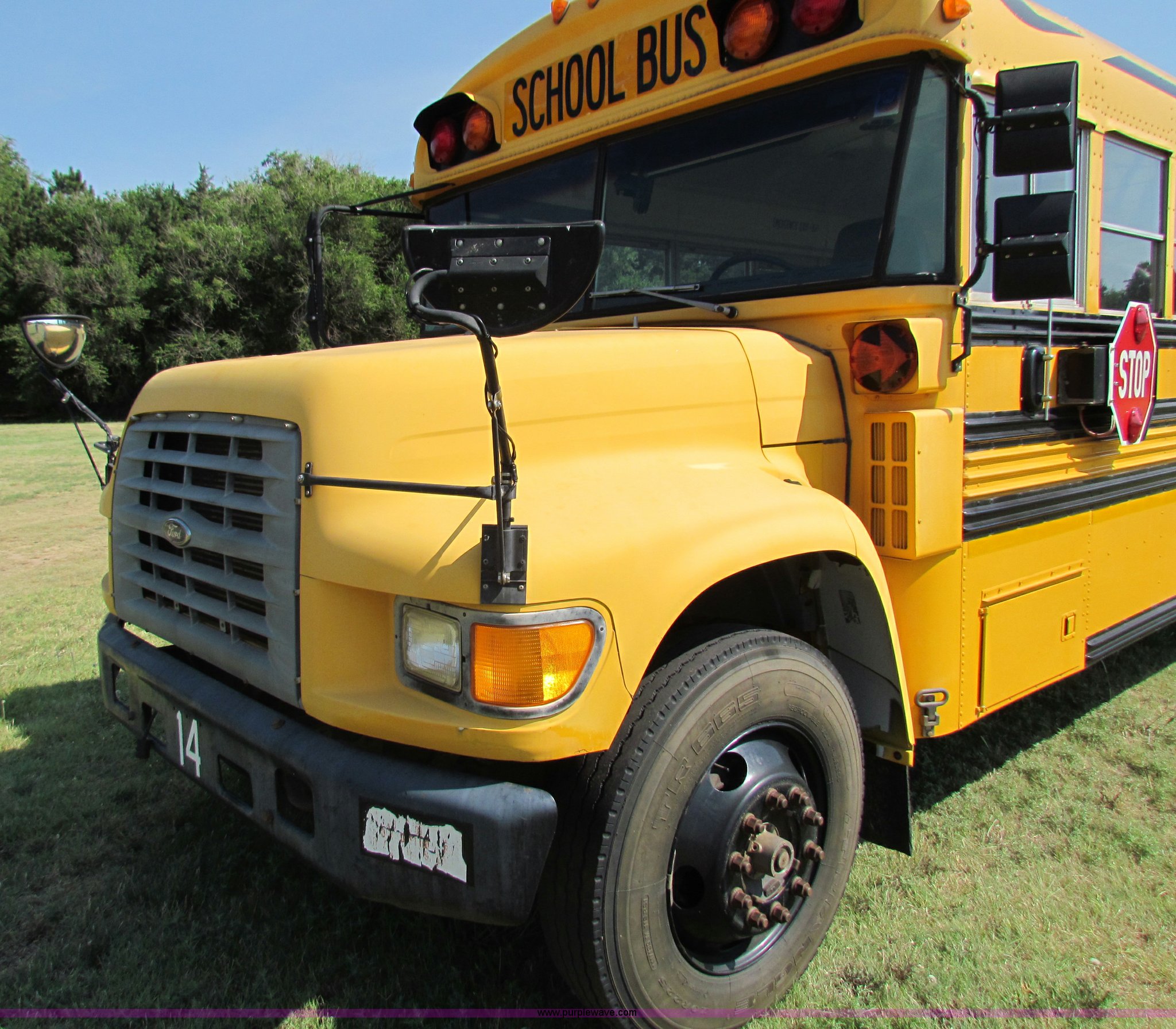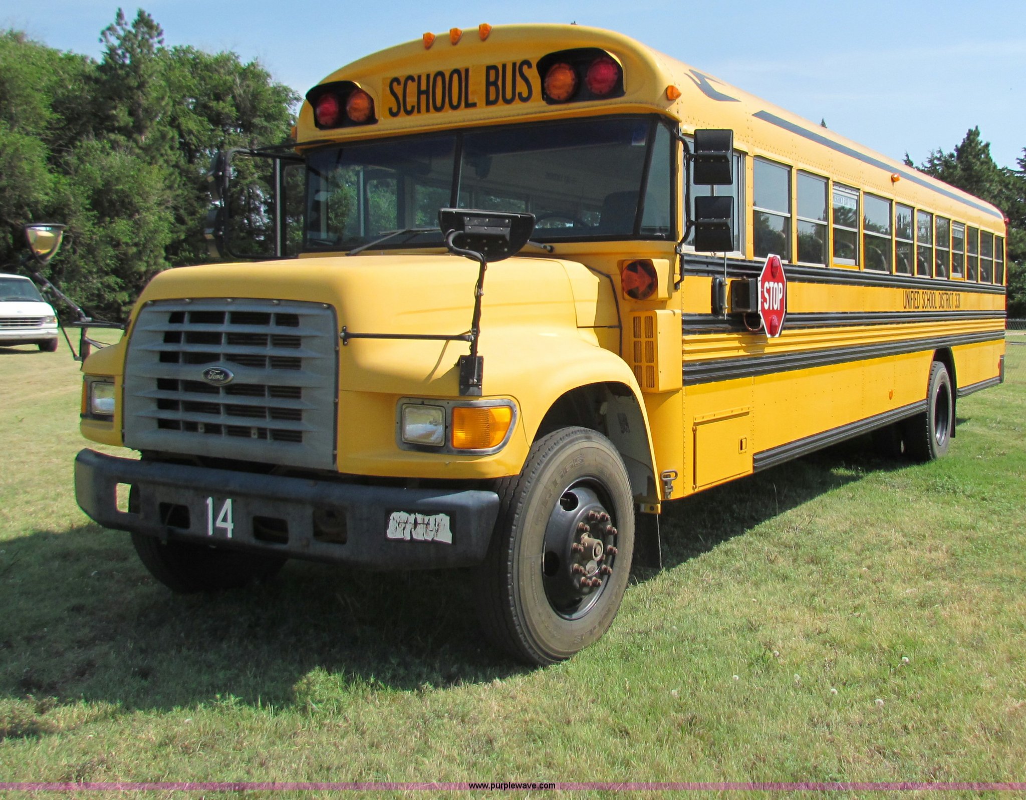 Purple Wave is selling a used Bus in Kansas. This item is a 1998 Ford B800 school bus with the following: 102,369 miles on odometer, 65 passenger, Cummins 5.9L L6 diesel engine, 190 HP, Allison automatic transmission, 10R22.5 tires, Needs battery, Power steering pump leaks, Rear wheels seals leak