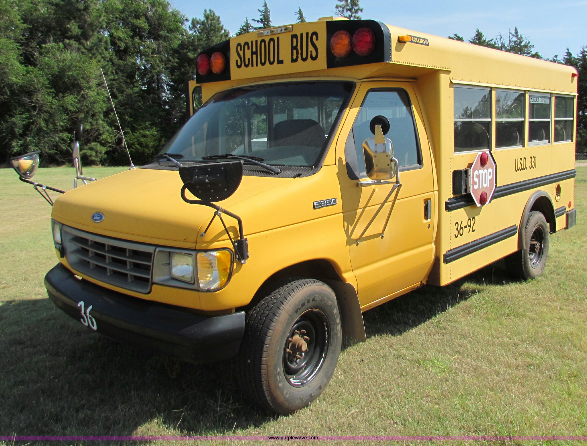 Purple Wave is selling a used Bus in Kansas. This item is a 1992 Ford E350 school bus with the following: 105,899 miles on odometer, 20 passenger, 7.3L V8 diesel engine, Automatic transmission, Collins body, 245/75R16 tires