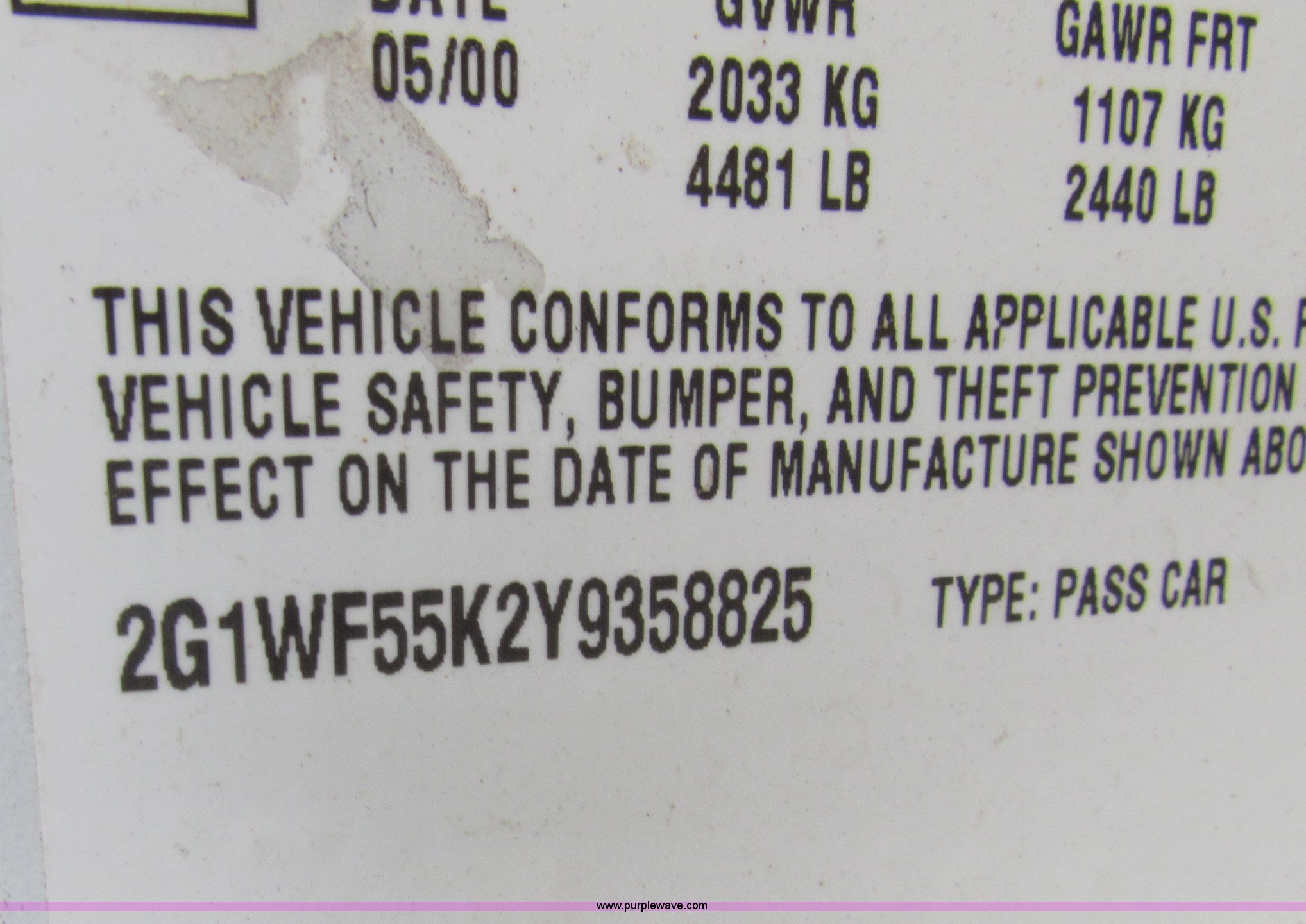 2000 Chevrolet Impala. 117,935 miles on odometer, 3.8L V6 SFI gas engine, Automatic transmission, AM/FM, Tilt, Cruise, Power windows, locks, and seats, 225/60R16 tires. 2G1WF55K2Y9358825. City of Wellington. Wellington, KS 67152
