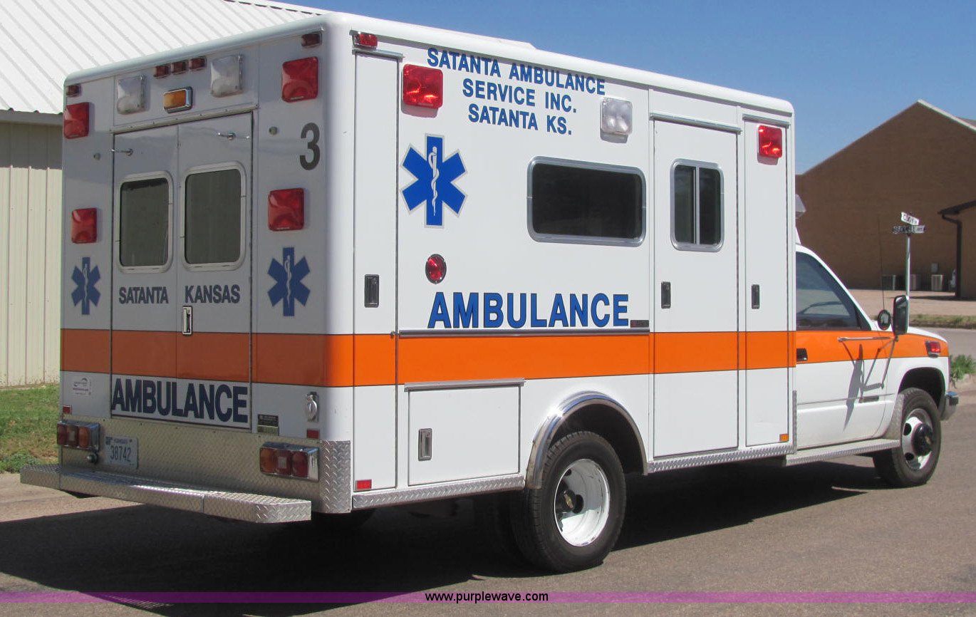 1992 Chevrolet 3500 ambulance. 39,222 miles on odometer, 7.4L V8 gas engine, Automatic transmission, AC and heat, Tilt, Cruise, AM/FM, Manual windows, Power locks, Cloth interior, S.U.P. SA400 radio system, Federal signal BP100 siren system, Code 3 emergency lights, Spot light, Tow hooks, Horton Emergency utility bed Vinyl padded interior, 120V interior/exterior outlets, Oxygen hookups, Interior/exterior storage, Child's seat, Stretcher, 225/75R16 tires. 1GBJC34N4NE113337. Haskell County Ambulance Service. 103 N Cook. Sublette, KS 67877