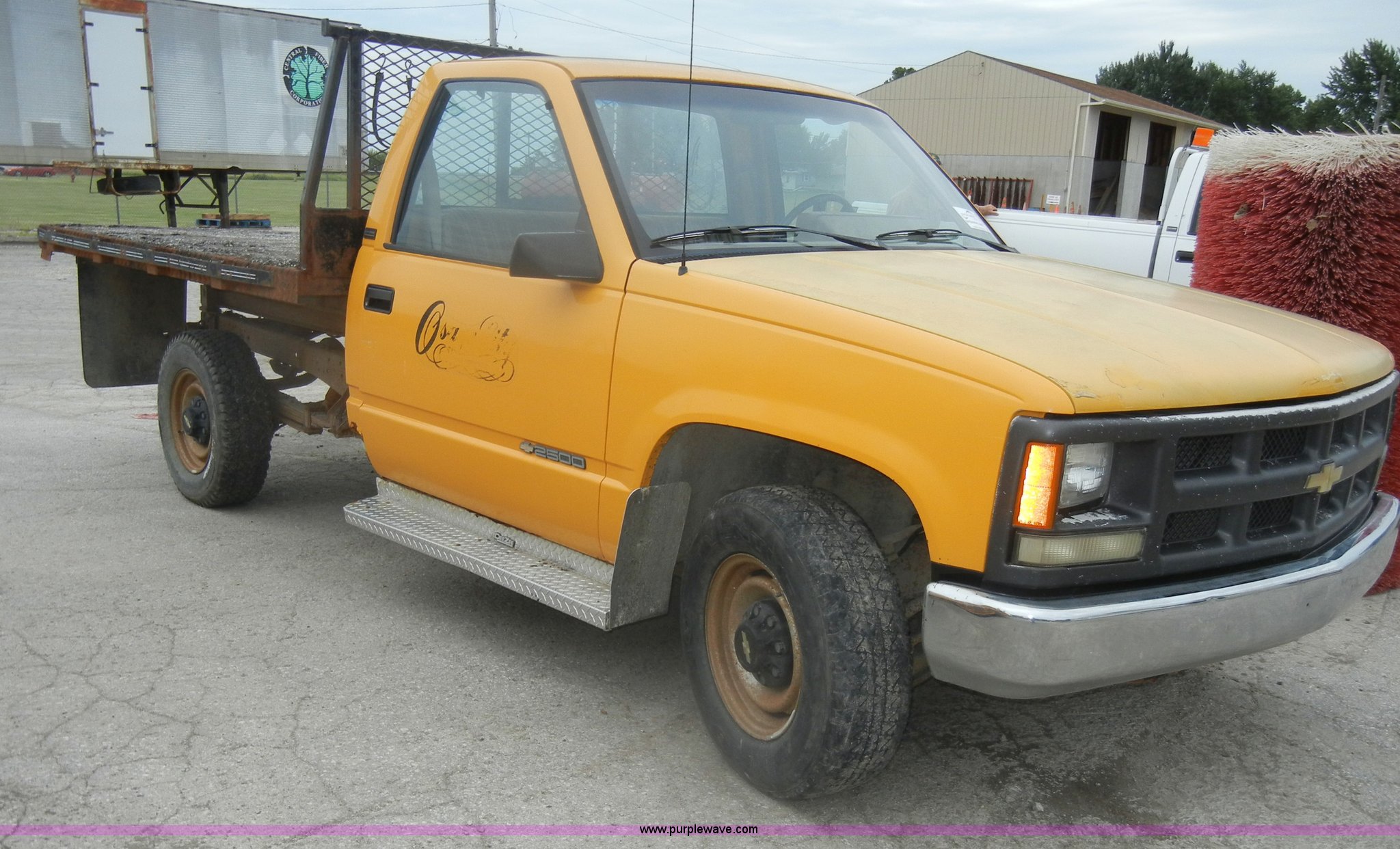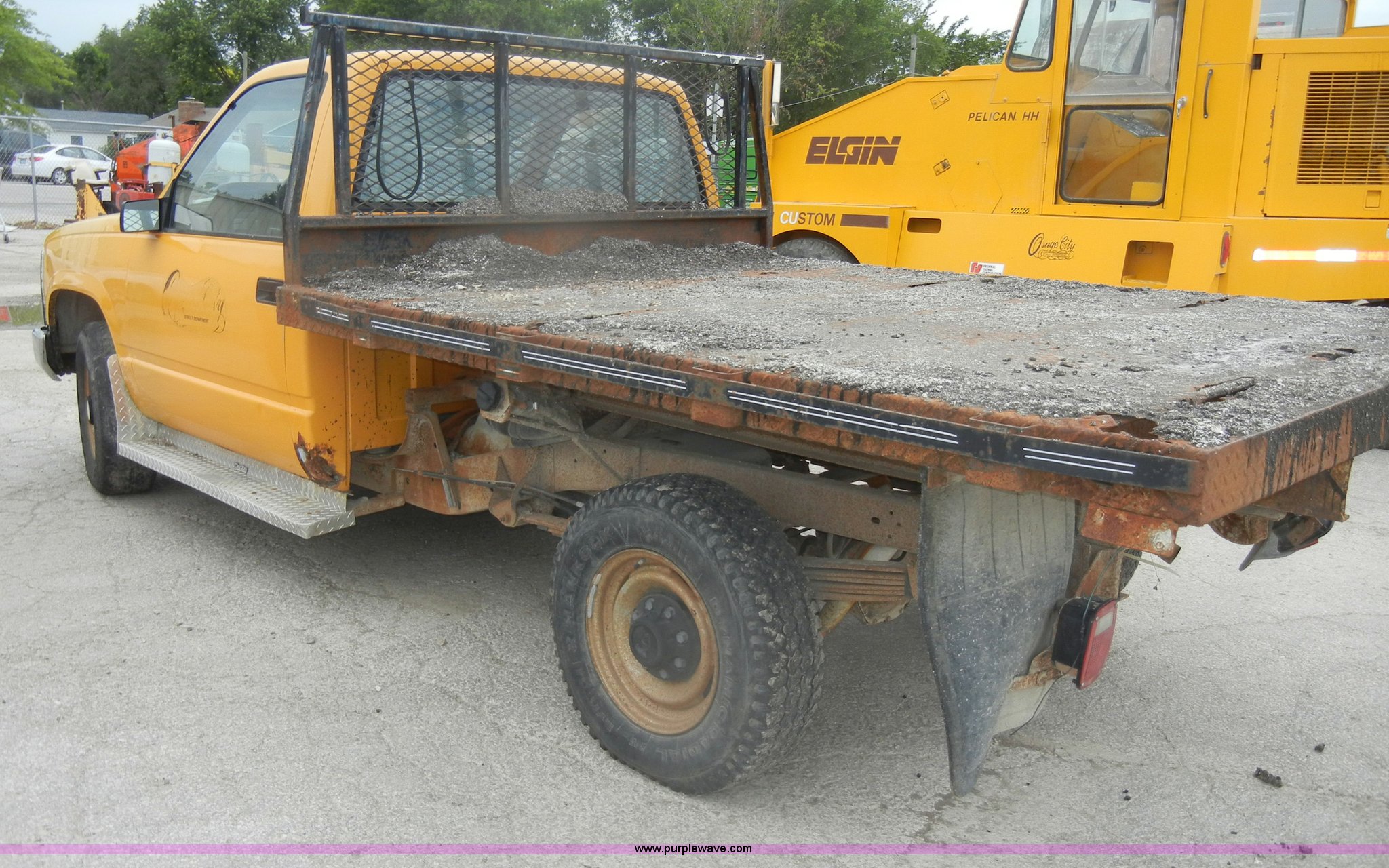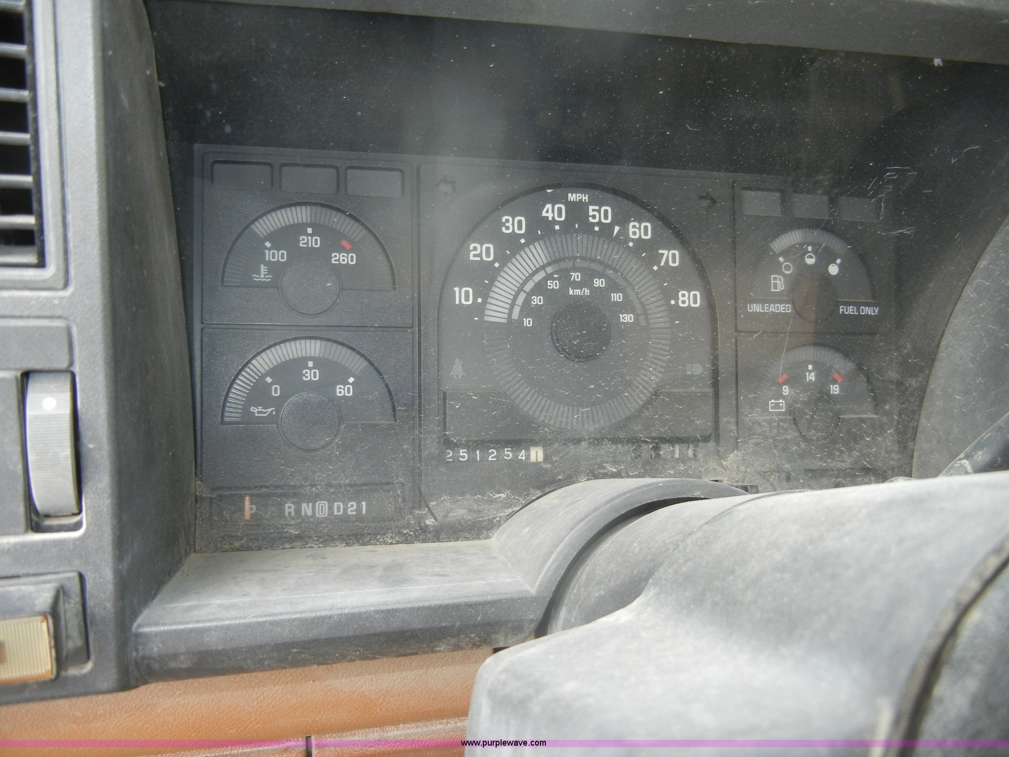 Purple Wave is selling a used Passenger Vehicle in Kansas. This item is a 1990 Chevrolet 2500 Cheyenne pickup truck with the following: 251,254 miles on odometer, Approx. 25,000 miles on engine, 5.7L V8 gas engine, Replacement engine, Automatic transmission, Recently replaced transmission, Heat, AM/FM, Manual windows and locks, Vinyl bench seat, Side steps, 10.5'L x 86"W flatbed, Hoist unit, Electric/hydraulic,, 245/75R16 tires, Worn, Interior/exterior cosmetic damage, Paint peeling, Body and bed rust, Dents and scratches, Headliner needs repair, Dead battery, Weak brakes