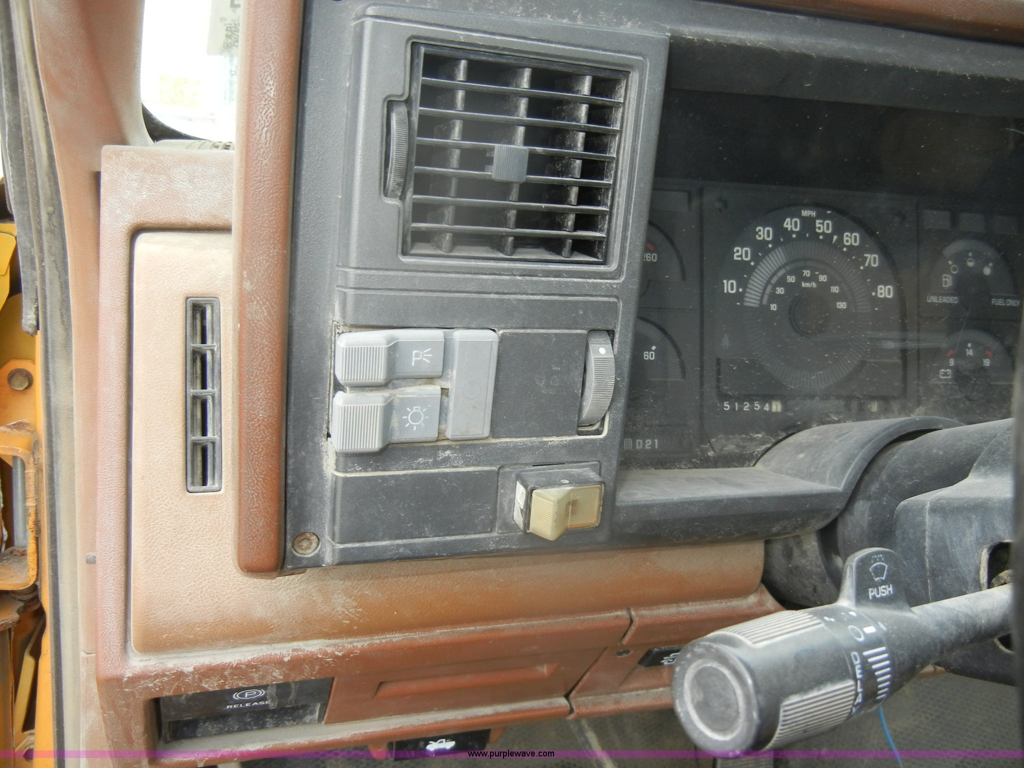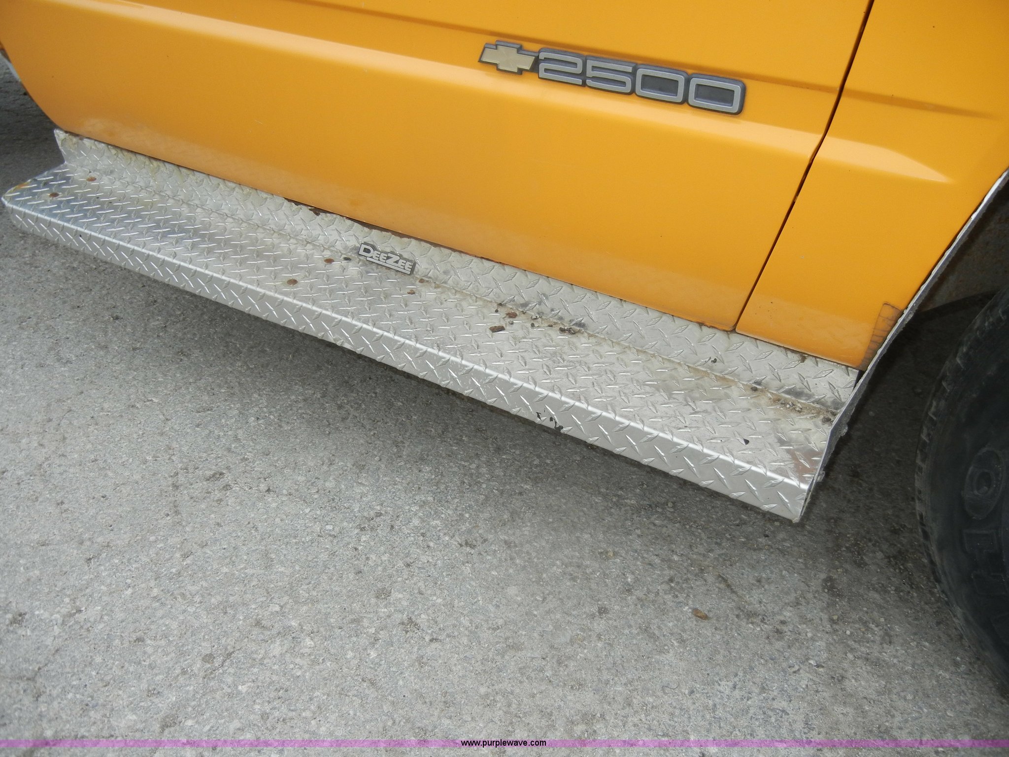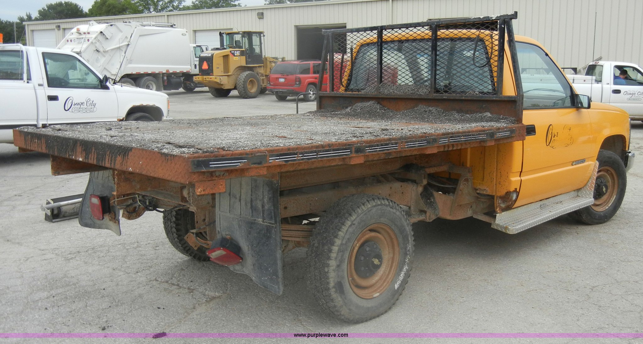 Purple Wave is selling a used Passenger Vehicle in Kansas. This item is a 1990 Chevrolet 2500 Cheyenne pickup truck with the following: 251,254 miles on odometer, Approx. 25,000 miles on engine, 5.7L V8 gas engine, Replacement engine, Automatic transmission, Recently replaced transmission, Heat, AM/FM, Manual windows and locks, Vinyl bench seat, Side steps, 10.5'L x 86"W flatbed, Hoist unit, Electric/hydraulic,, 245/75R16 tires, Worn, Interior/exterior cosmetic damage, Paint peeling, Body and bed rust, Dents and scratches, Headliner needs repair, Dead battery, Weak brakes