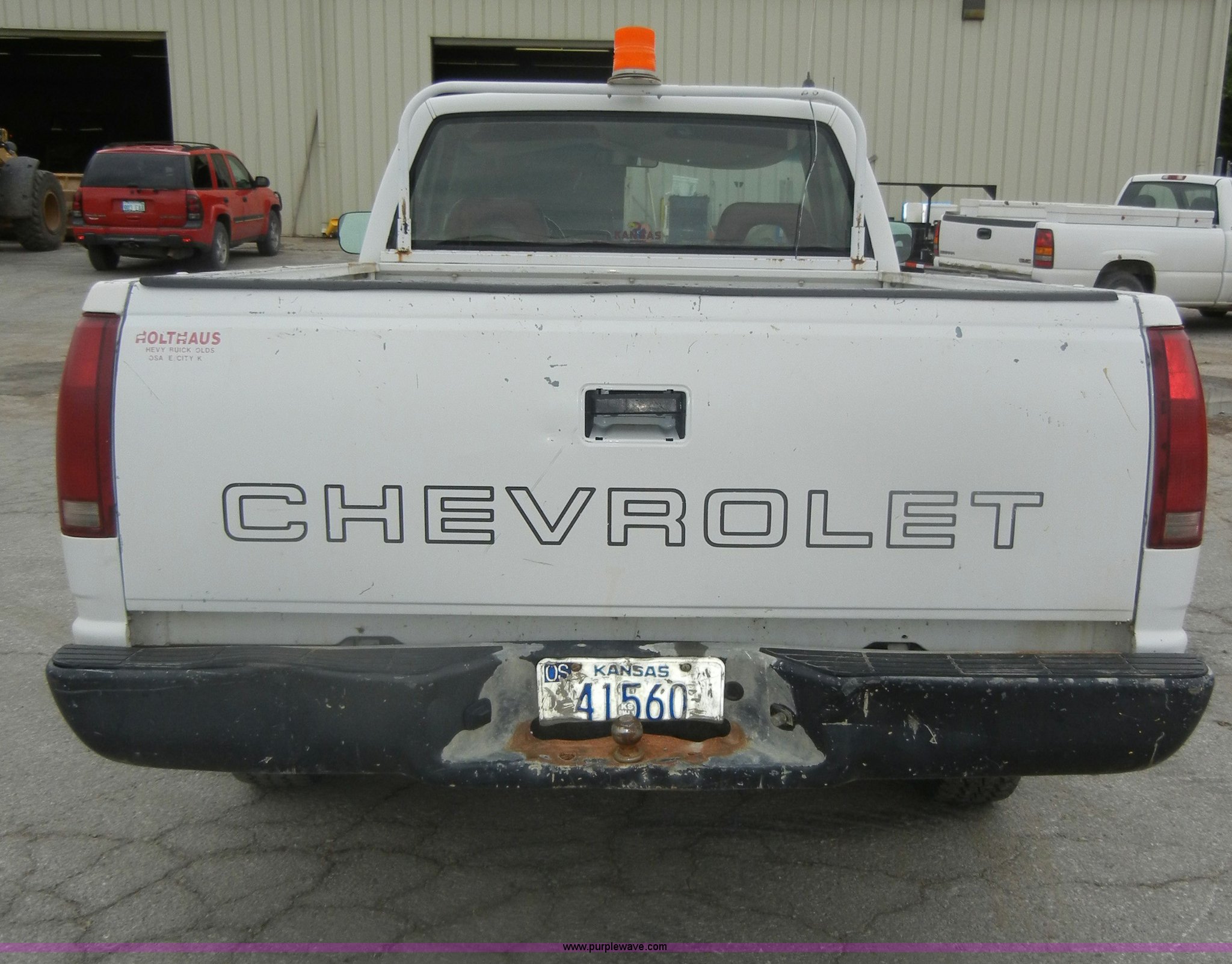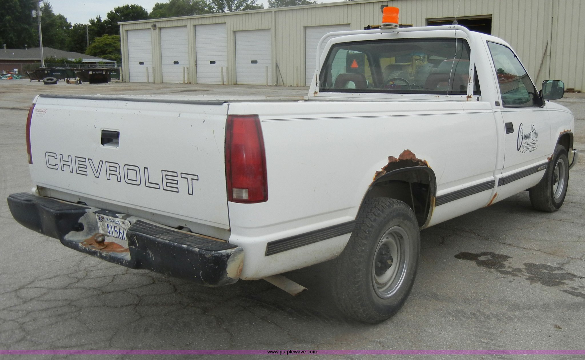 Purple Wave is selling a used Passenger Vehicle in Kansas. This item is a 1993 Chevrolet 1500 Cheyenne pickup truck with the following: 135,932 miles on odometer, 4.3L V6 TBI gas engine, Automatic transmission, AC and heat, Tilt, Cruise, AM/FM, Manual windows and locks, Cloth interior, Bench seats, Ball hitch, 235/75R15 tires, Worn, Interior/exterior cosmetic damage, Body rust, Headliner needs repair, Dents and scratches, CB unit not included