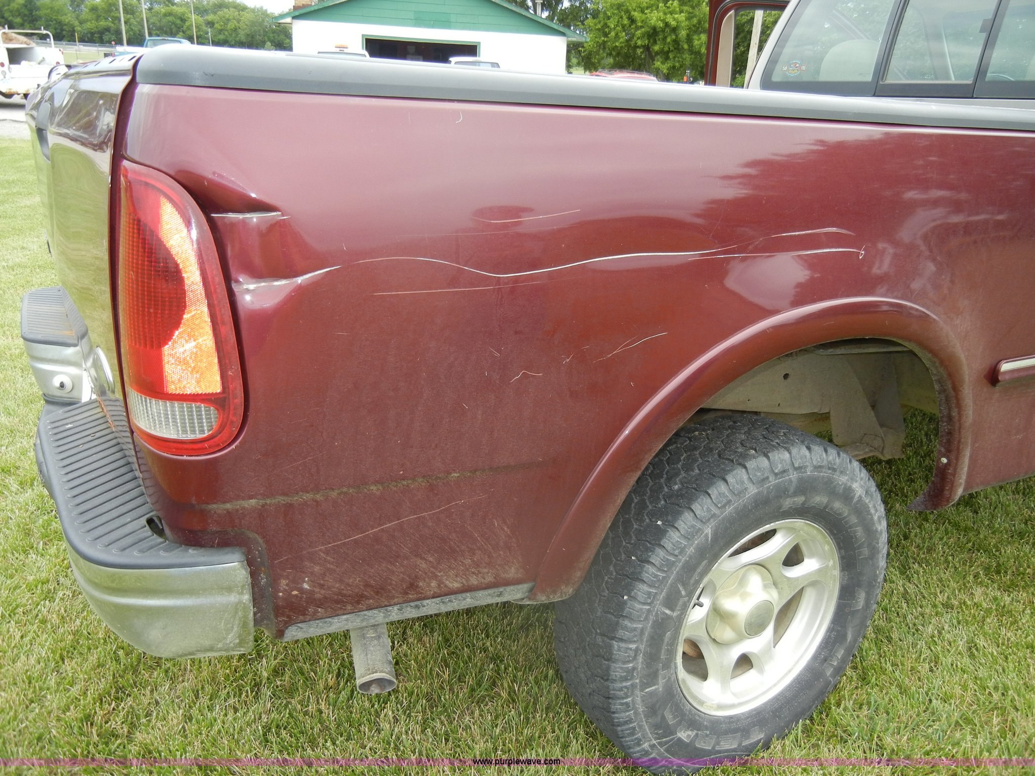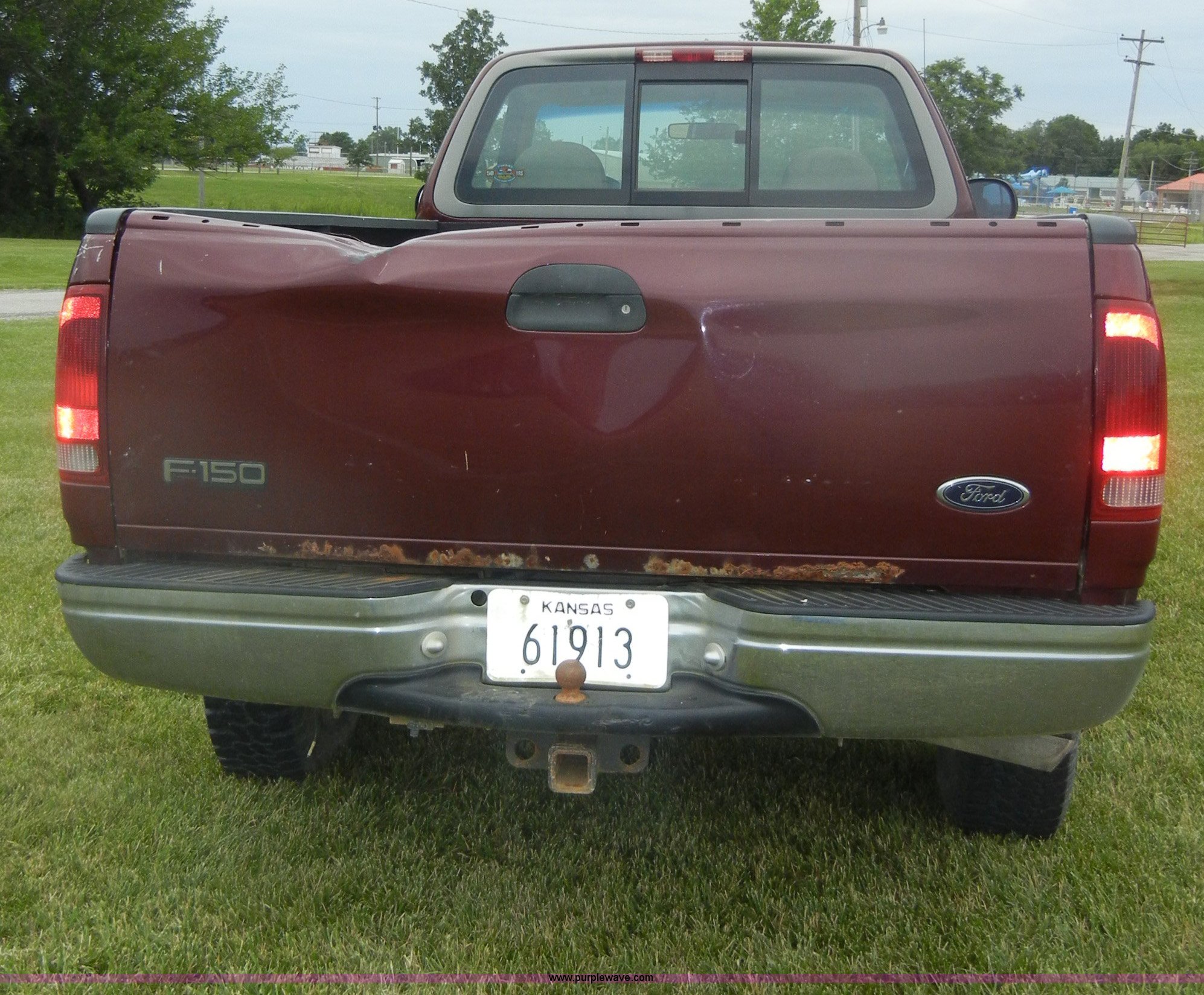 Purple Wave is selling a used Passenger Vehicle in Kansas. This item is a 1998 Ford F150 XLT pickup truck with the following: 148,996 miles on odometer, Triton 5.4L V8 EFI gas engine, Has a slight miss, Automatic transmission, AC and heat, Tilt, Cruise, AM/FM, Power windows, locks, and mirrors, Cloth interior, Rear sliding window, Bedliner, Front tow hooks, Receiver hitch, Trailer wiring, Ball hitch, 245/75R16 tires, Exterior cosmetic damage, Dents and scratches, Body rust