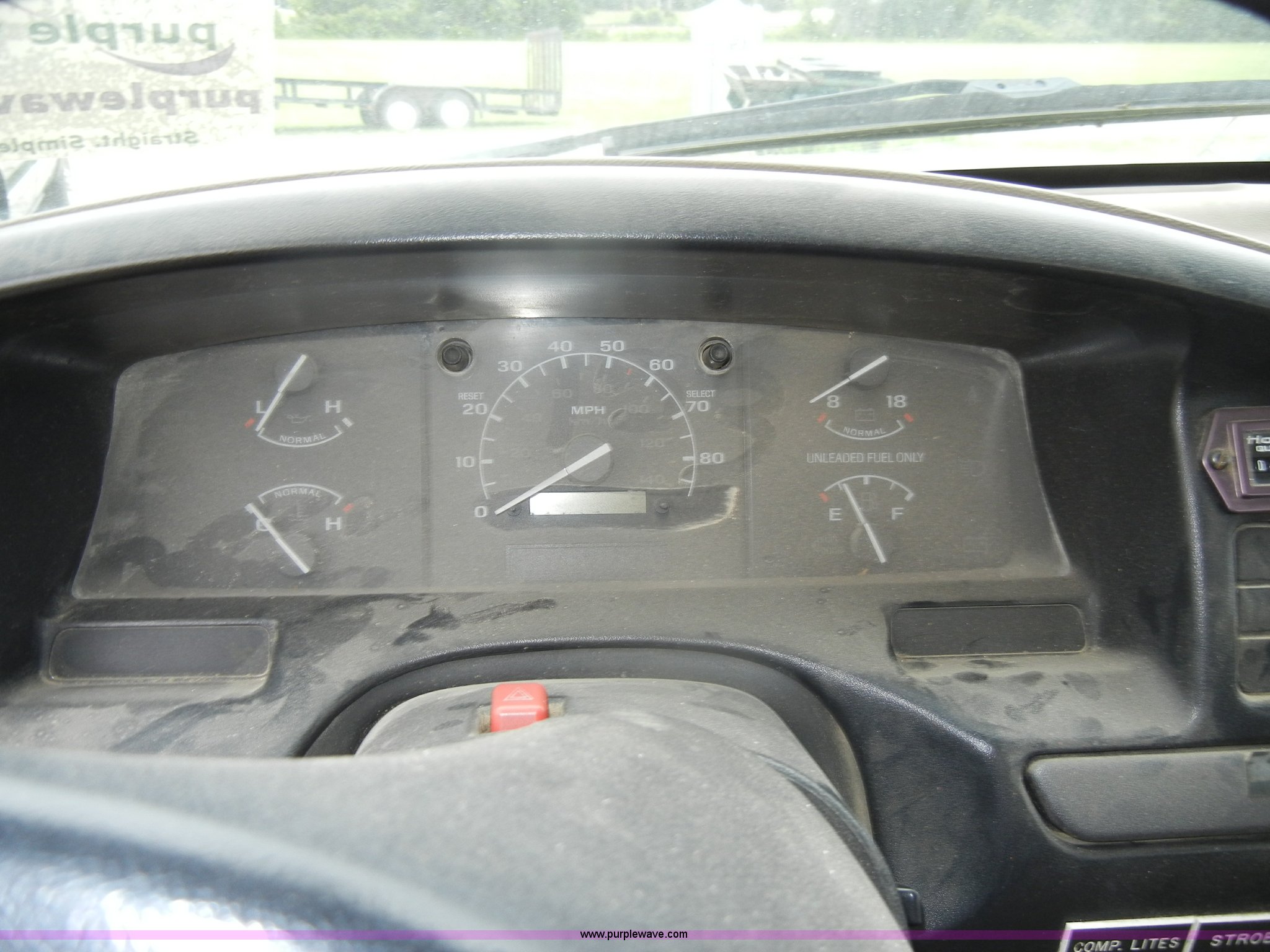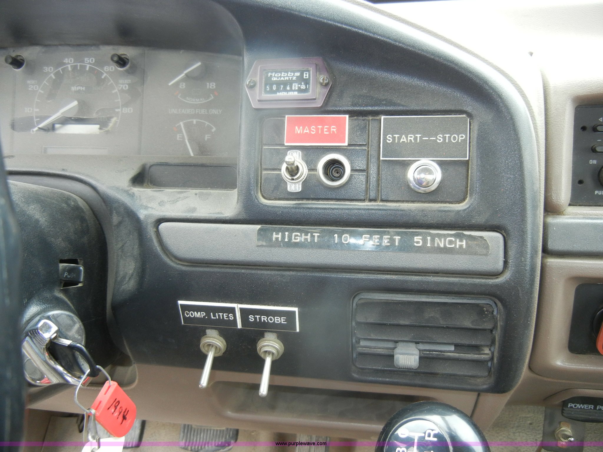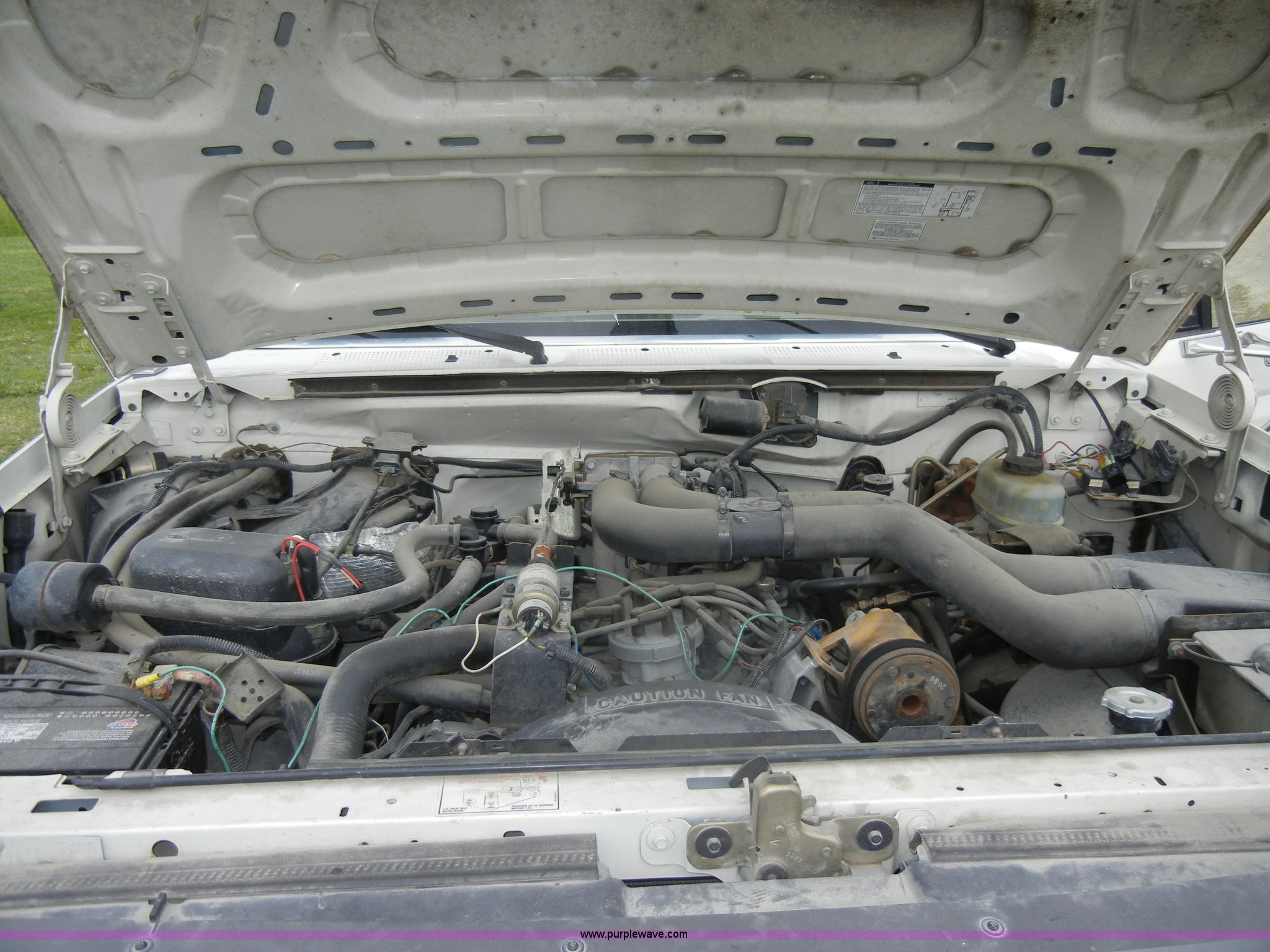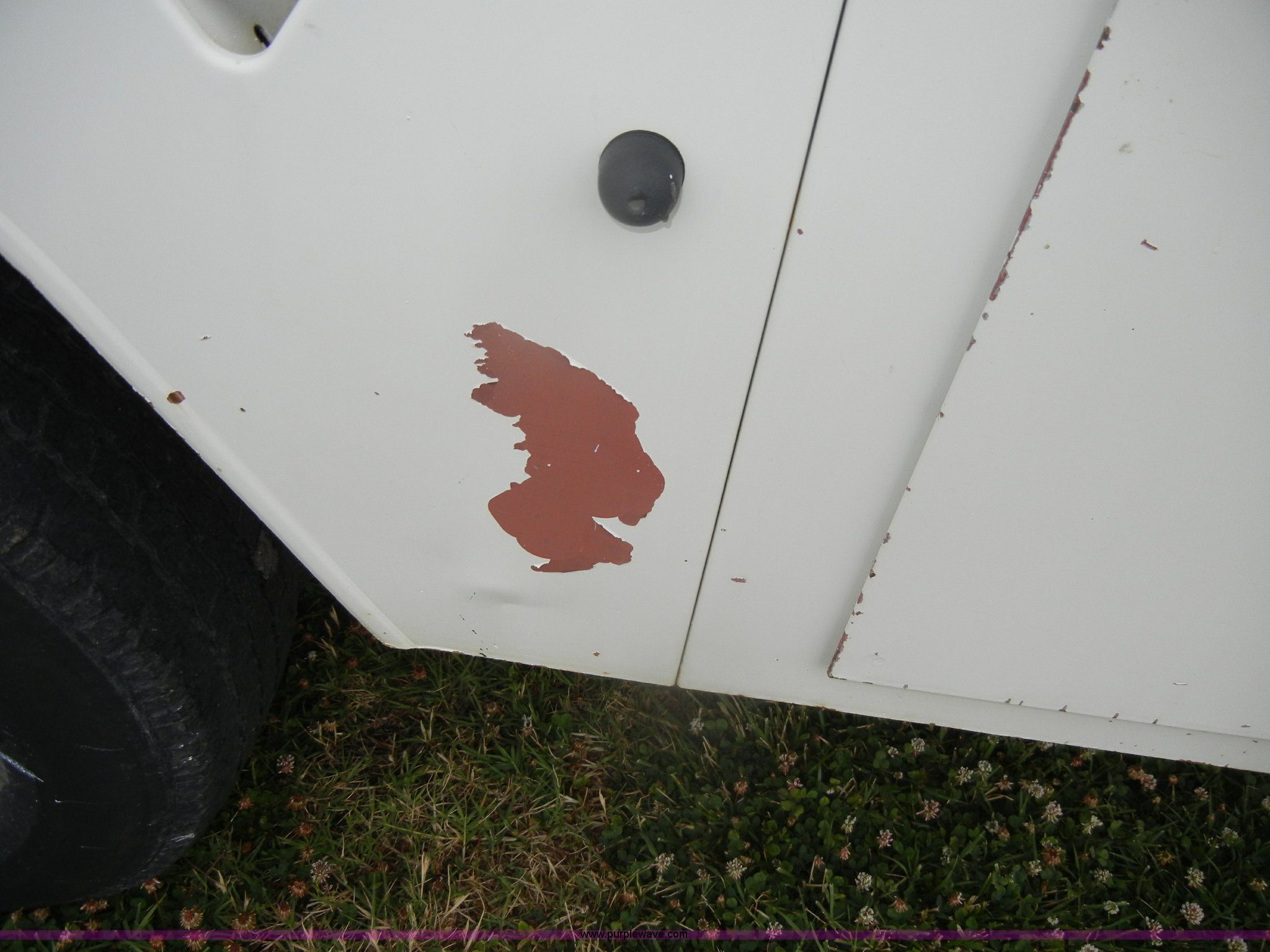Purple Wave is selling a used Bucket Truck in Kansas. This item is a 1994 Ford F450 Super Duty crane truck with the following: 33,141 miles on odometer, 7.5L V8 EFI gas engine, Five speed manual transmission, AC and heat, AM/FM, Manual windows and locks, Rear sliding window, Vinyl interior, Side steps, Knapheide utility bed, Model 6108-50DB, Serial 731241-688625, 1994 Versalift crane, 5,074 hours on meter, Model V032PI, Serial K9473, 300 lb platform capacity, 32' platform height, Insulated boom, Dual fuel tanks, Pintle hitch, Trailer wiring, 235/85R16 tires, Rear duals, Interior/exterior cosmetic damage, Paint peeling, Dents and scratches