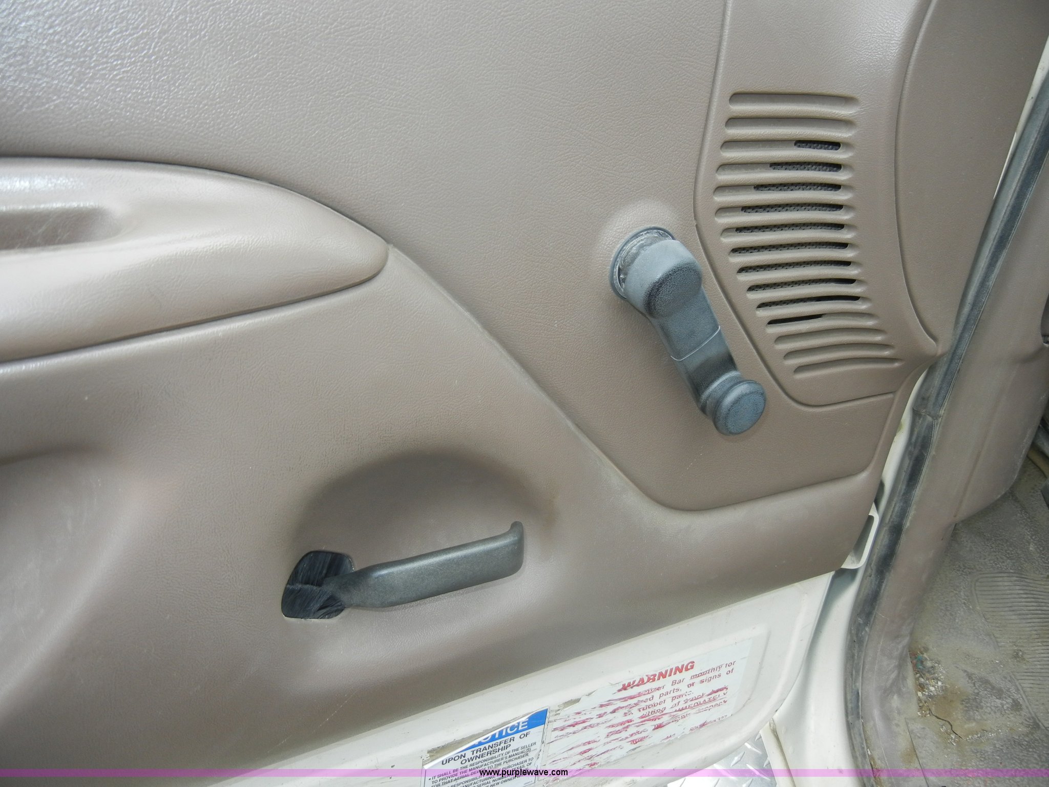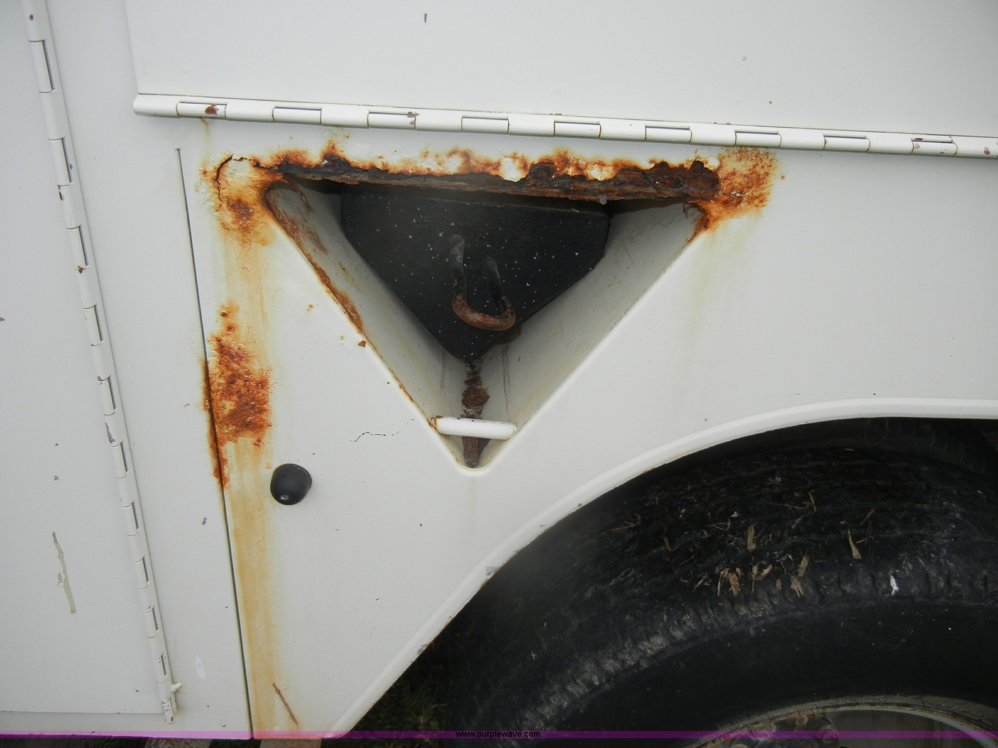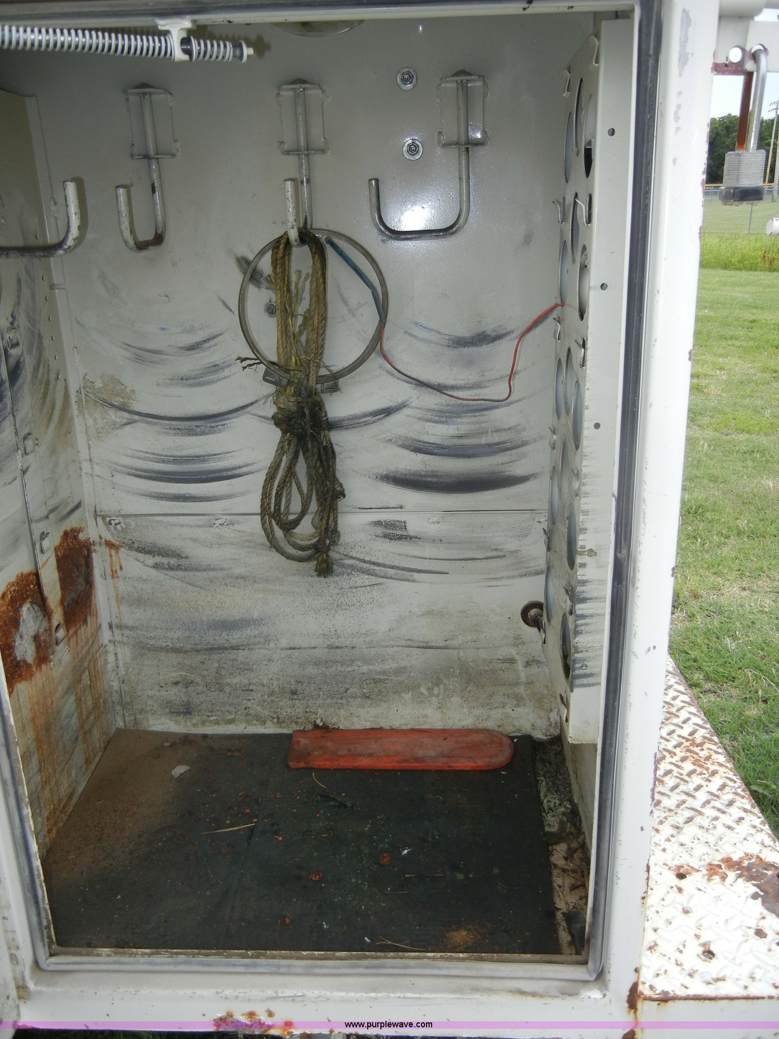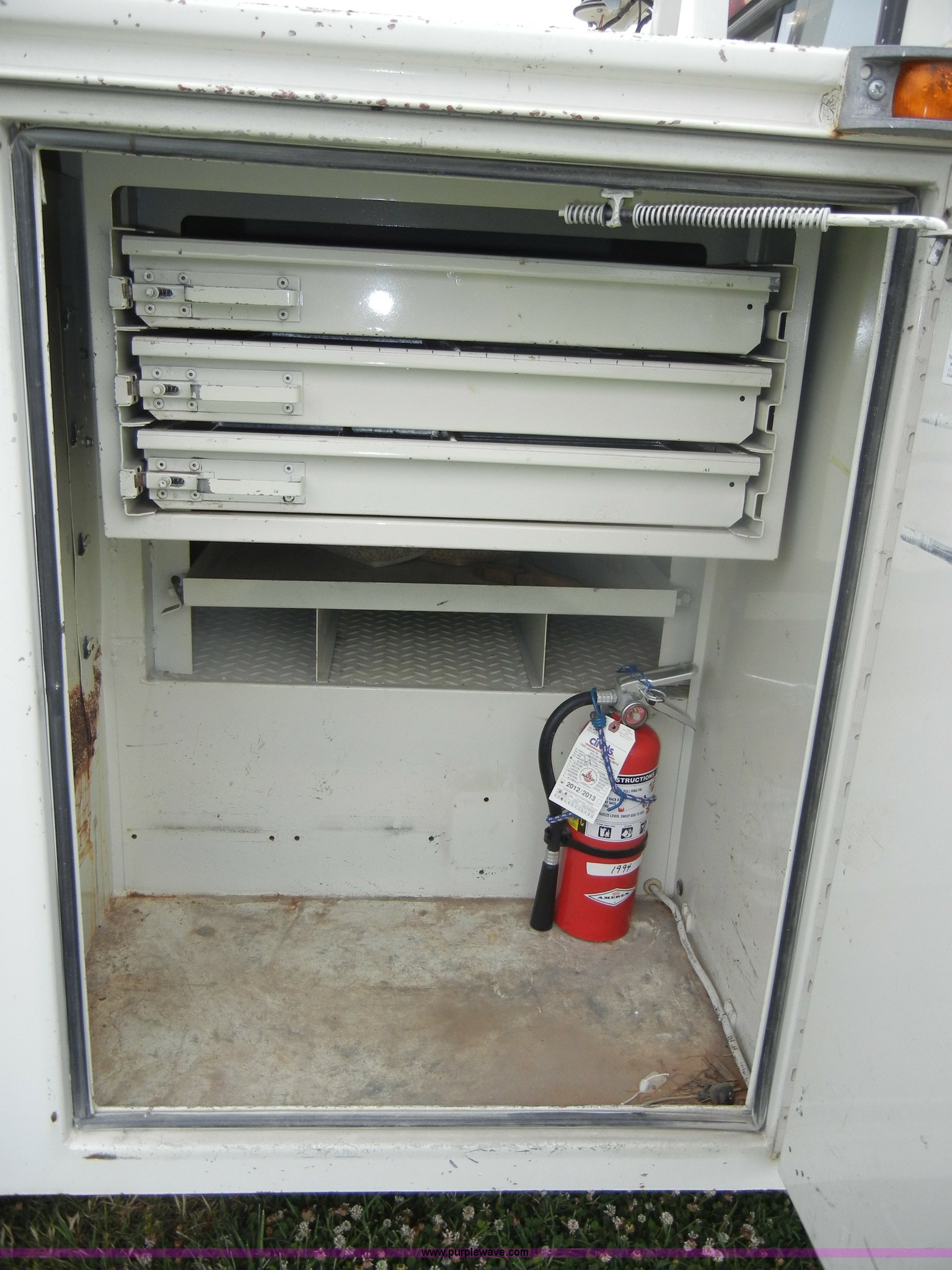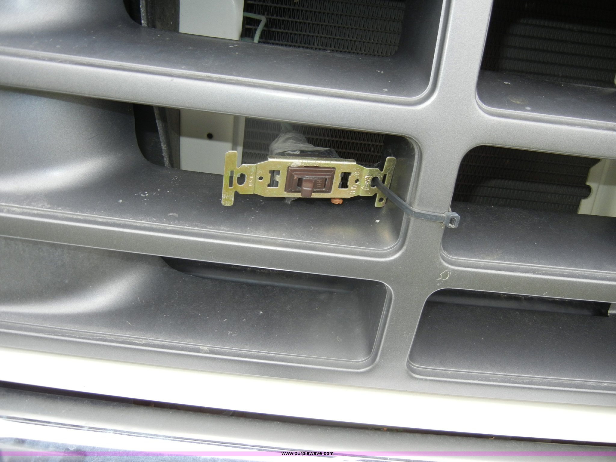 Purple Wave is selling a used Bucket Truck in Kansas. This item is a 1994 Ford F450 Super Duty crane truck with the following: 33,141 miles on odometer, 7.5L V8 EFI gas engine, Five speed manual transmission, AC and heat, AM/FM, Manual windows and locks, Rear sliding window, Vinyl interior, Side steps, Knapheide utility bed, Model 6108-50DB, Serial 731241-688625, 1994 Versalift crane, 5,074 hours on meter, Model V032PI, Serial K9473, 300 lb platform capacity, 32' platform height, Insulated boom, Dual fuel tanks, Pintle hitch, Trailer wiring, 235/85R16 tires, Rear duals, Interior/exterior cosmetic damage, Paint peeling, Dents and scratches