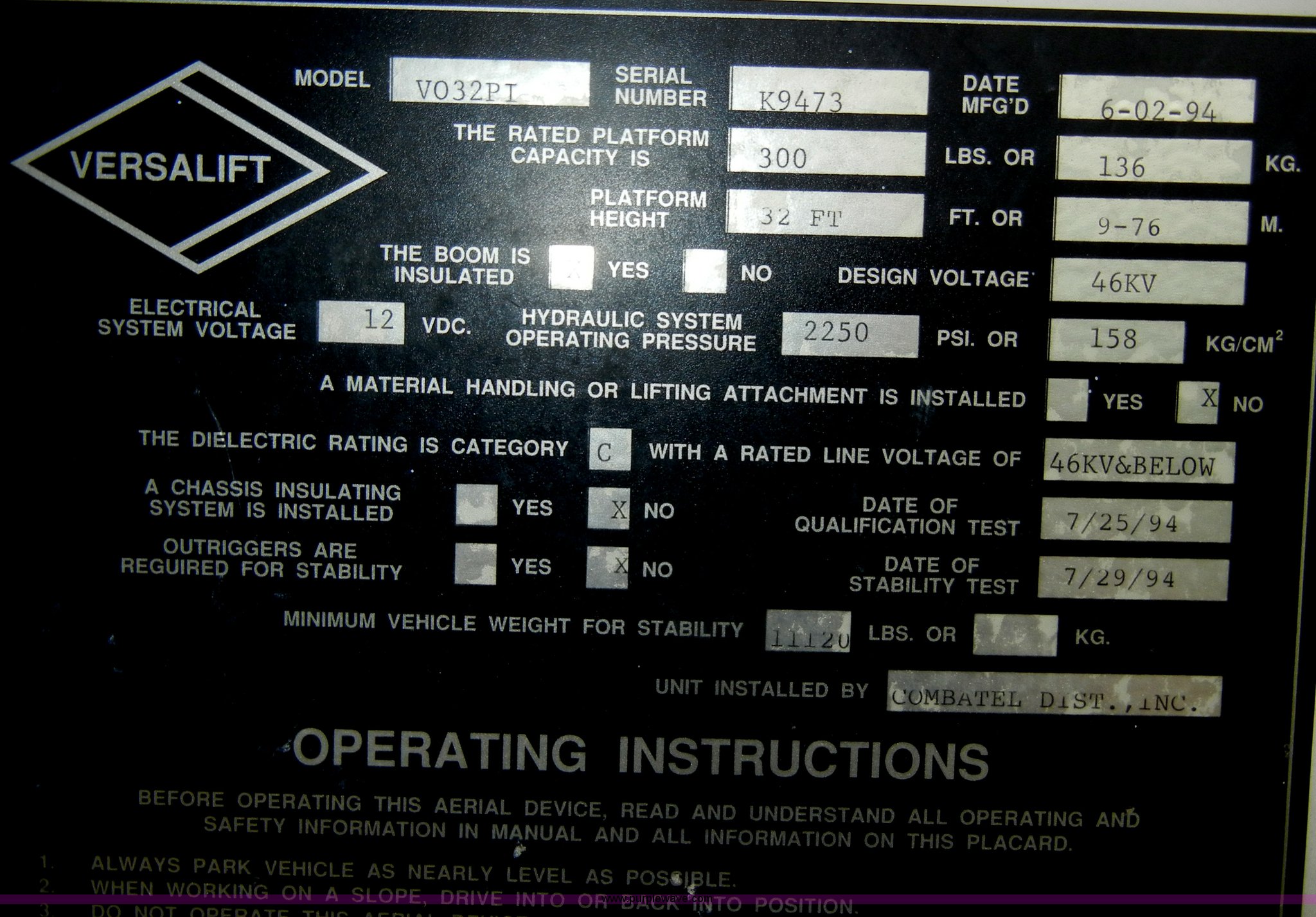 - 1994 Versalift crane