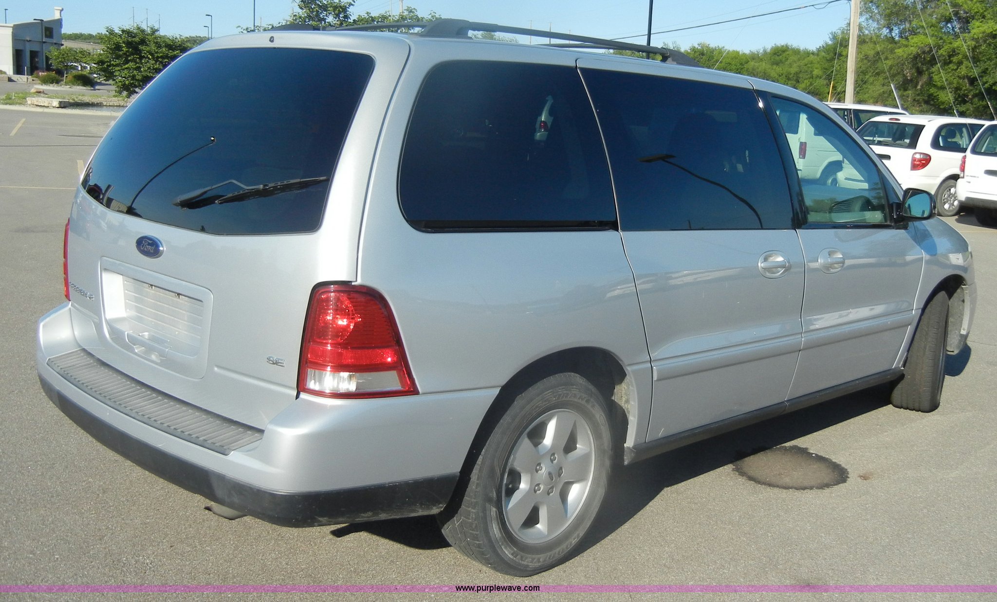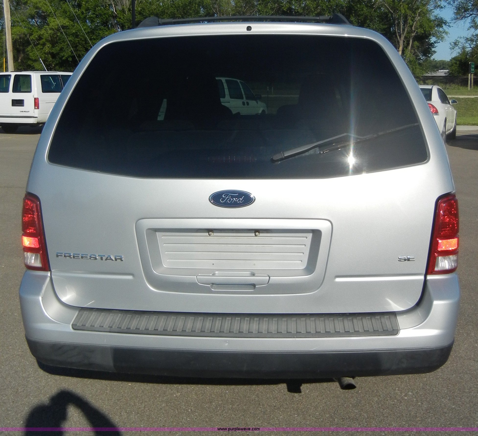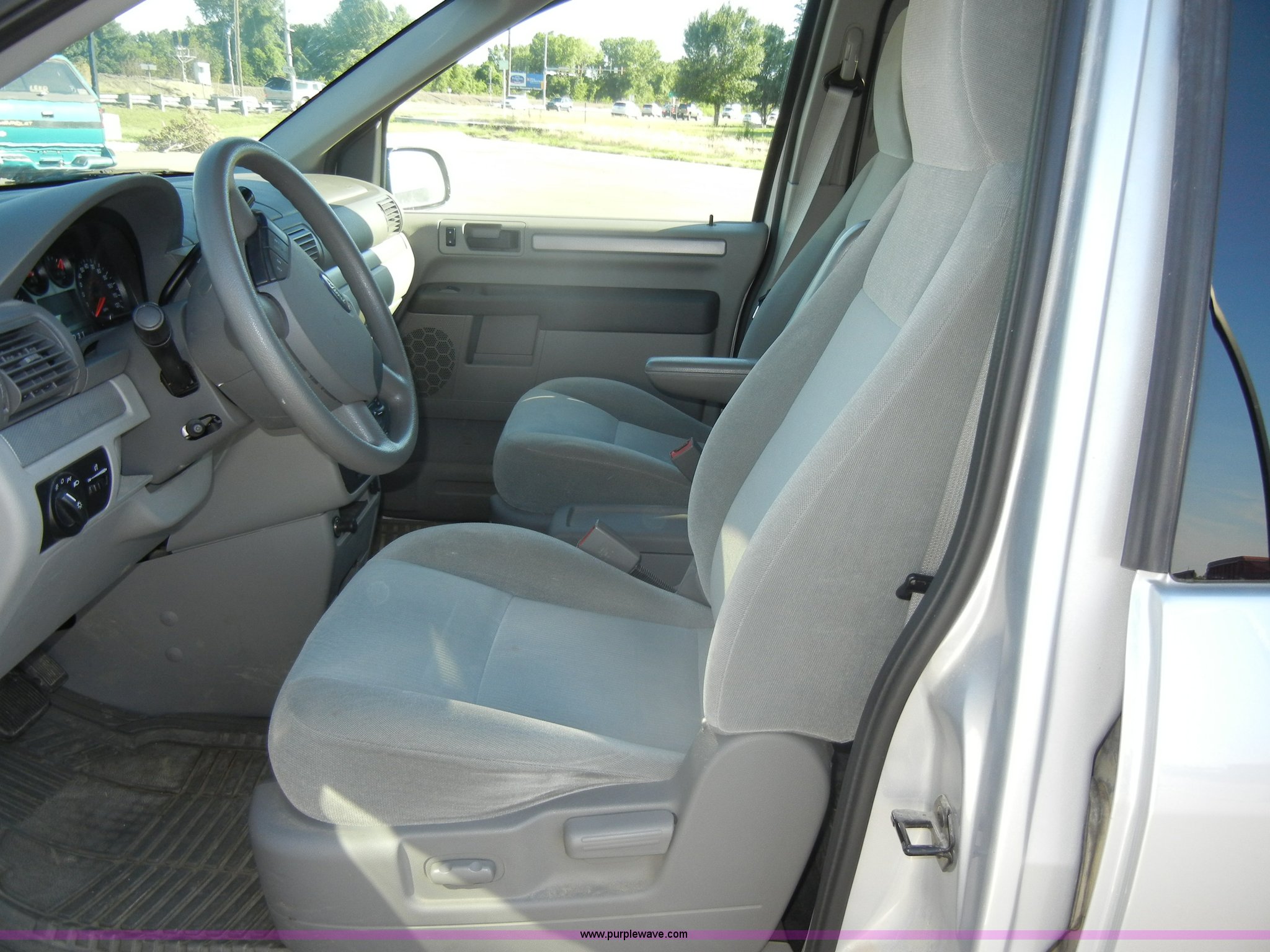 Purple Wave is selling a used Passenger Vehicle in Kansas. This item is a 2007 Ford Freestar SE mini van with the following: 98,003 miles on odometer, 3.9L V6 SPI gas engine, Automatic transmission, AC and heat, Tilt, Cruise, AM/FM/CD, Power windows, locks, mirrors, and seats, Cloth interior, Compass and temp display, 235/60R16 tires, Exterior cosmetic damage, Dents and scratches