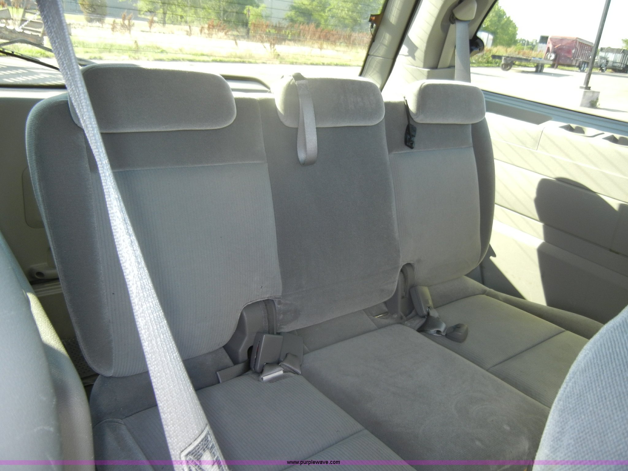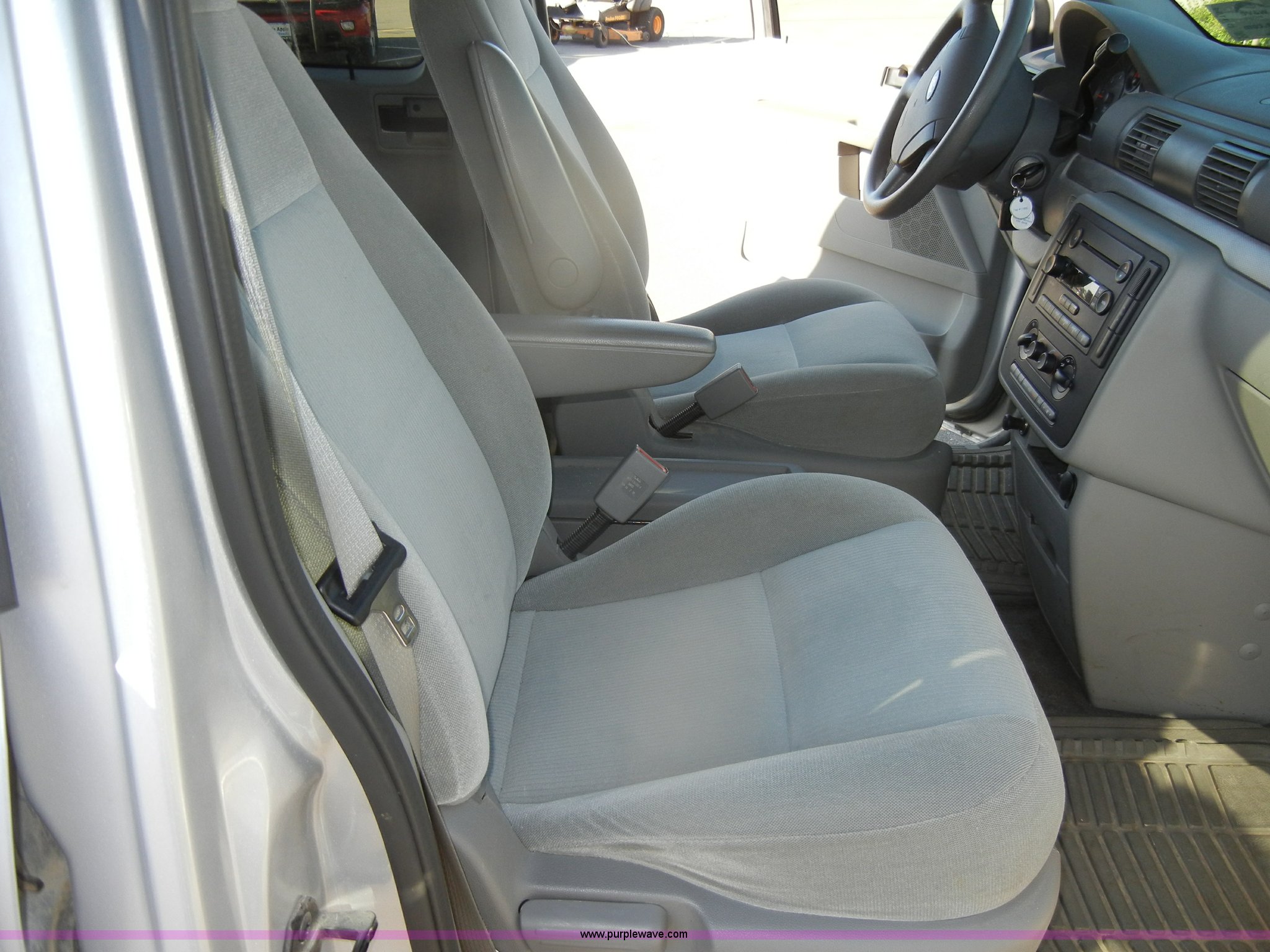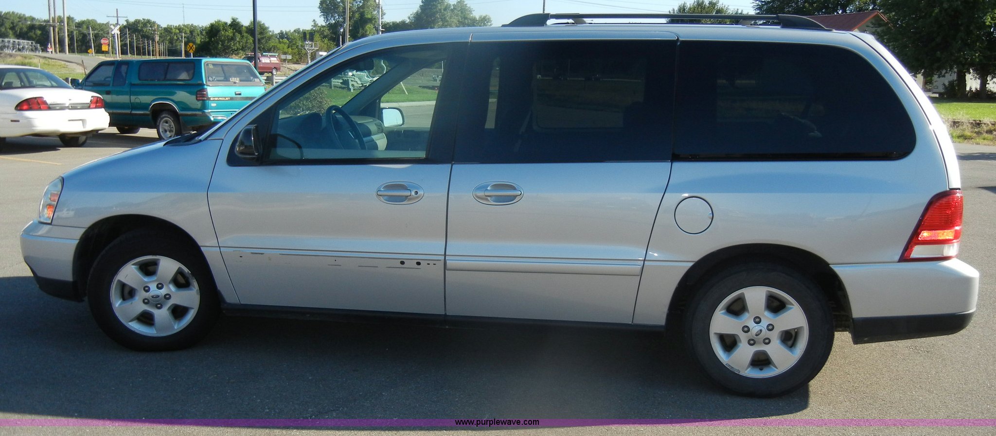 Purple Wave is selling a used Passenger Vehicle in Kansas. This item is a 2007 Ford Freestar SE mini van with the following: 98,003 miles on odometer, 3.9L V6 SPI gas engine, Automatic transmission, AC and heat, Tilt, Cruise, AM/FM/CD, Power windows, locks, mirrors, and seats, Cloth interior, Compass and temp display, 235/60R16 tires, Exterior cosmetic damage, Dents and scratches