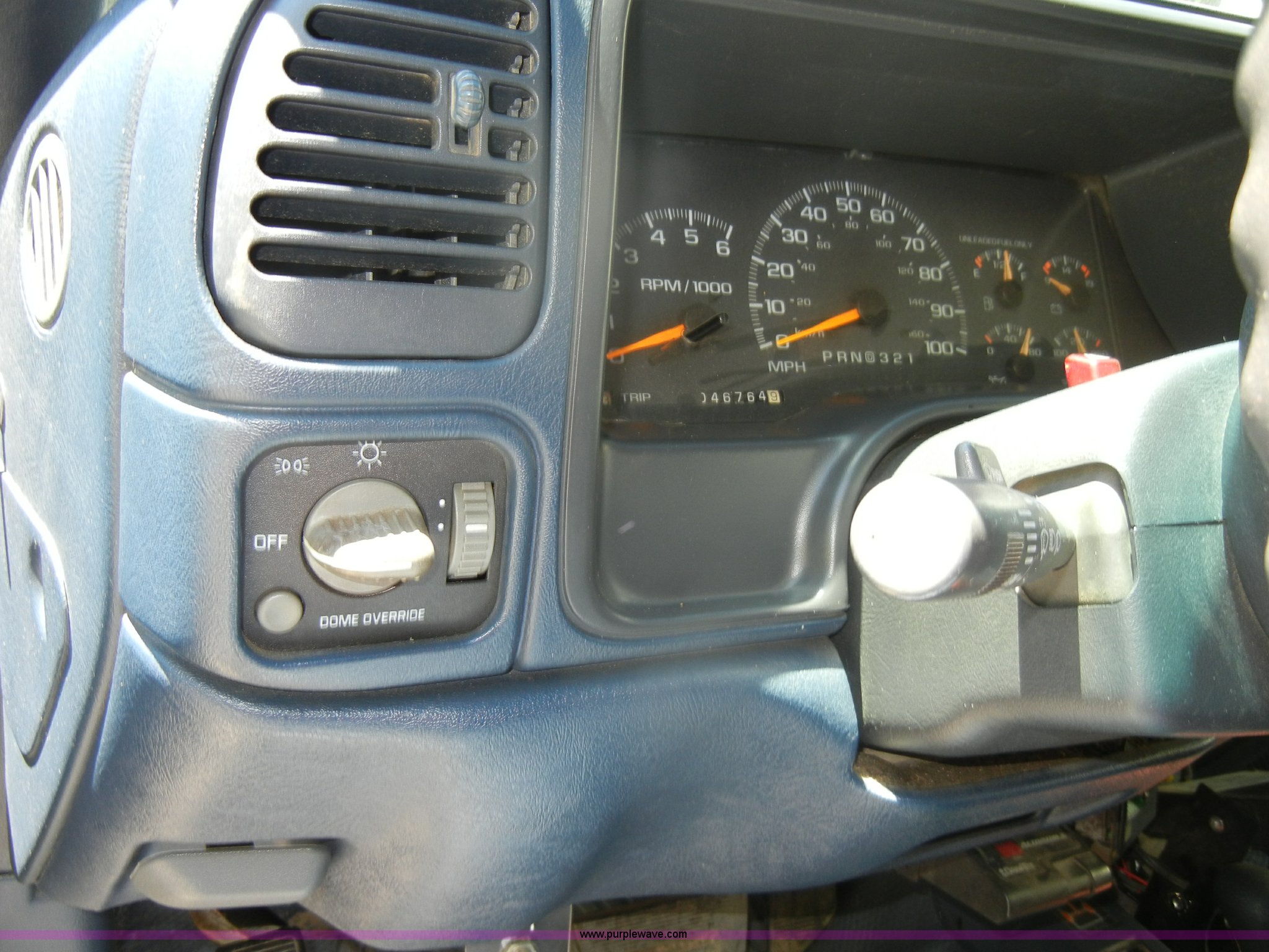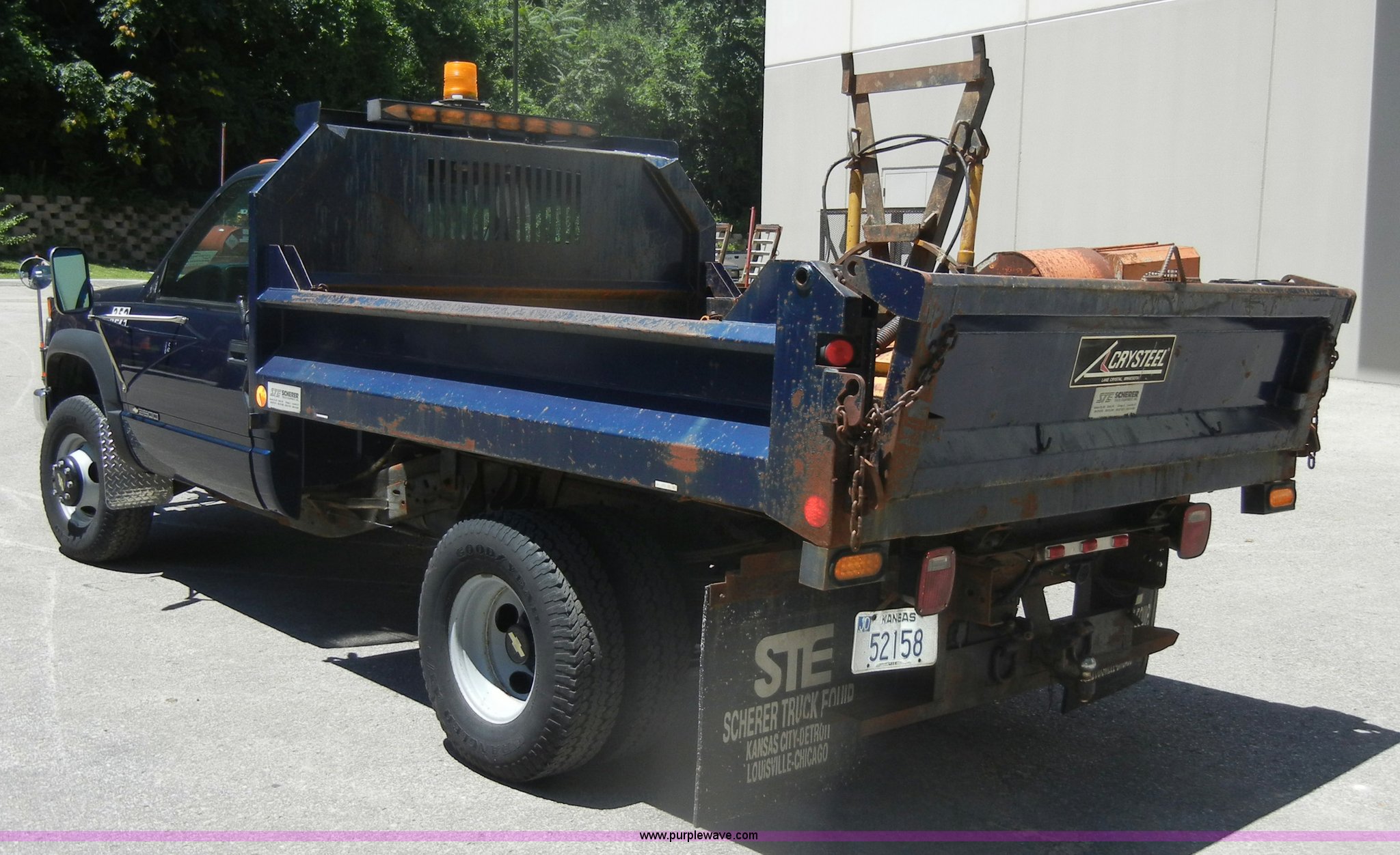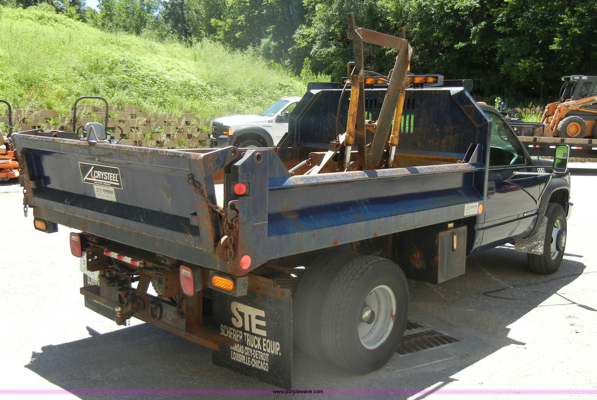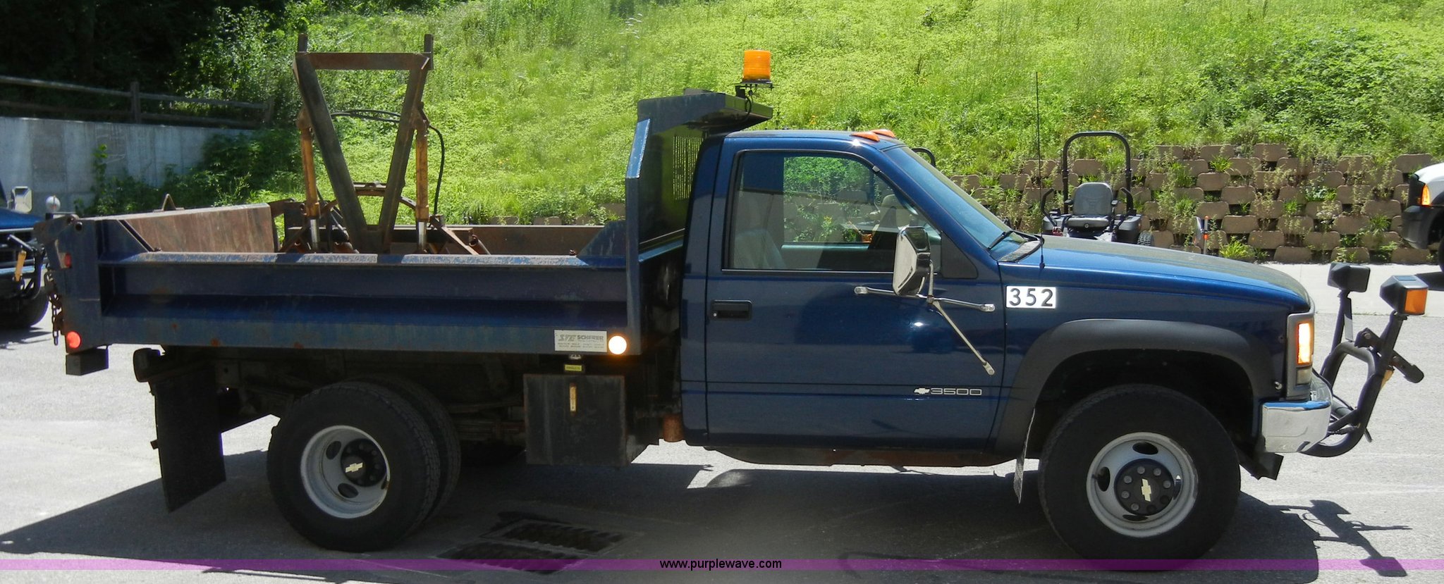 Purple Wave is selling a used 3/4 or 1 Ton Pickup or Van in Kansas. This item is a 1999 Chevrolet K3500 Silverado pickup truck with the following: 46,764 miles on odometer, 7.4L V8 gas engine, Automatic transmission, Four wheel drive, Heat, AM/FM, Manual windows and locks, Vinyl bench seat, Damaged, 9' x 7' hydraulic dump bed, 8' snow plow with hook-ups, Rear hydraulic hook-ups, Strobe light and light bar, Front marker mirror, Missing passenger side, Dual fuel tanks, Reverse alarm, Pintle hitch, 2" ball, Trailer wiring, 235/85R16 tires, Hydraulic tank rusted, Seeps oil, Needs replaced, Unit# 352