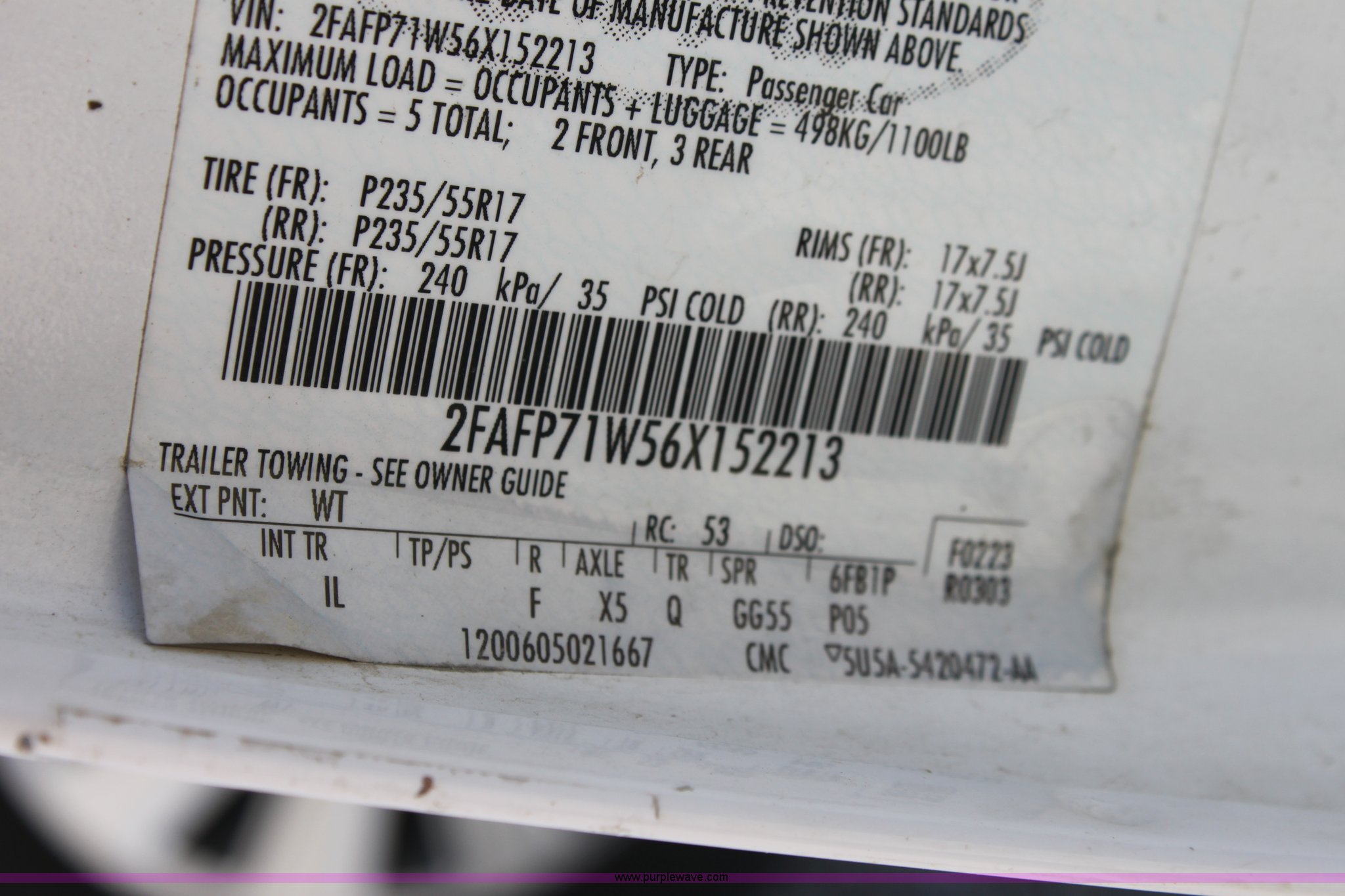 Purple Wave is selling a used Passenger Vehicle in Kansas. This item is a 2006 Ford Crown Victoria Police Interceptor with the following: 100,194 miles on odometer, 4.6L V8 EFI gas engine, Automatic transmission, AC and heat, Tilt, Cruise, AM/FM, Power windows, locks, and mirrors, Cloth interior, 235/55R17 tires, Paint peeling, Missing gas cap