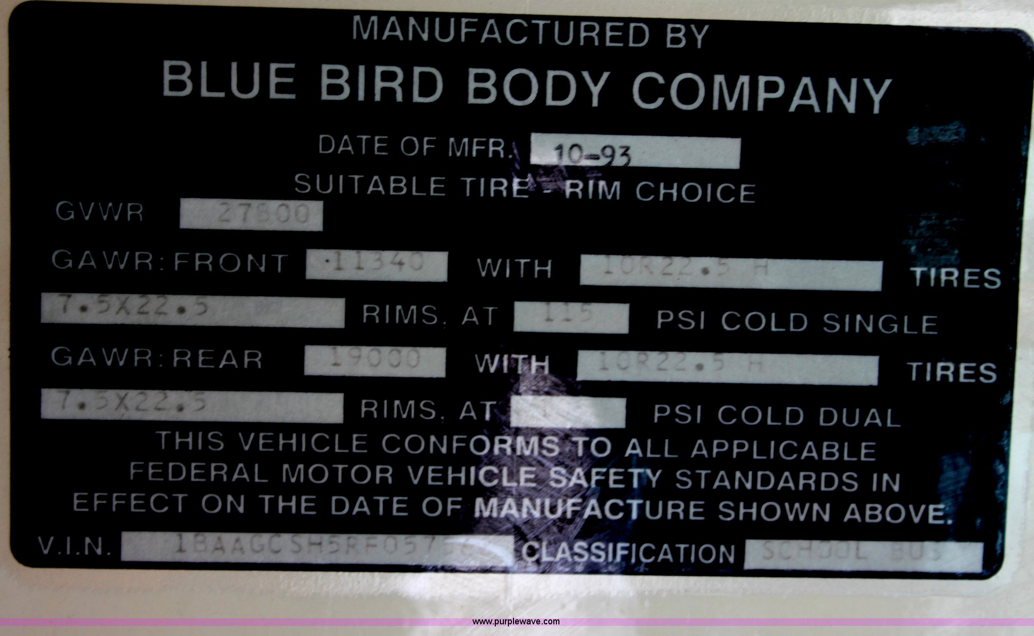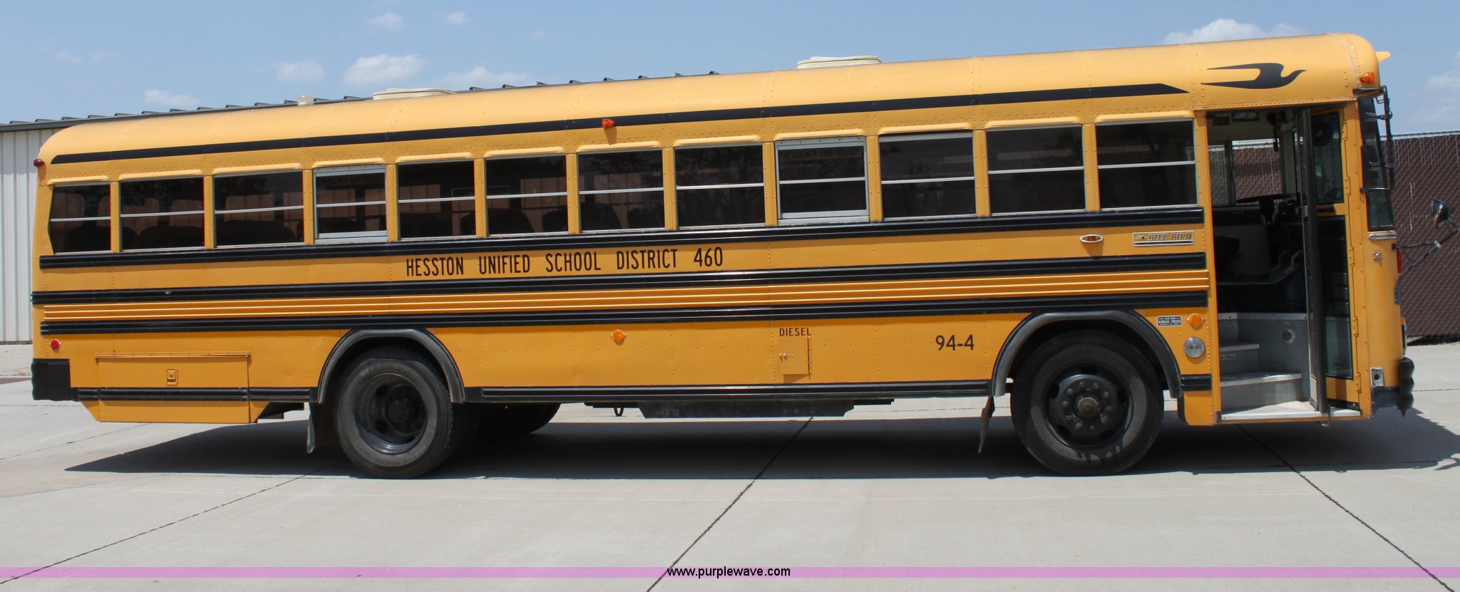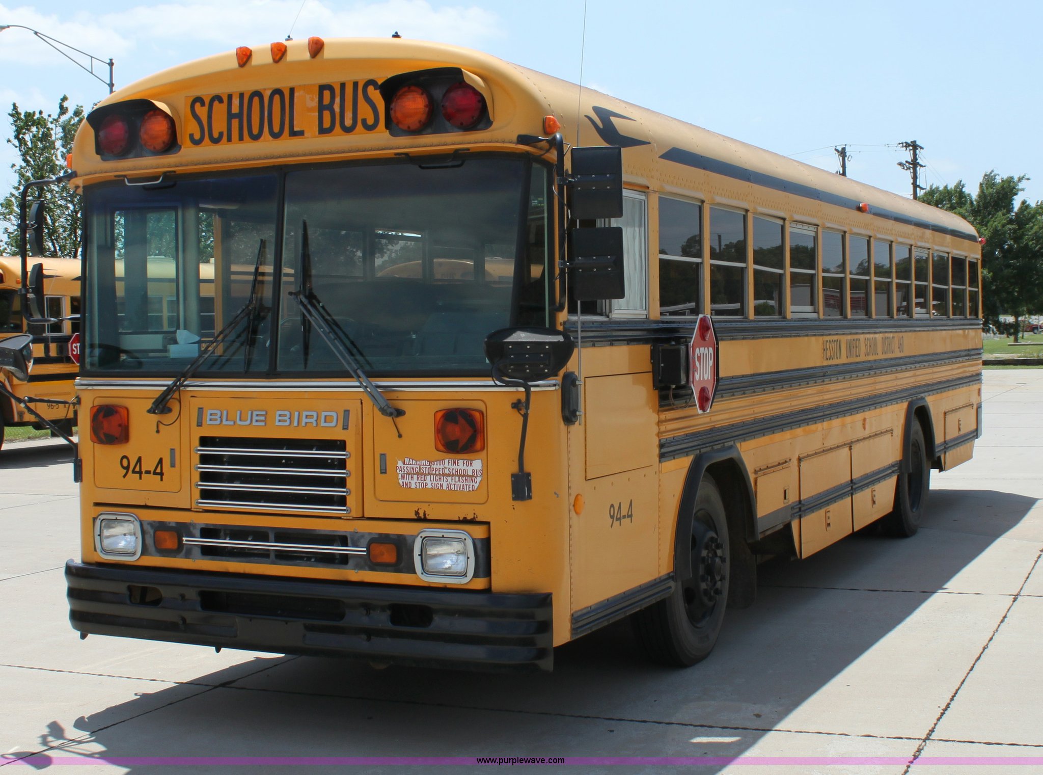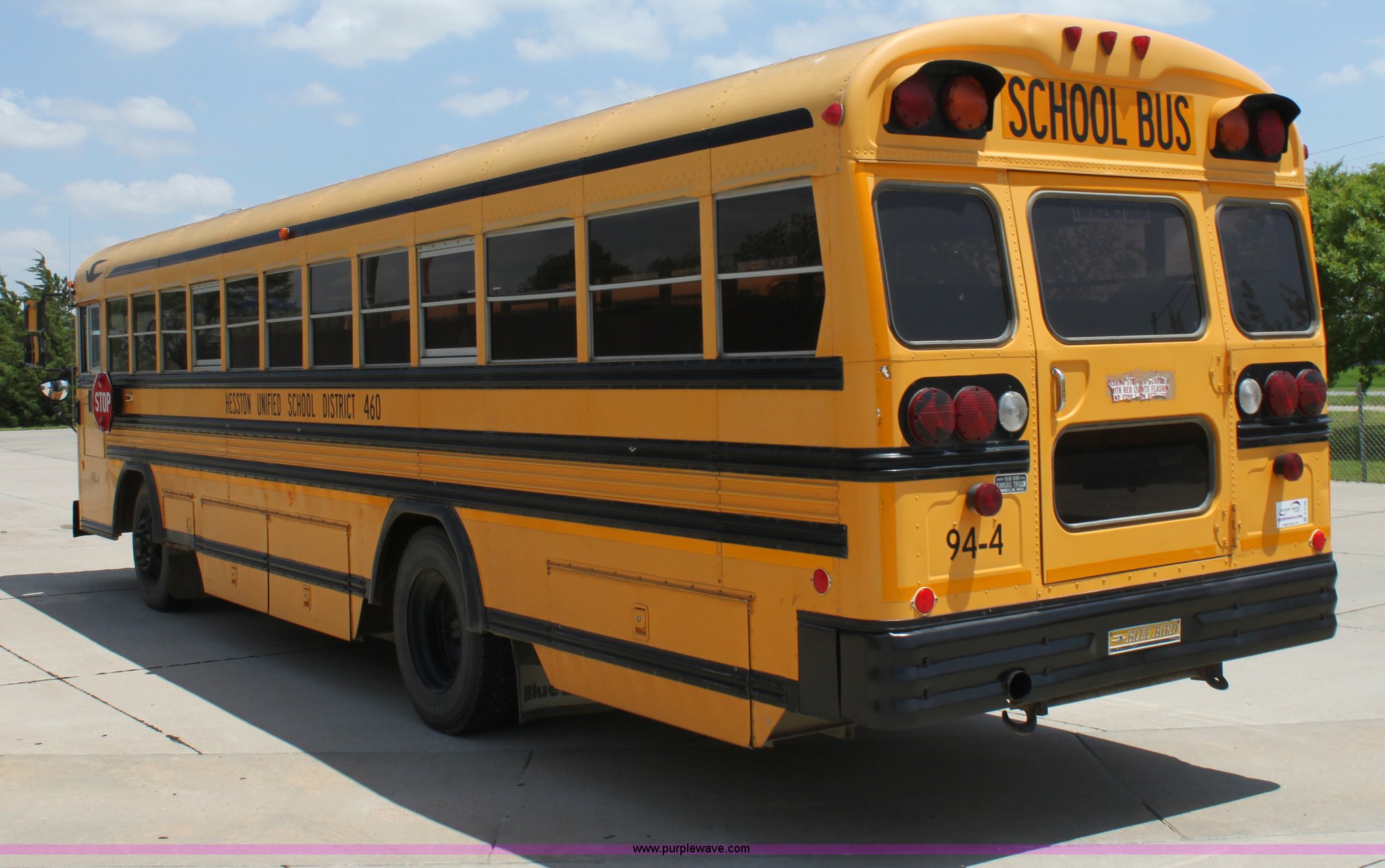 Purple Wave is selling a used Bus in Kansas. This item is a 1994 Blue Bird school bus with the following: 155,423 miles on odometer, 66 passenger, Cummins 5.9L L6 diesel engine, Allison automatic transmission, Heat, AM/FM/Cassette, Silent witness camera system, PA system, Luggage compartments, (4) window emergency egress, (2) roof emergency egress, Rear door egress, 10R22.5 tires, GVWR 27,800 lbs, FAWR 11,340 lbs, RAWR 19,000 lbs, School name will be blacked out