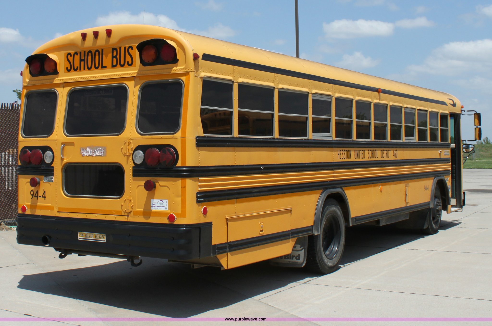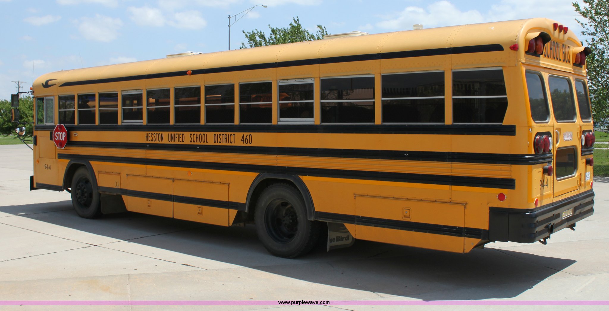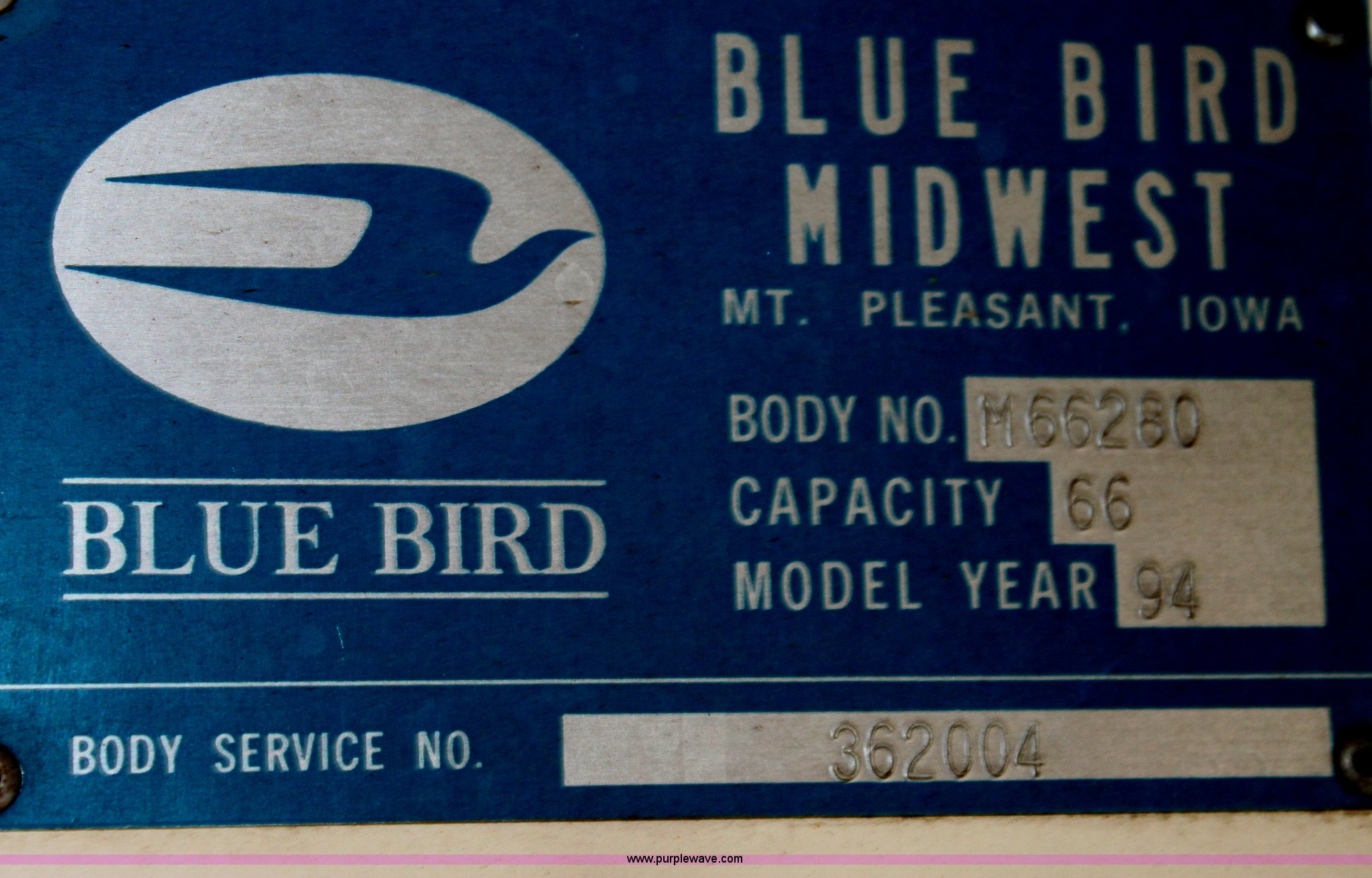 Purple Wave is selling a used Bus in Kansas. This item is a 1994 Blue Bird school bus with the following: 155,423 miles on odometer, 66 passenger, Cummins 5.9L L6 diesel engine, Allison automatic transmission, Heat, AM/FM/Cassette, Silent witness camera system, PA system, Luggage compartments, (4) window emergency egress, (2) roof emergency egress, Rear door egress, 10R22.5 tires, GVWR 27,800 lbs, FAWR 11,340 lbs, RAWR 19,000 lbs, School name will be blacked out