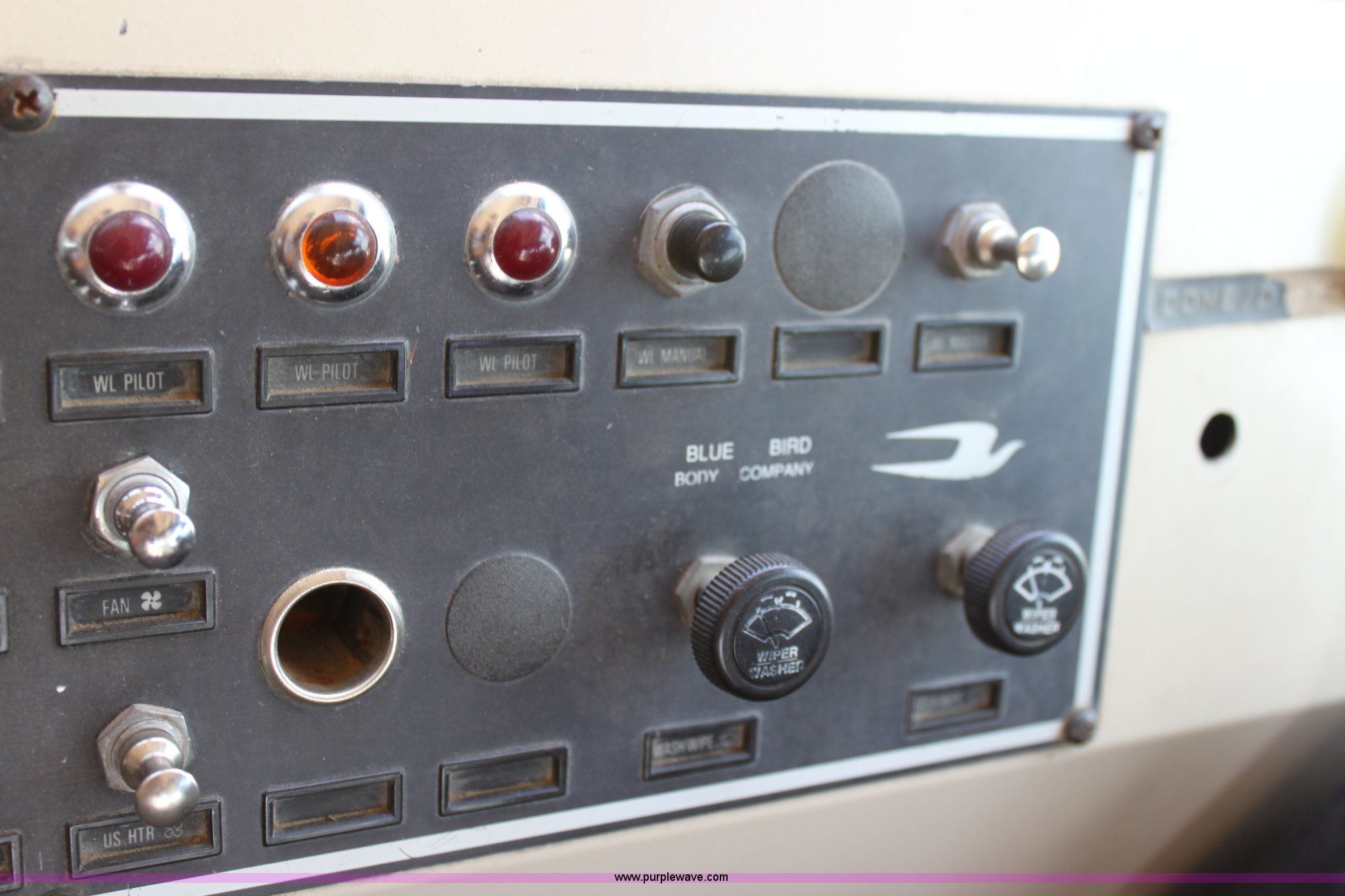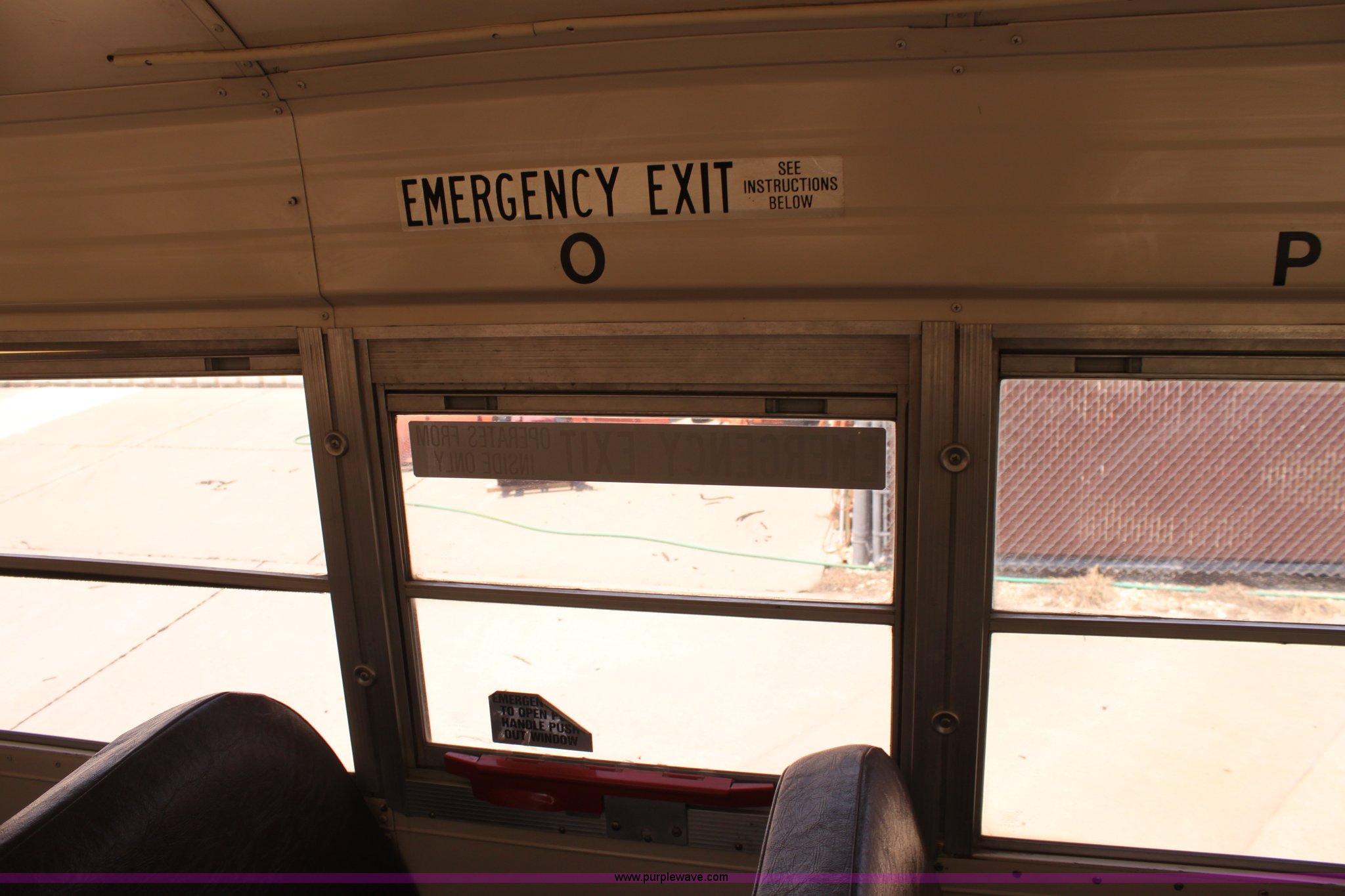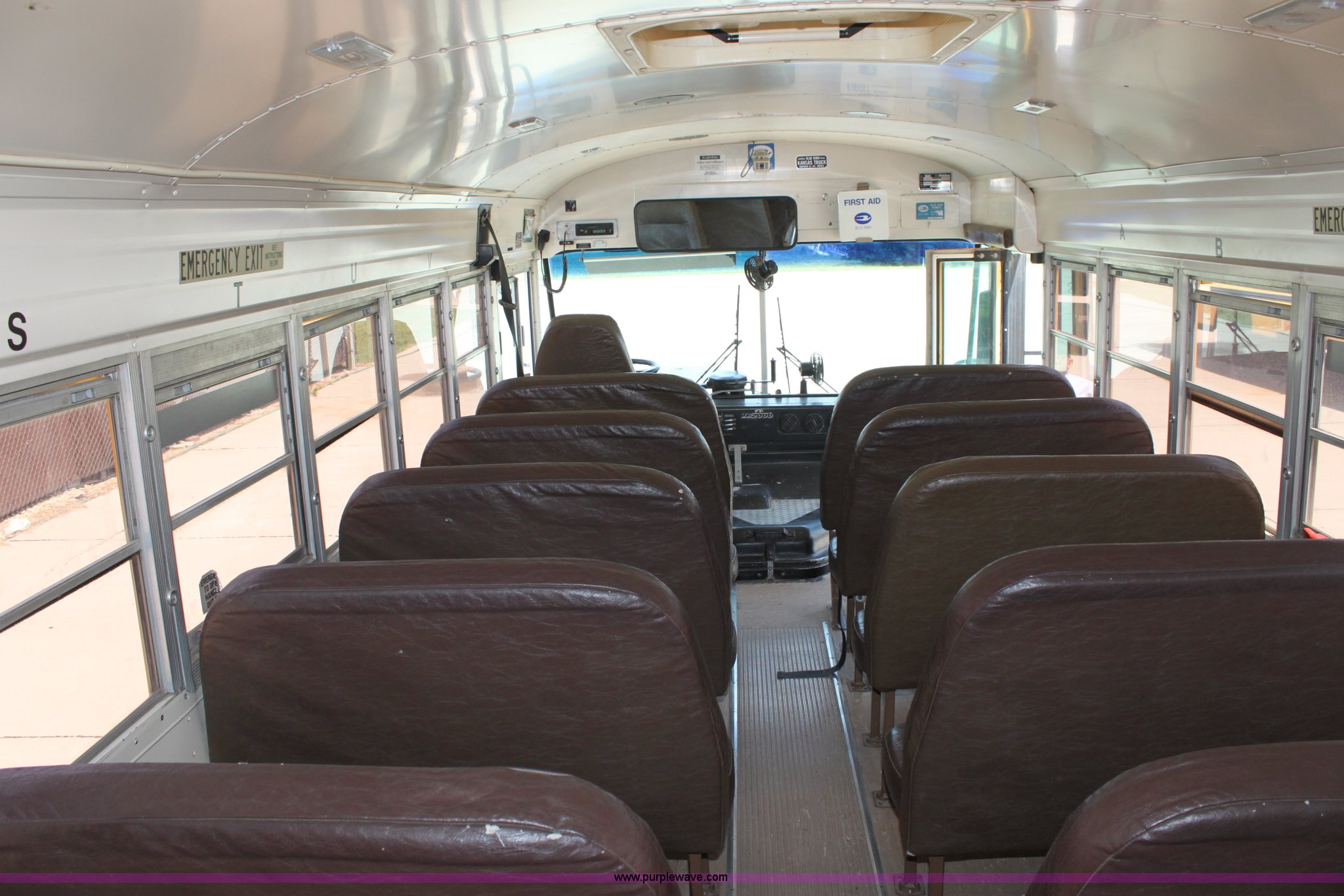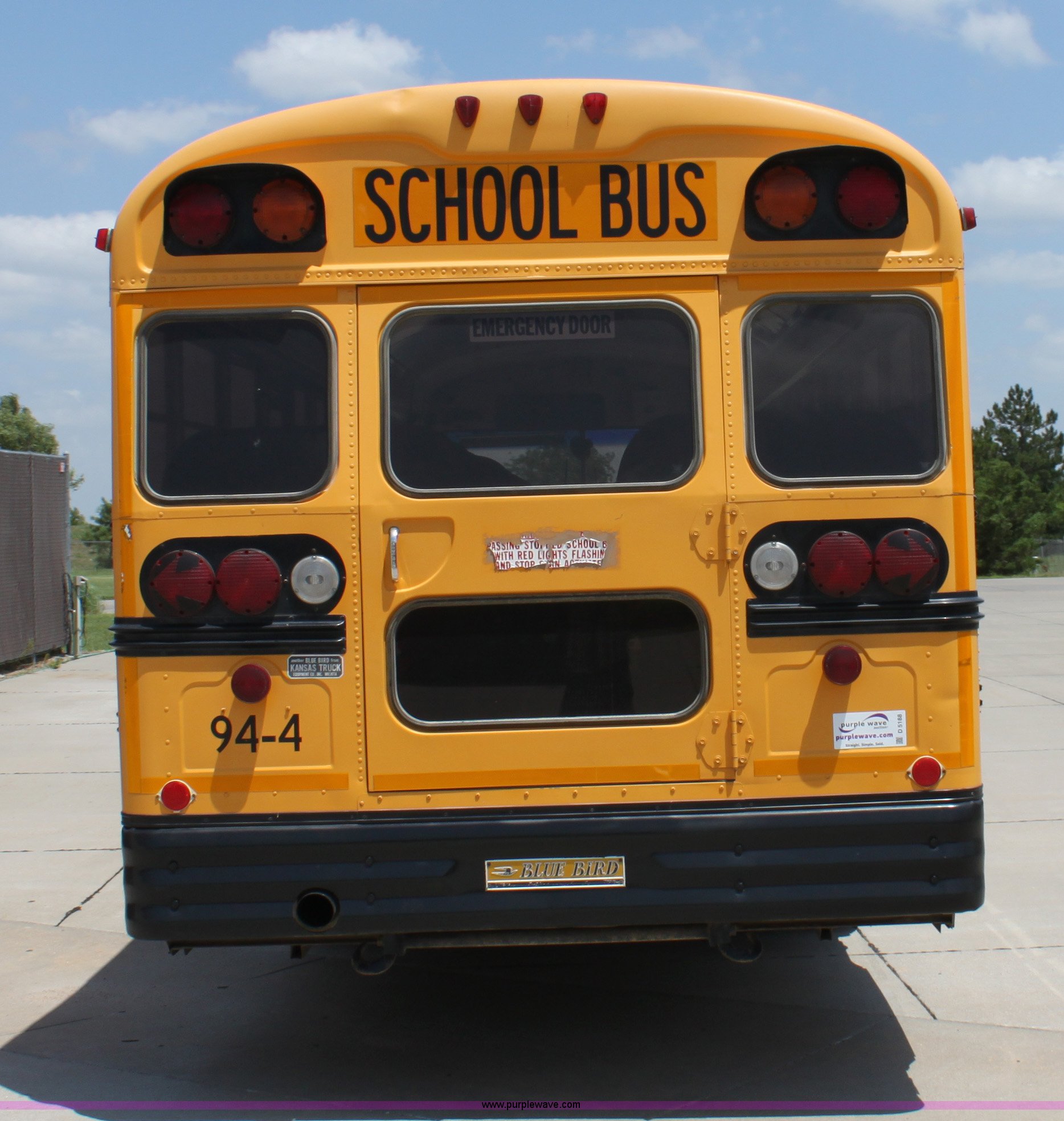 Purple Wave is selling a used Bus in Kansas. This item is a 1994 Blue Bird school bus with the following: 155,423 miles on odometer, 66 passenger, Cummins 5.9L L6 diesel engine, Allison automatic transmission, Heat, AM/FM/Cassette, Silent witness camera system, PA system, Luggage compartments, (4) window emergency egress, (2) roof emergency egress, Rear door egress, 10R22.5 tires, GVWR 27,800 lbs, FAWR 11,340 lbs, RAWR 19,000 lbs, School name will be blacked out