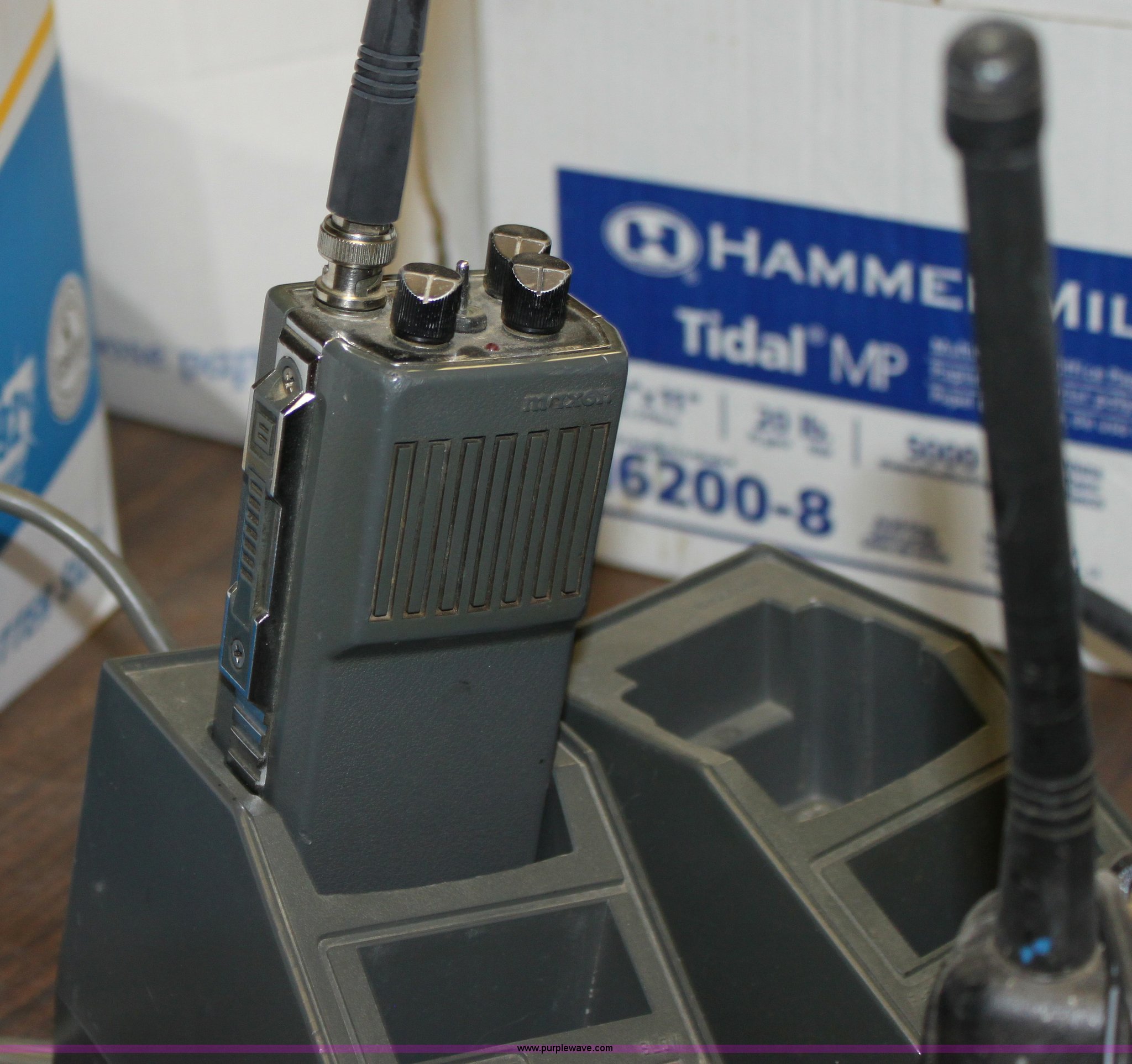 Purple Wave is selling a used Electronics in Kansas. This item is a (15) two way radios with the following: (7) Motorola, (2) ICom, (4) Maxon, (3) Heavy Duty Maxon, (2) Midland radios, Motorola radio, Securicor radio, (16) charging stations, Maxon two way radio