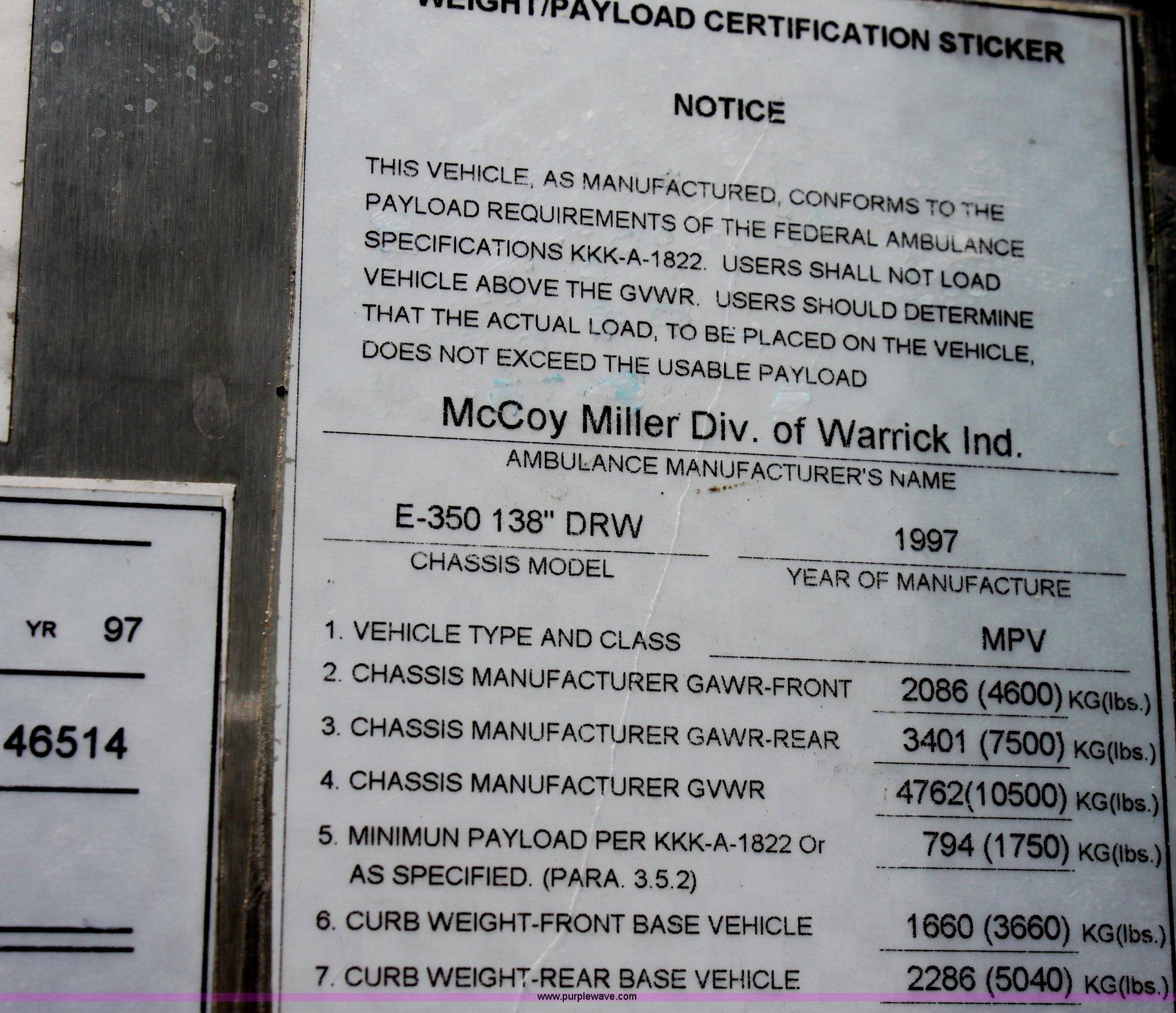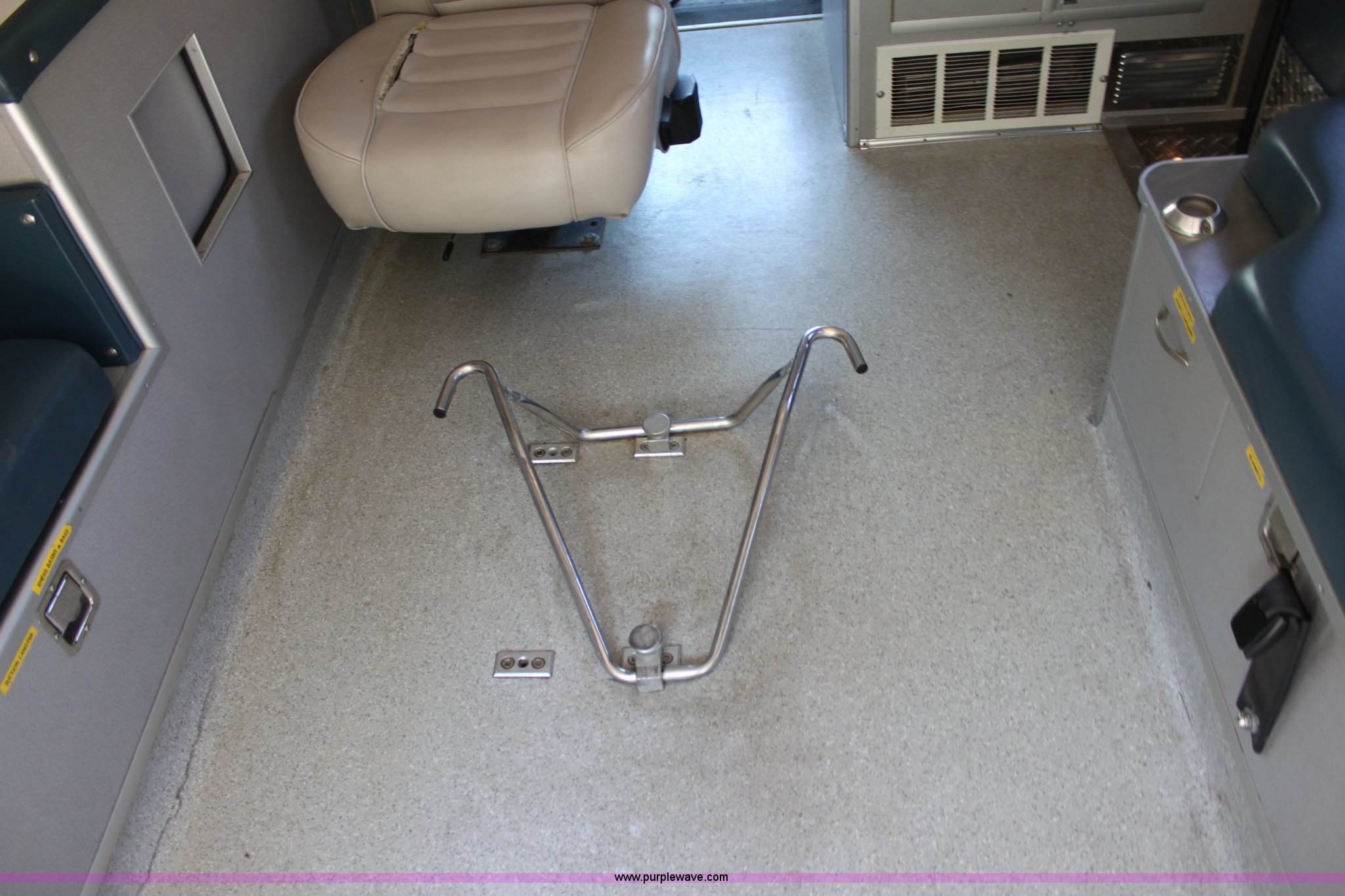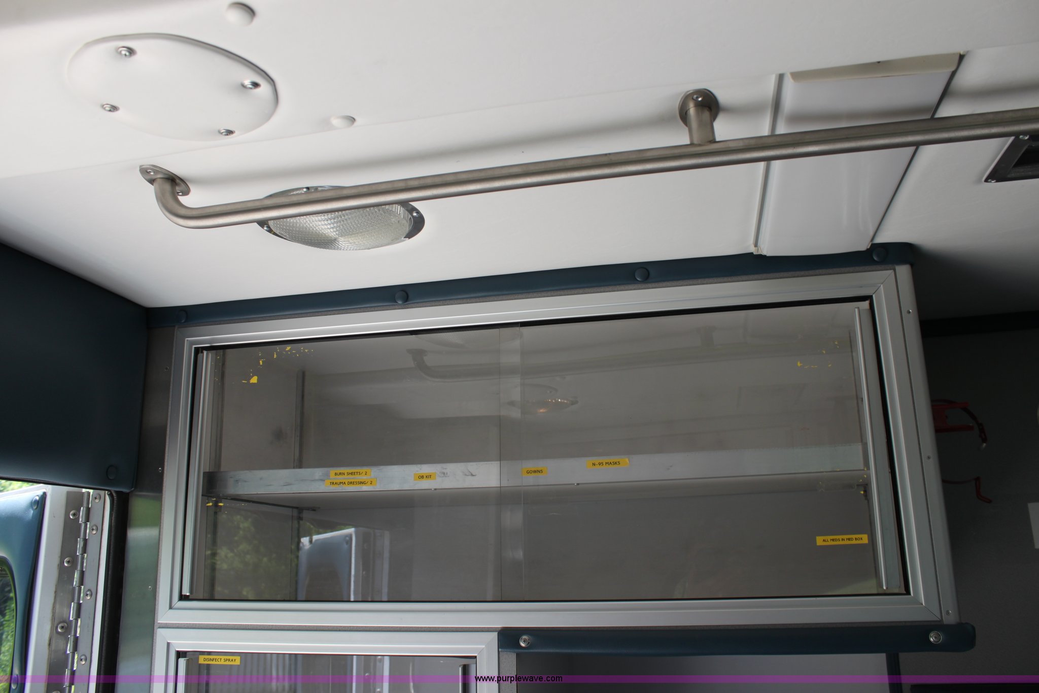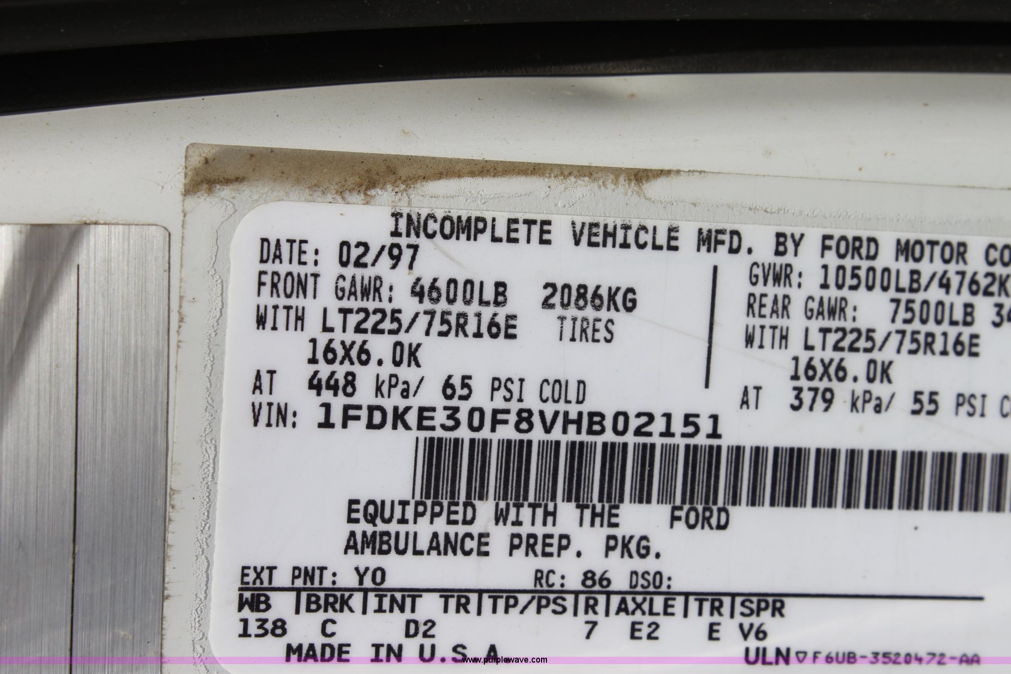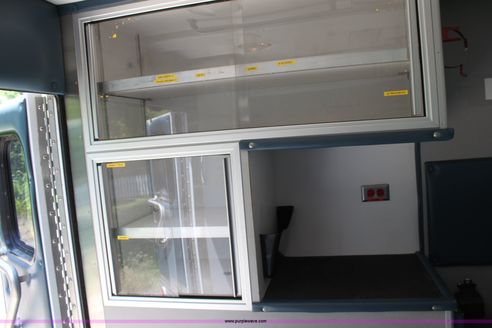 Purple Wave is selling a used Passenger Vehicle in Kansas. This item is a 1997 Ford E350 ambulance with the following: 121,293 miles on odometer, 4,333 hours on meter, 7.3L V8 turbo diesel engine, Automatic transmission, AC and heat, Tilt, Cruise, AM/FM, Power windows and locks, Cloth interior, Rear AC and heat controls, McCoy Miller light and siren controls, Back-up alarm, 110/125V exterior outlet, (3) oxygen connections, (2) rear 115V outlets, Rear interior lighting, 225/75R16 tires