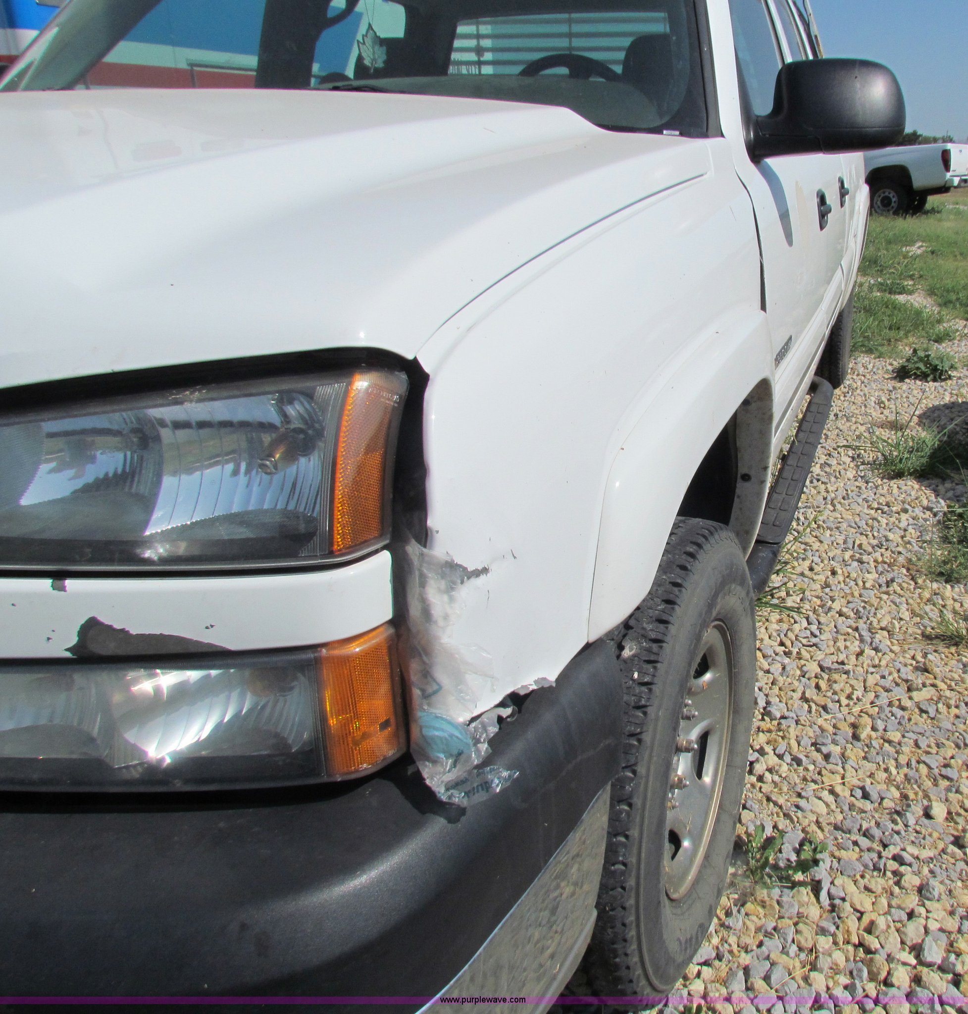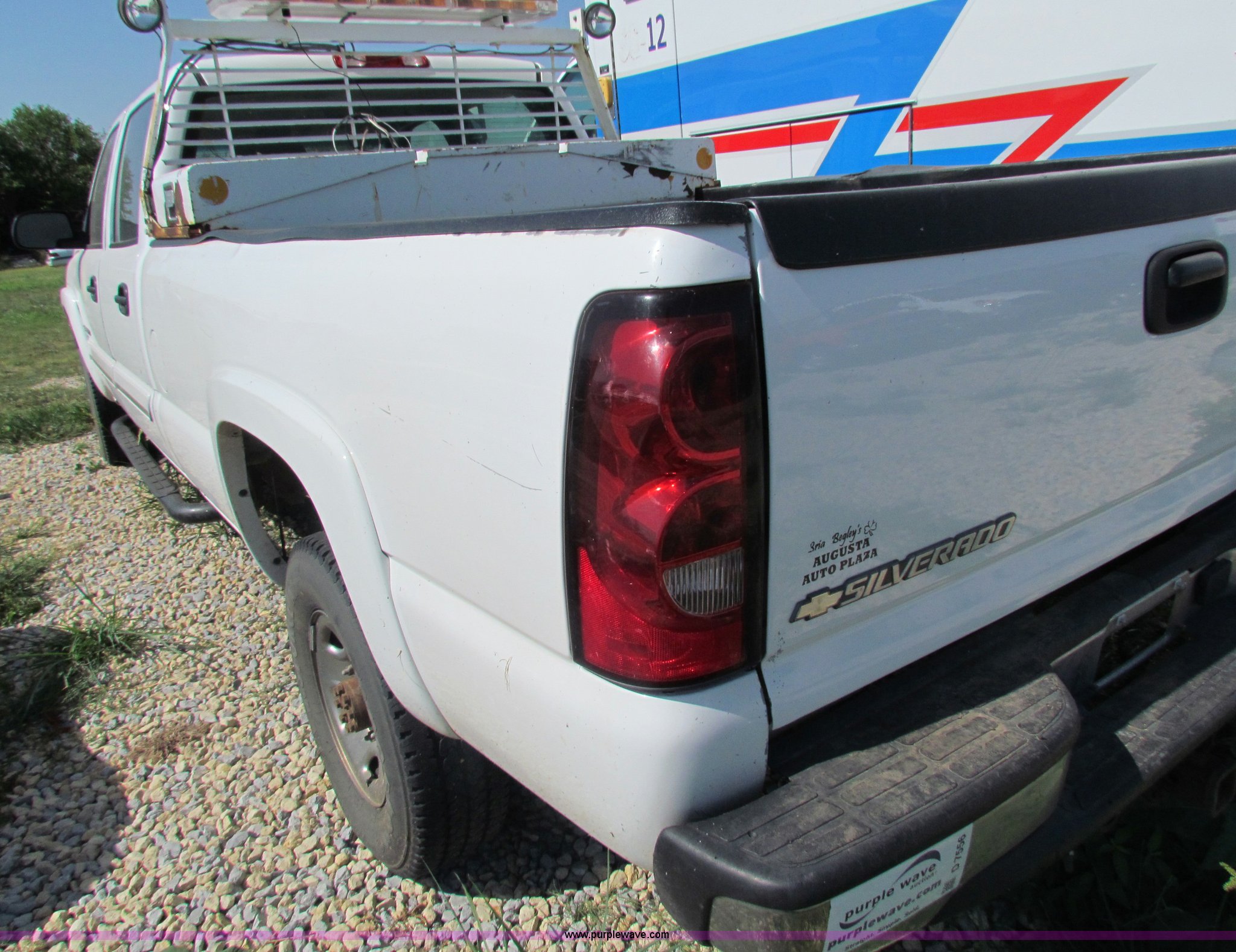 Purple Wave is selling a used Passenger Vehicle in Kansas. This item is a 2005 Chevrolet Silverado 2500 HD pickup truck with the following: 145,071 miles on odometer, 6.0L V8 SFI gas engine, Automatic transmission, AC and heat, Tilt, Cruise, Power windows and locks, AM/FM/CD, Dual climate control, Rawson & Koeing headache rack and toolbox, Excalibur Code 3 light bar, 245/75R16 tires, Interior/exterior cosmetic damage, Service engine soon light is on, Engine has low oil pressure