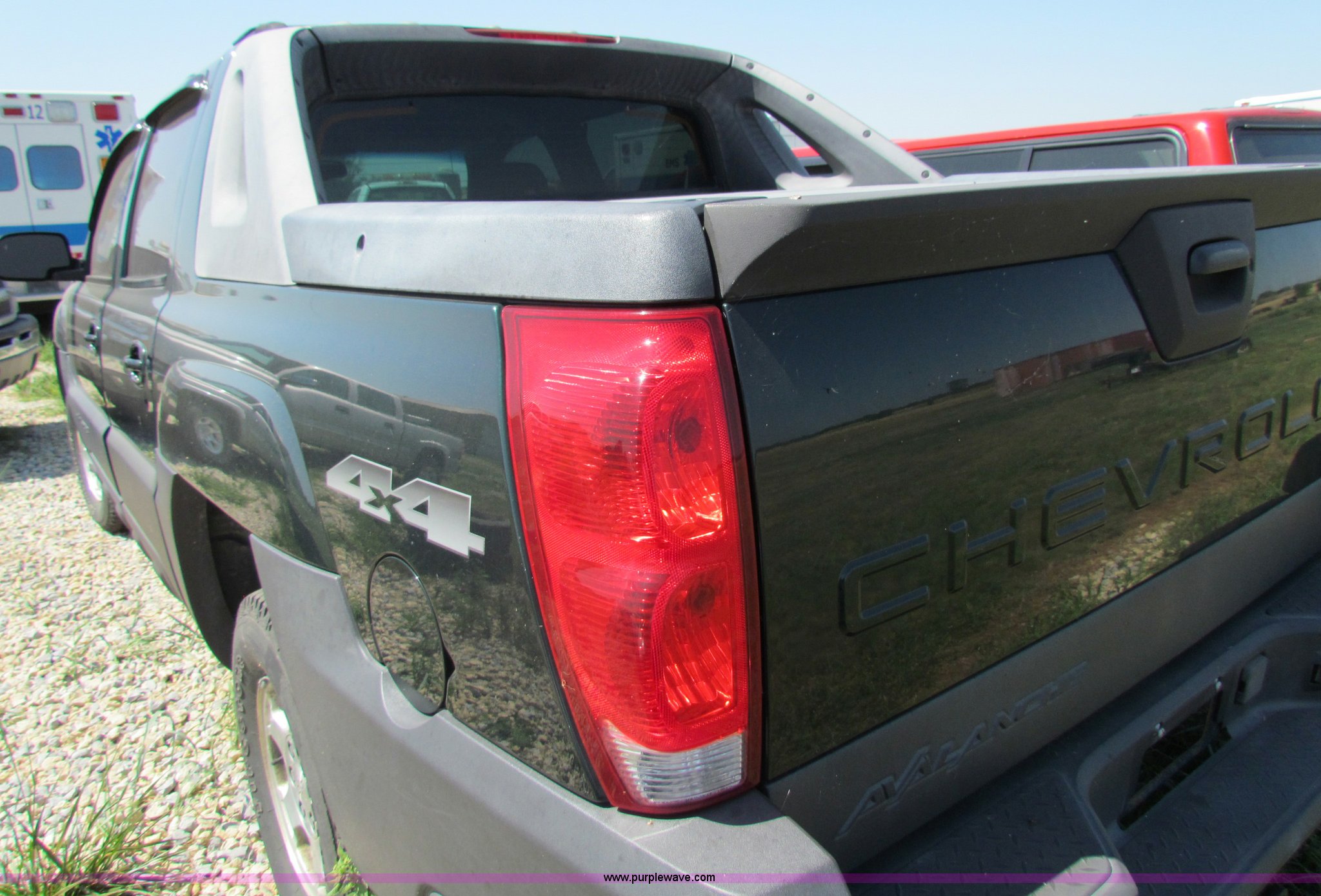 Purple Wave is selling a used Compact Pickup or Van in Kansas. This item is a 2004 Chevrolet Avalanche pickup truck with the following: 74,079 miles on odometer, 5.3L V8 SFI gas engine, Automatic transmission, Four wheel drive, AC and heat, AM/FM/CD, Power windows, locks, mirrors, and seats, Dual climate control, 265/70R16 tires, Interior/exterior cosmetic damage