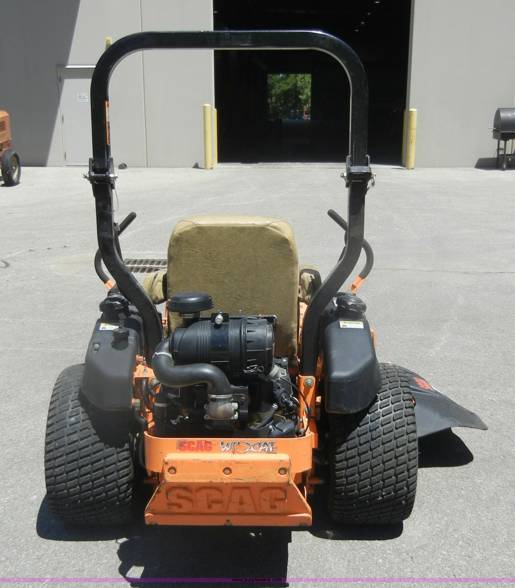 Purple Wave is selling a used Commercial Turf Mower in Kansas. This item is a Scag Wildcat ZTR lawn mower with the following: 654 hours on meter, 61" cut, Kohler 30 HP engine, ROPS, Captain seat, Dual fuel tanks, 13x6.50-6 front tires, 24x12.00-12 rear tires, Model STWC61V-30CV, Serial B5800022