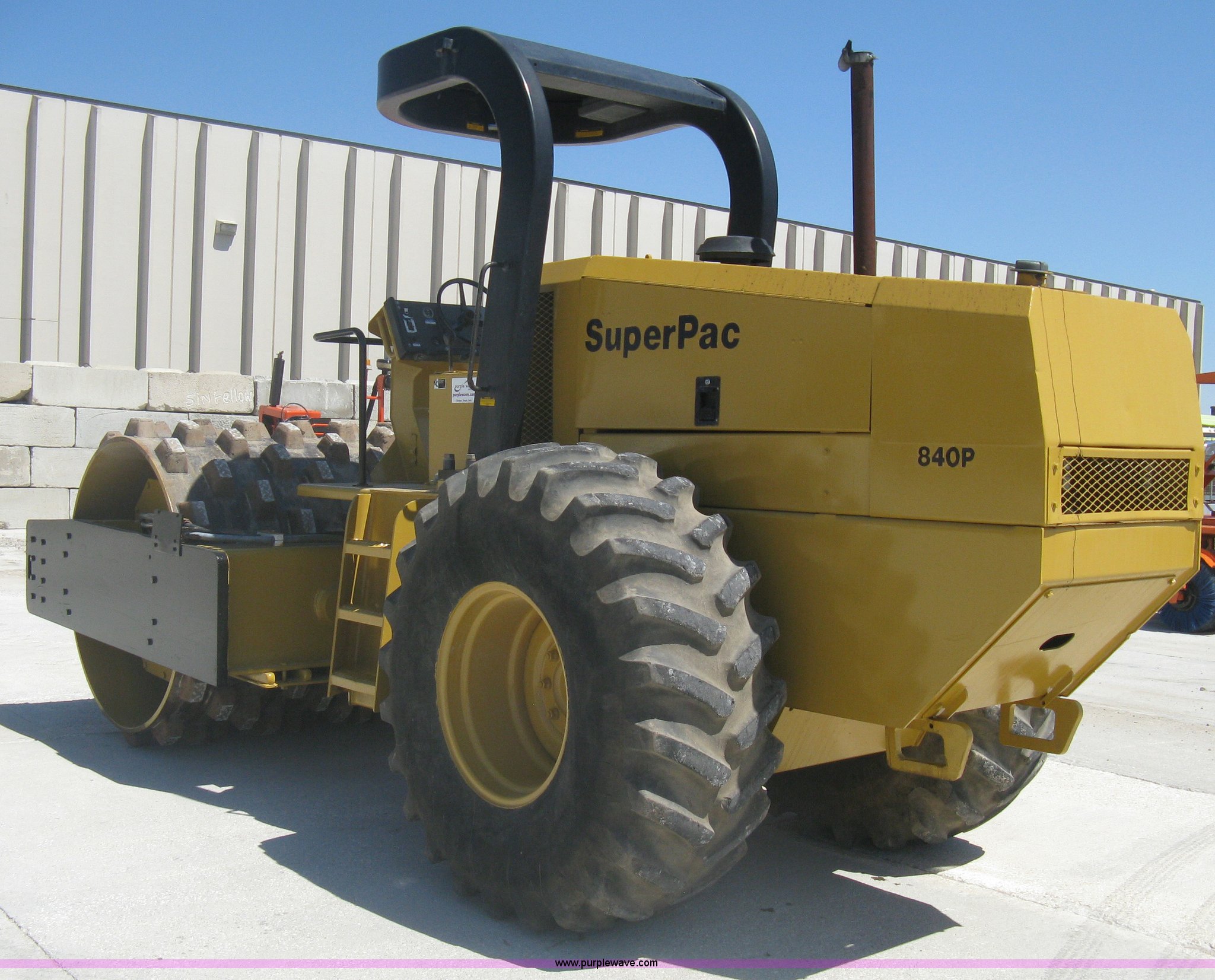 Purple Wave is selling a used Single Drum Roller Compactor in Kansas. This item is a Champion 840P SuperPac vibratory padfoot roller with the following: 4,422 hours on meter, Cummins 5.9L six cylinder diesel engine, 148 HP, Hydrostatic transmission, Forward/Reverse, Saf-T-Cab OROPS, Articulated body, 7'W pad foot roller, 27,740 lbs. base operating weight, Firestone traction 23 tires, Serial X101217X