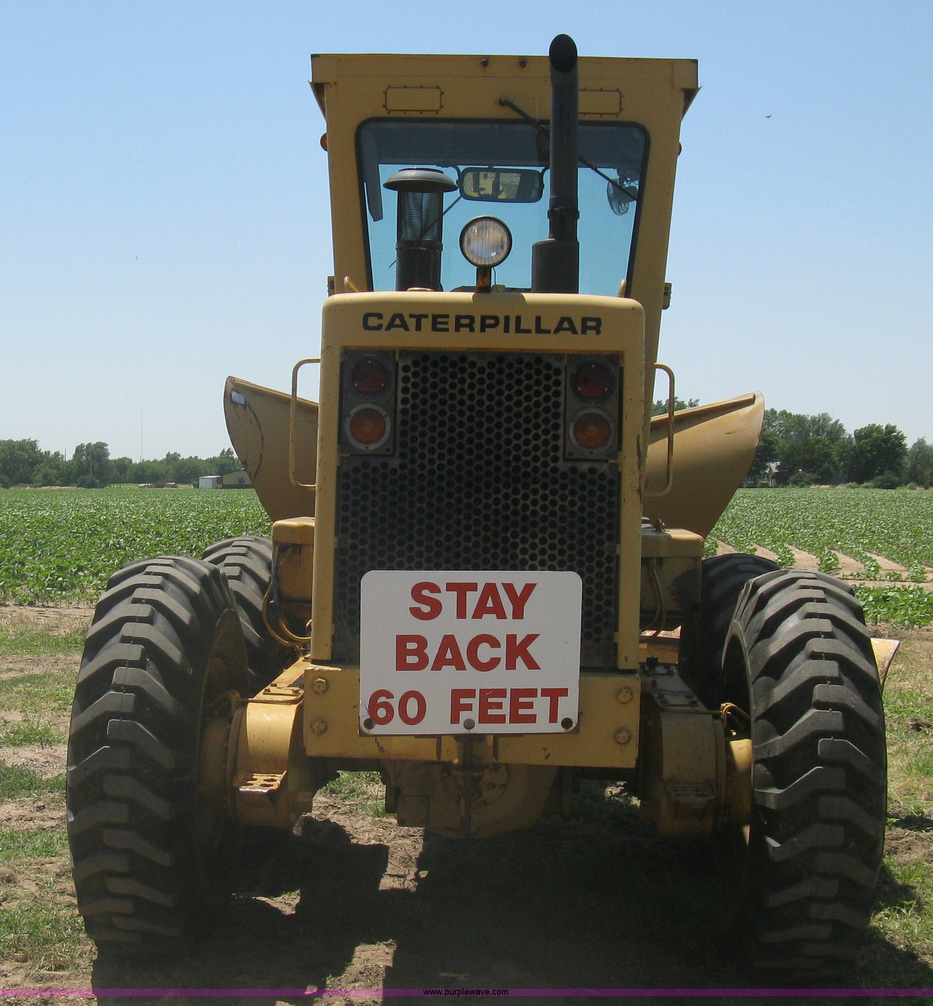 Purple Wave is selling a used Motor Grader in Kansas. This item is a 1983 Caterpillar 120G motor grader with the following: 6,541 hours on meter, Caterpillar 3304 four cylinder diesel engine, 125 HP, Serial 07Z05591, Six speed forward and reverse transmission, Enclosed cab, AM/FM, Suspension seat, (2) fans, CB radio, Front and rear wiper blades, Work lights, 16' moldboard, (2) 2.5' blade extensions included in length, Omaha Steel Works motor grader snow plow, 64" wings, Bolt-on edge, Serial SP-14M-35, Rear pin hitch, (2) tire chains included, Unused, 28,350 lbs. base operating weight, 14.00-24 tires, Less than 100 miles, Full inspection conducted by Caterpillar dealer in October 2011, Recently replaced fuel injector pump, Replaced batteries in 2011, Non-operational parking brake, Serial 87V06708