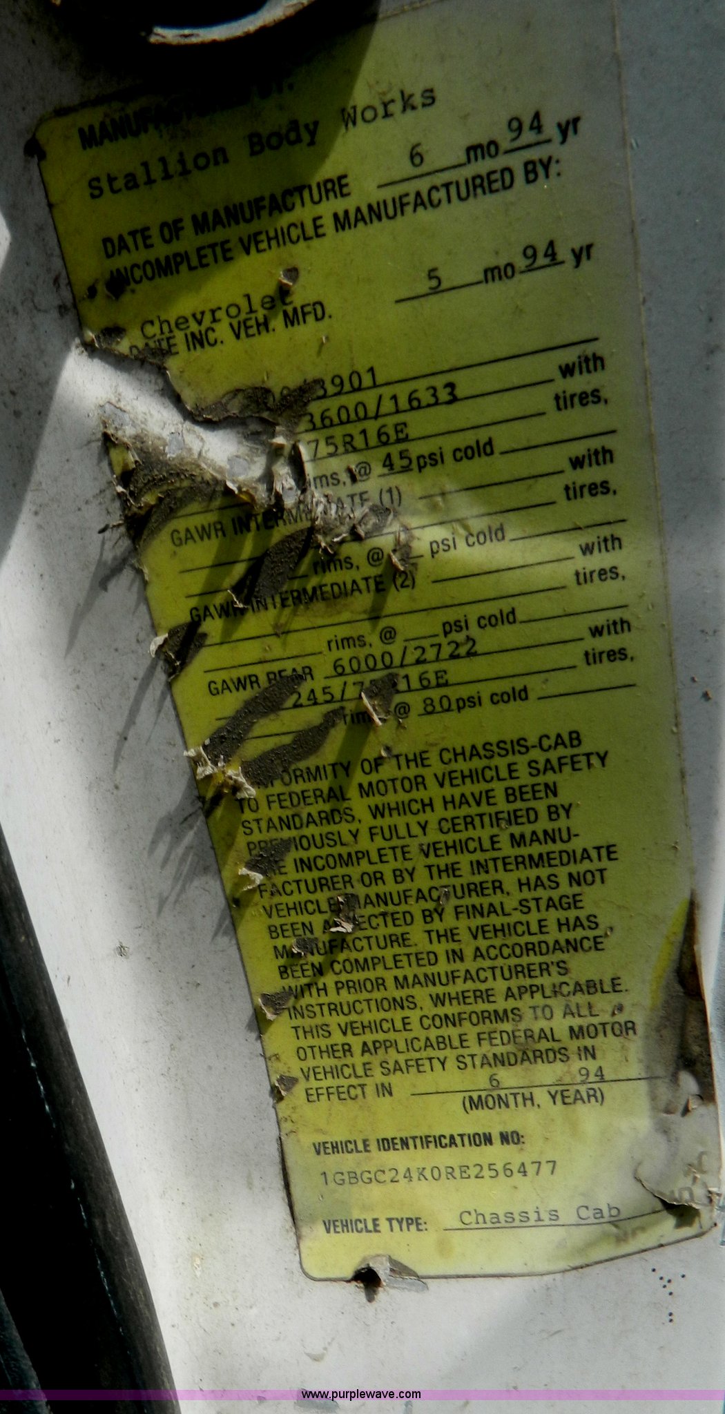 1994 Chevrolet 2500 utility pickup truck. 124,851 miles on odometer, 5.7L V8 gas engine, Four speed manual transmission with overdrive, AC and heat, AM/FM, Manual windows and locks, LT245/75R16 tires, Interior/exterior cosmetic damage, Paint peeling. Title distribution may be delayed up to 14 days from verification of funds. 1GBGC24K0RE256477. Shipping quotes available. Glassman Corporation. 900 Commerce Parkway. Hays, KS 67601