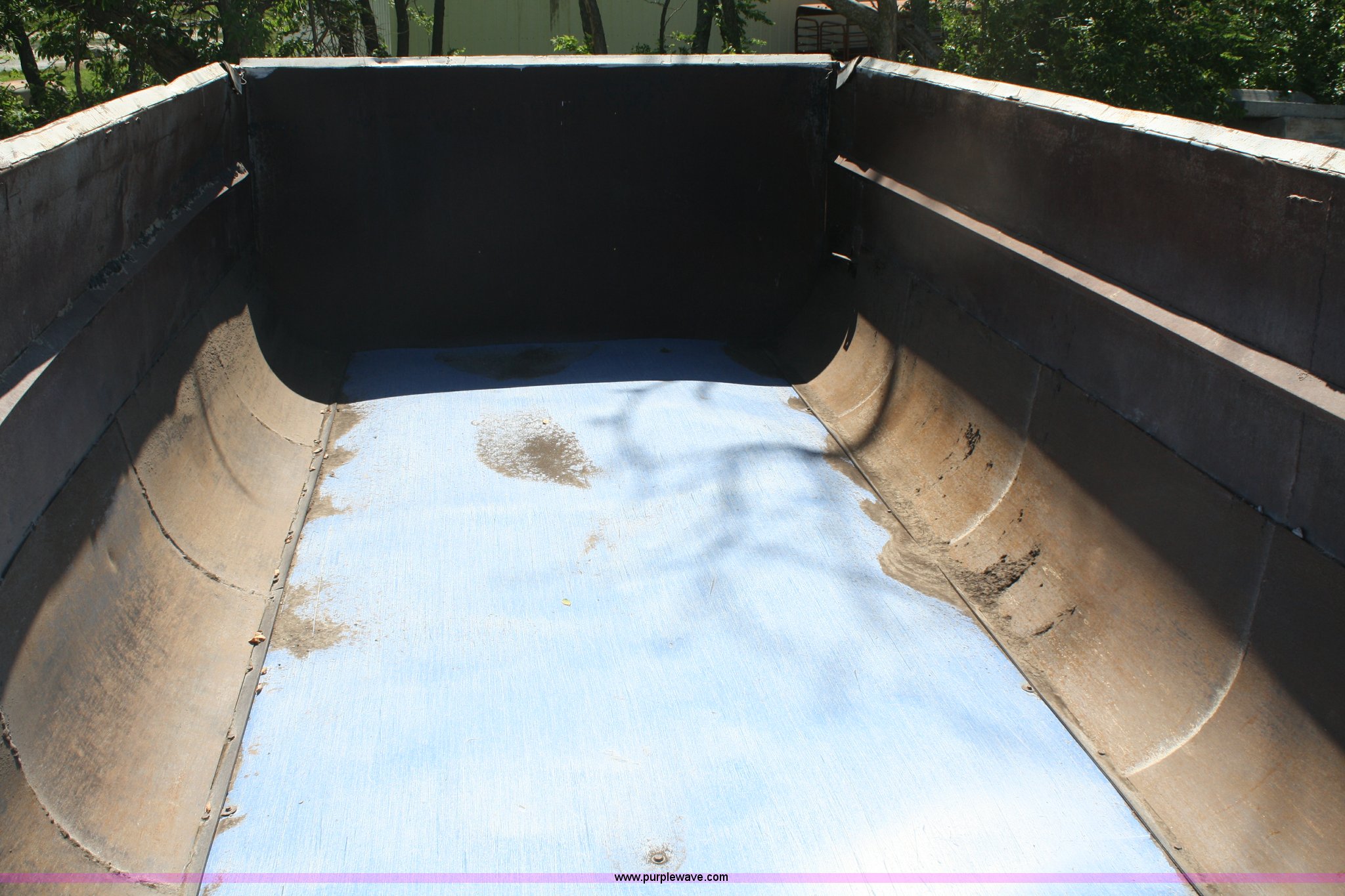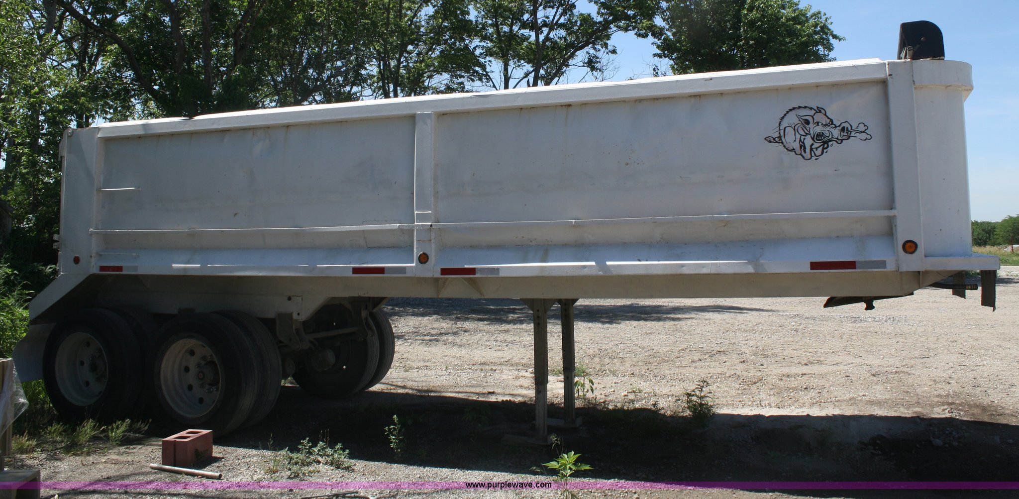 Purple Wave is selling a used End Dump Rock Trailer in Kansas. This item is a 2000 Hog 24'L end dump trailer with the following: 8'8" from ground to top rail, Air brakes, Spring suspension with air bags, Pneumatic tailgate latch, Manual tarp, (3) aluminum wheels, (5) steel wheels, 285/75R24.5 tires