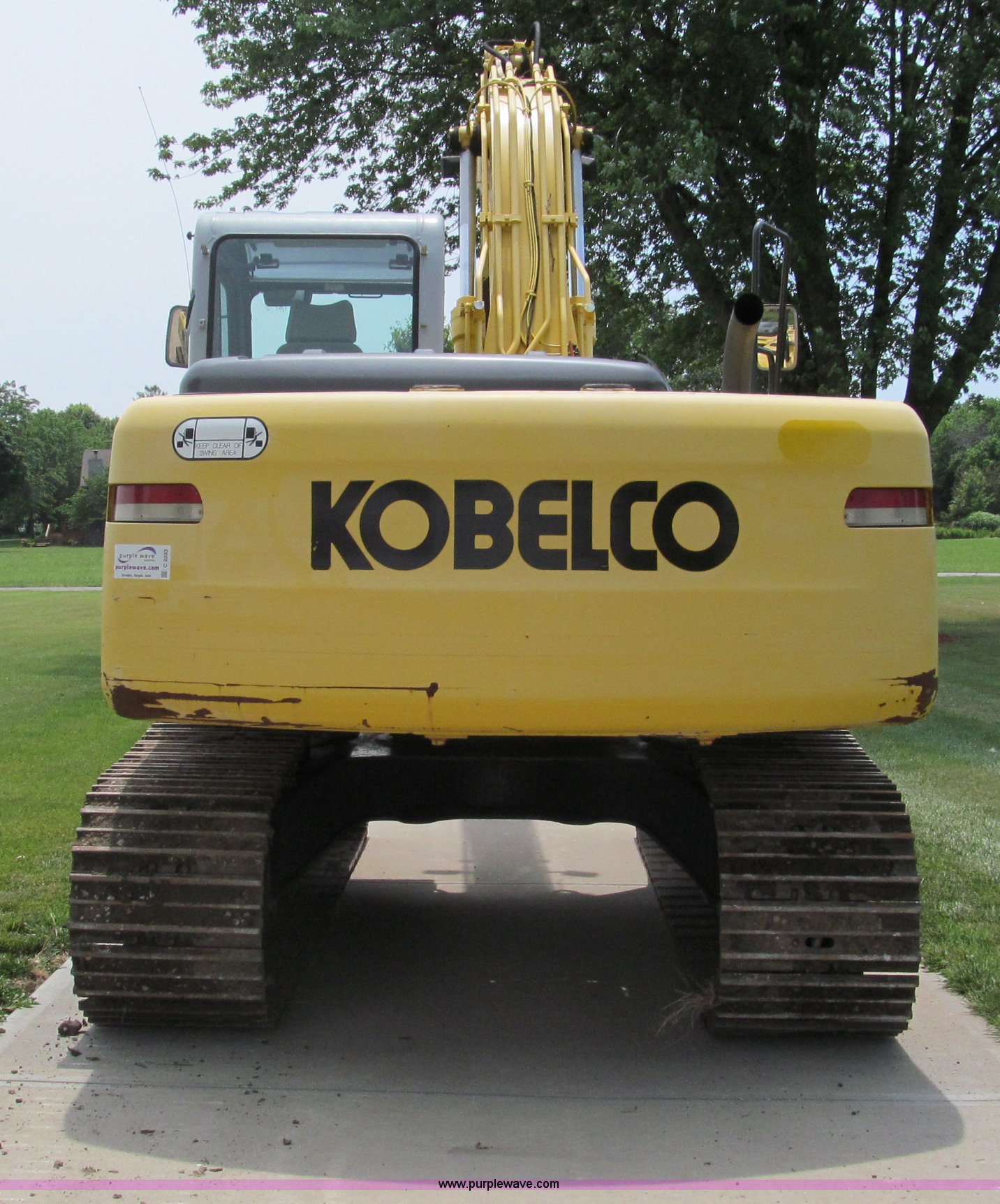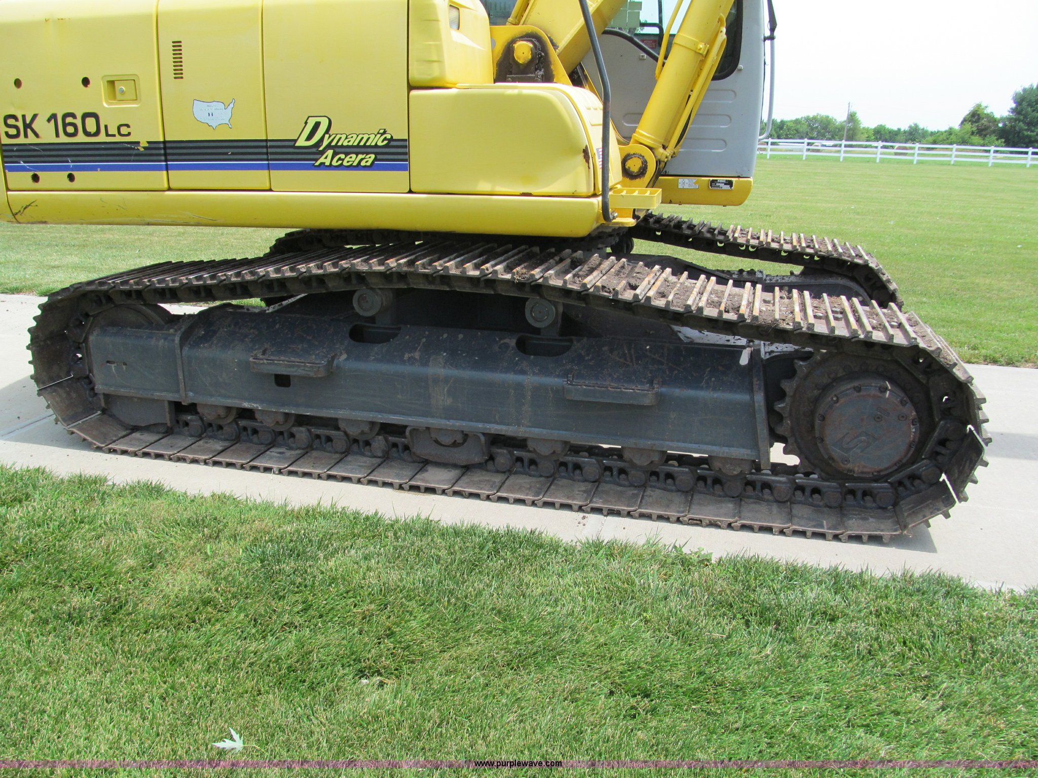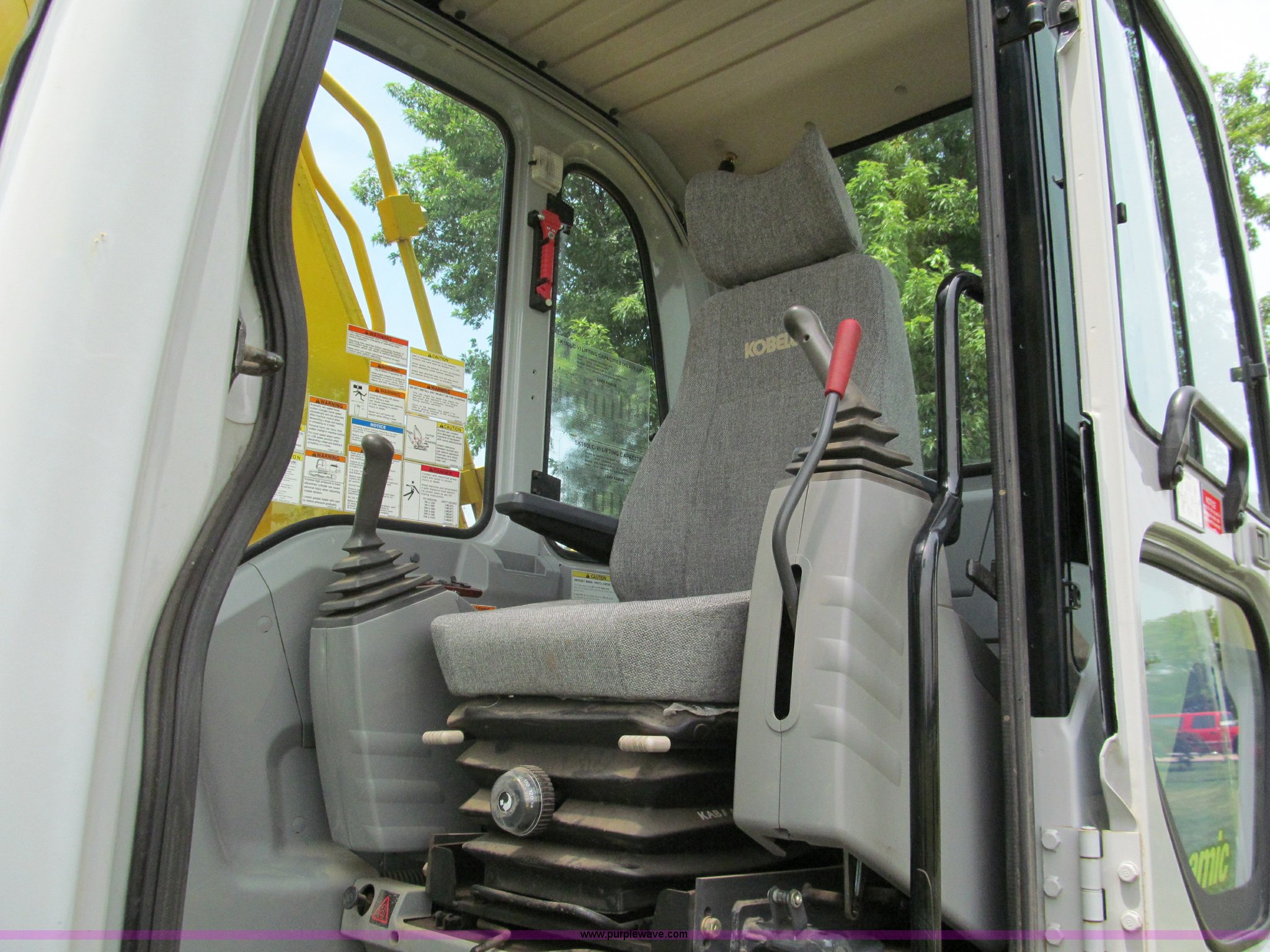 Purple Wave is selling a used Hydraulic Excavator in Missouri. This item is a 2003 Kobelco SK160LC excavator with the following: 847 hours on meter, Mitsubishi four cylinder turbo diesel engine, Enclosed cab, AC and heat, AM/FM, Digital display, Adjustable spring ride seat, 10' stick, Amulet hydraulic thumb, Model UH45, Serial 13049, Werk-Brau 42"W bucket, 1.01 cu. yd. capacity, (6) teeth with side cutters, Serial 92160, 24"W triple grouser pads, Serial YM02-U0370
