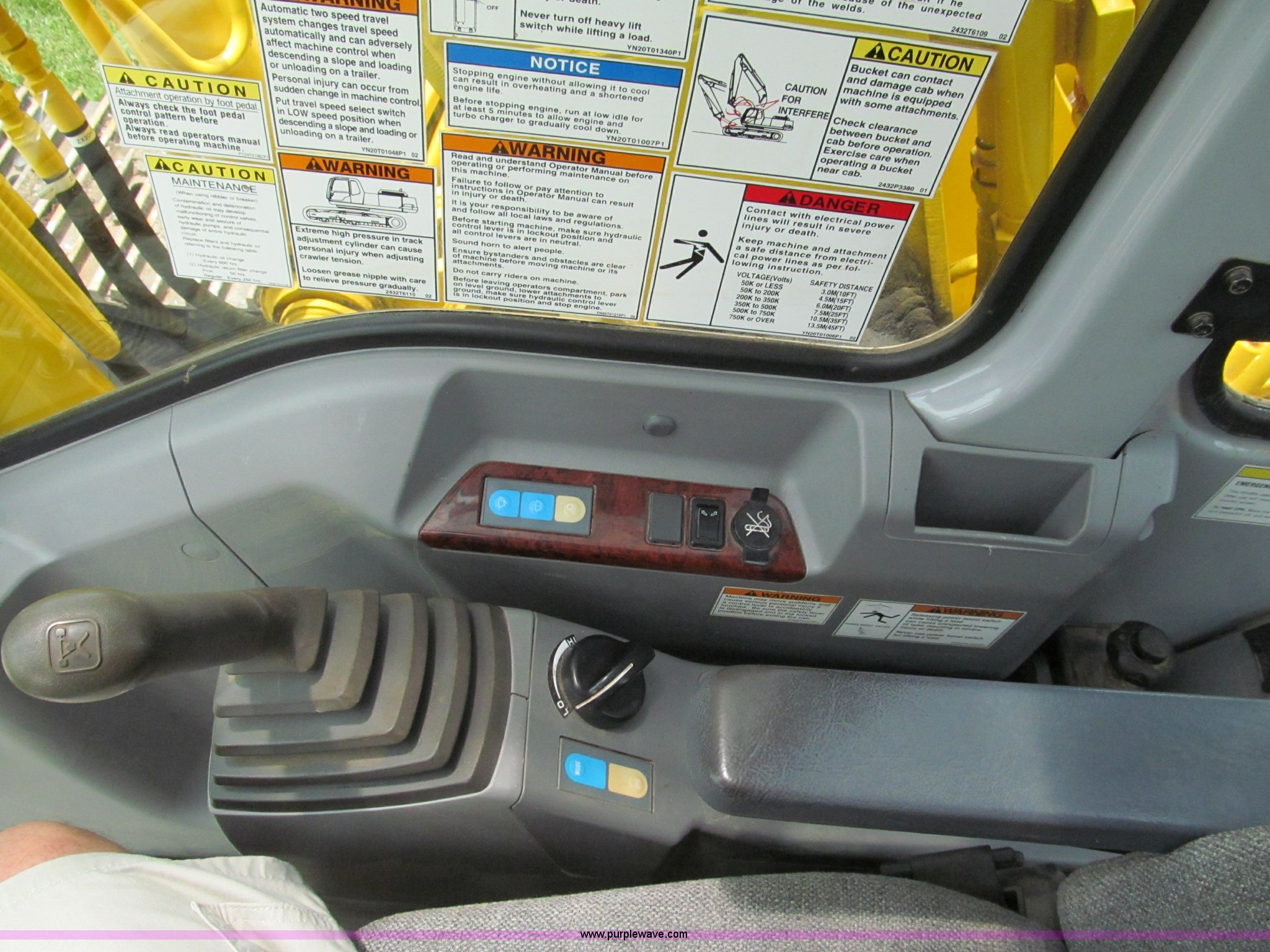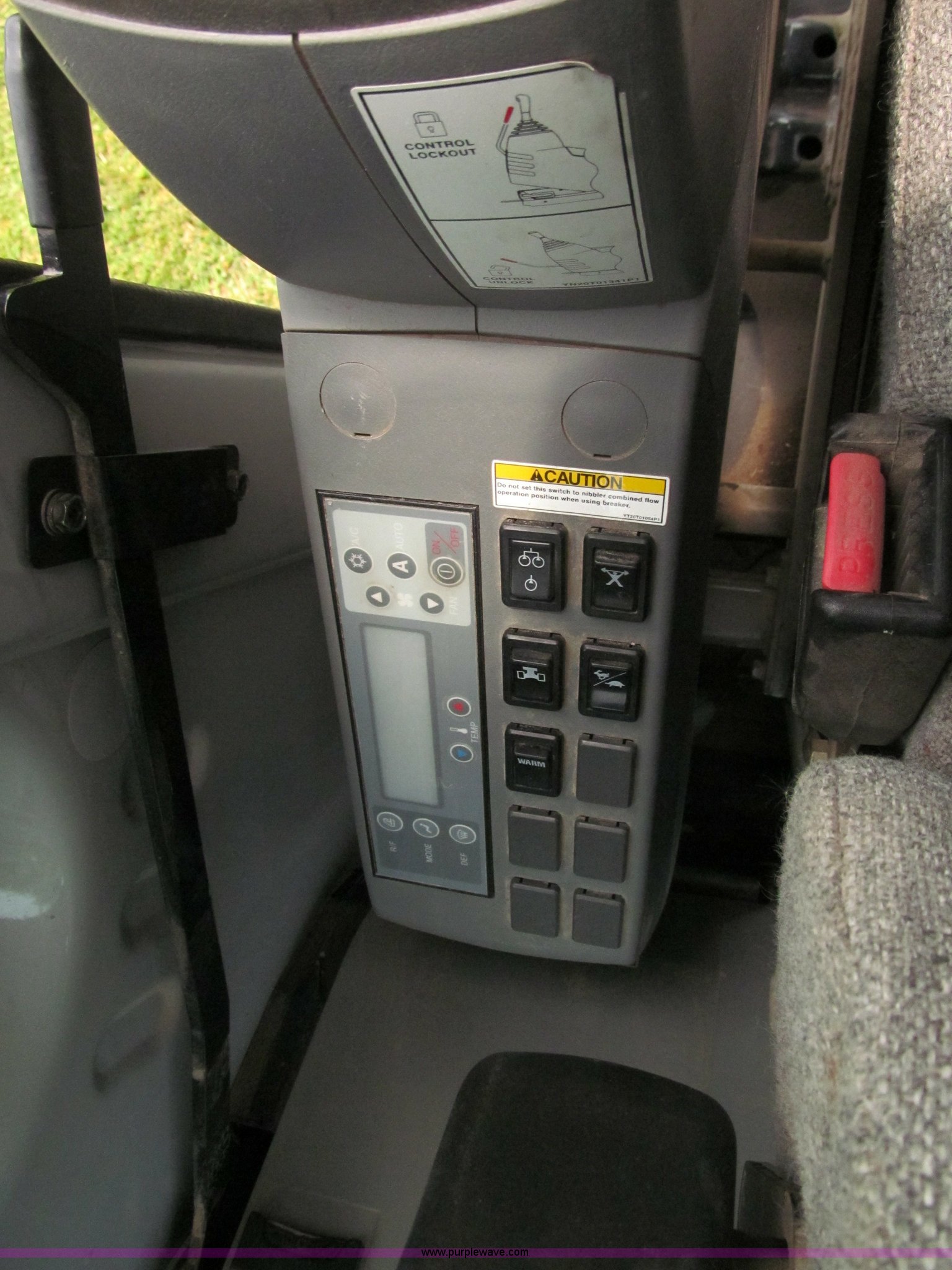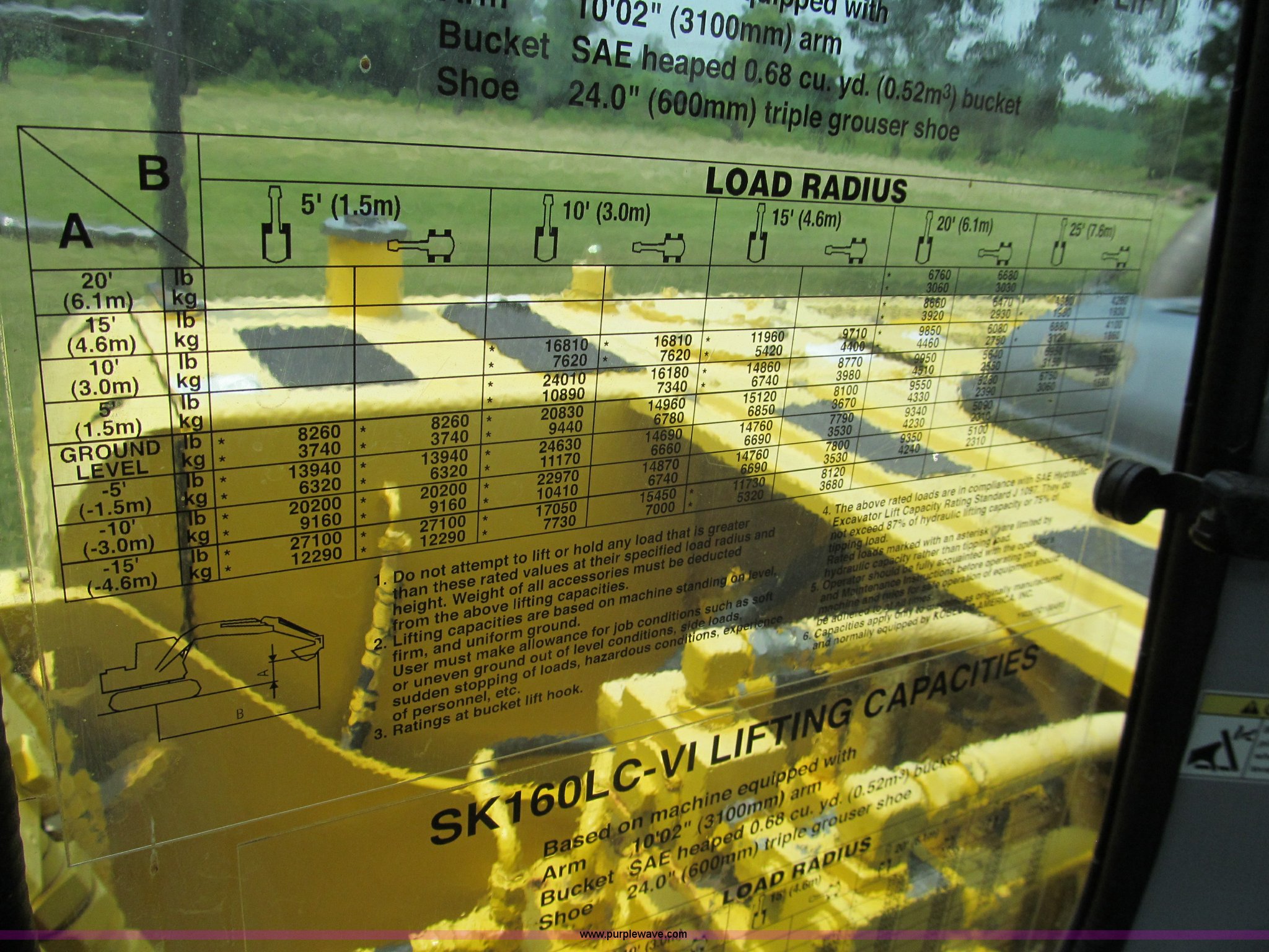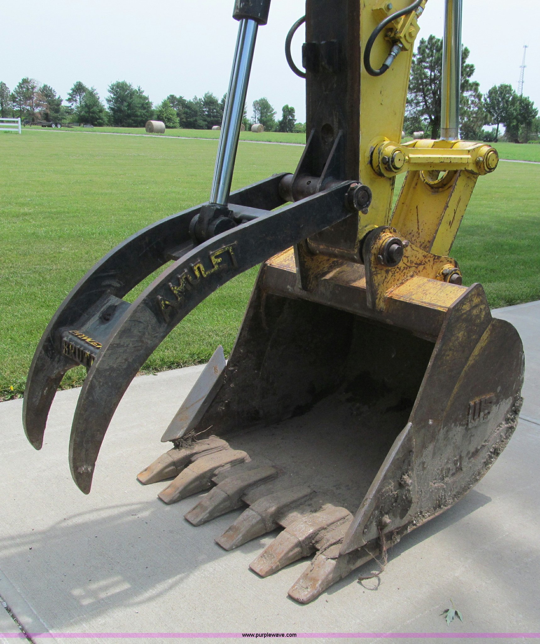 Purple Wave is selling a used Hydraulic Excavator in Missouri. This item is a 2003 Kobelco SK160LC excavator with the following: 847 hours on meter, Mitsubishi four cylinder turbo diesel engine, Enclosed cab, AC and heat, AM/FM, Digital display, Adjustable spring ride seat, 10' stick, Amulet hydraulic thumb, Model UH45, Serial 13049, Werk-Brau 42"W bucket, 1.01 cu. yd. capacity, (6) teeth with side cutters, Serial 92160, 24"W triple grouser pads, Serial YM02-U0370