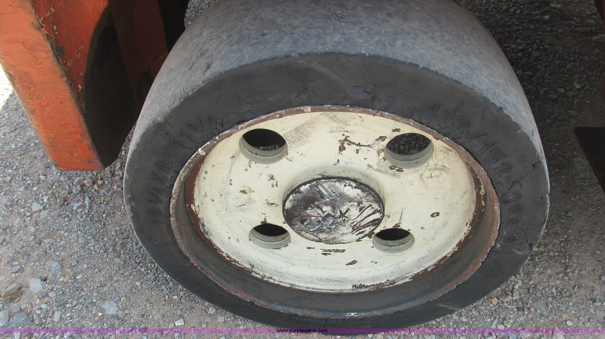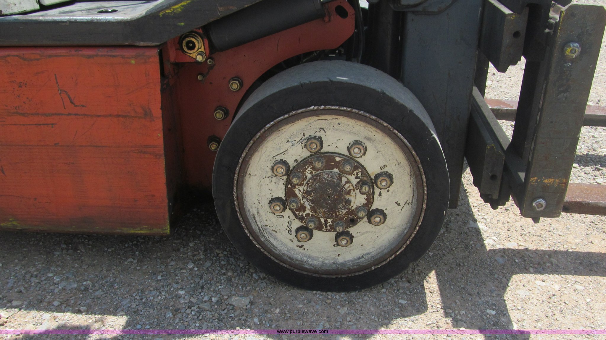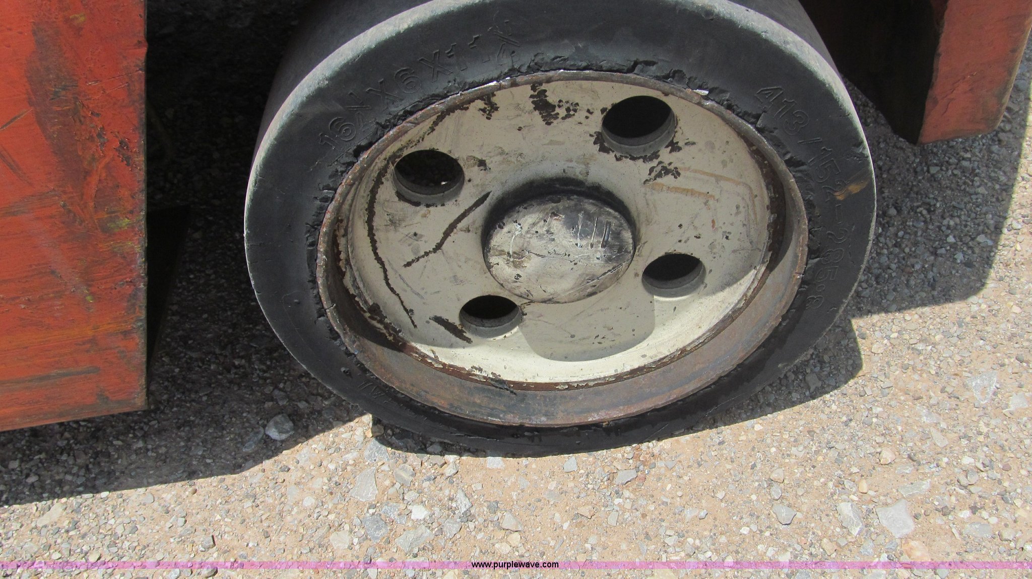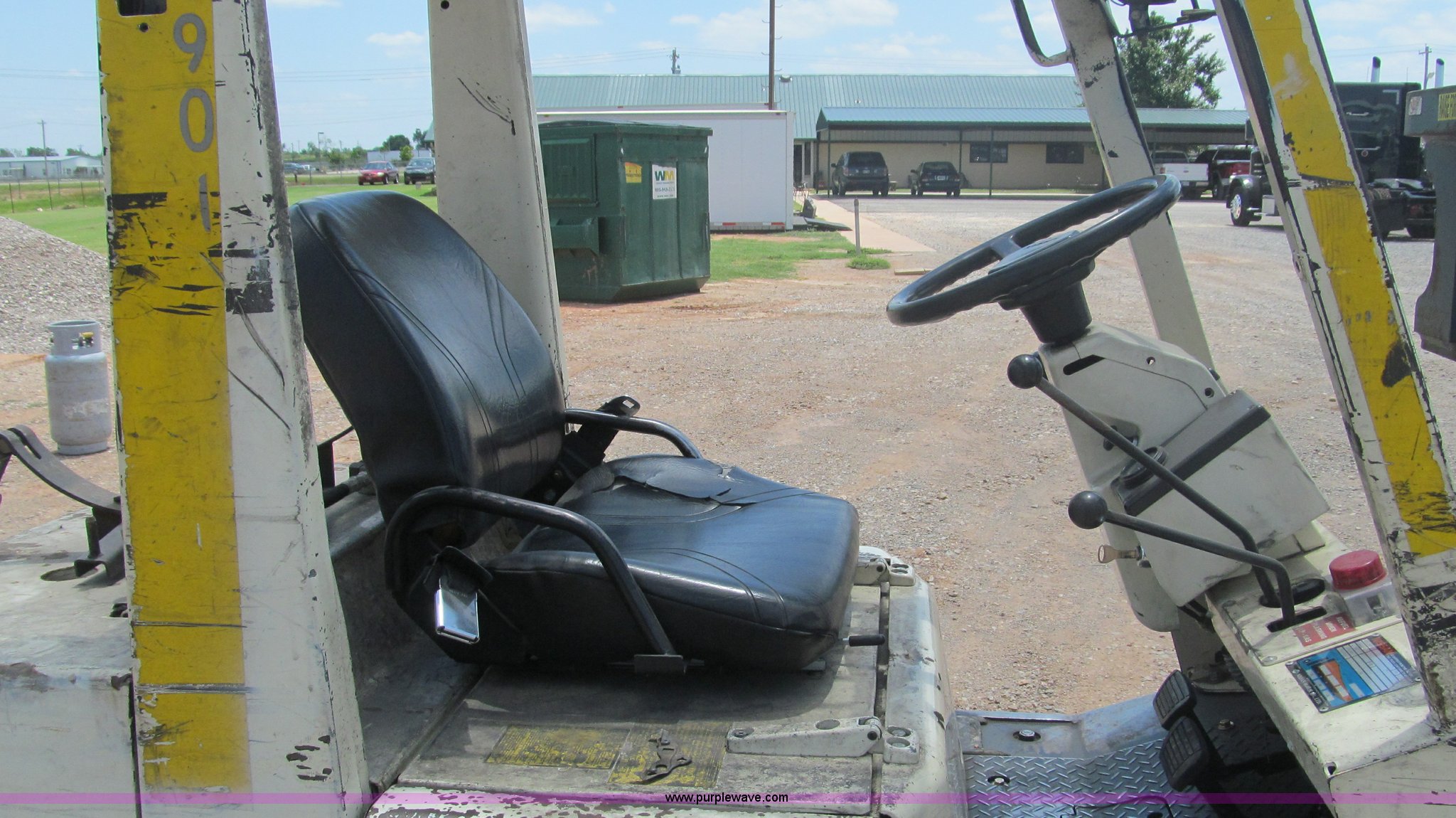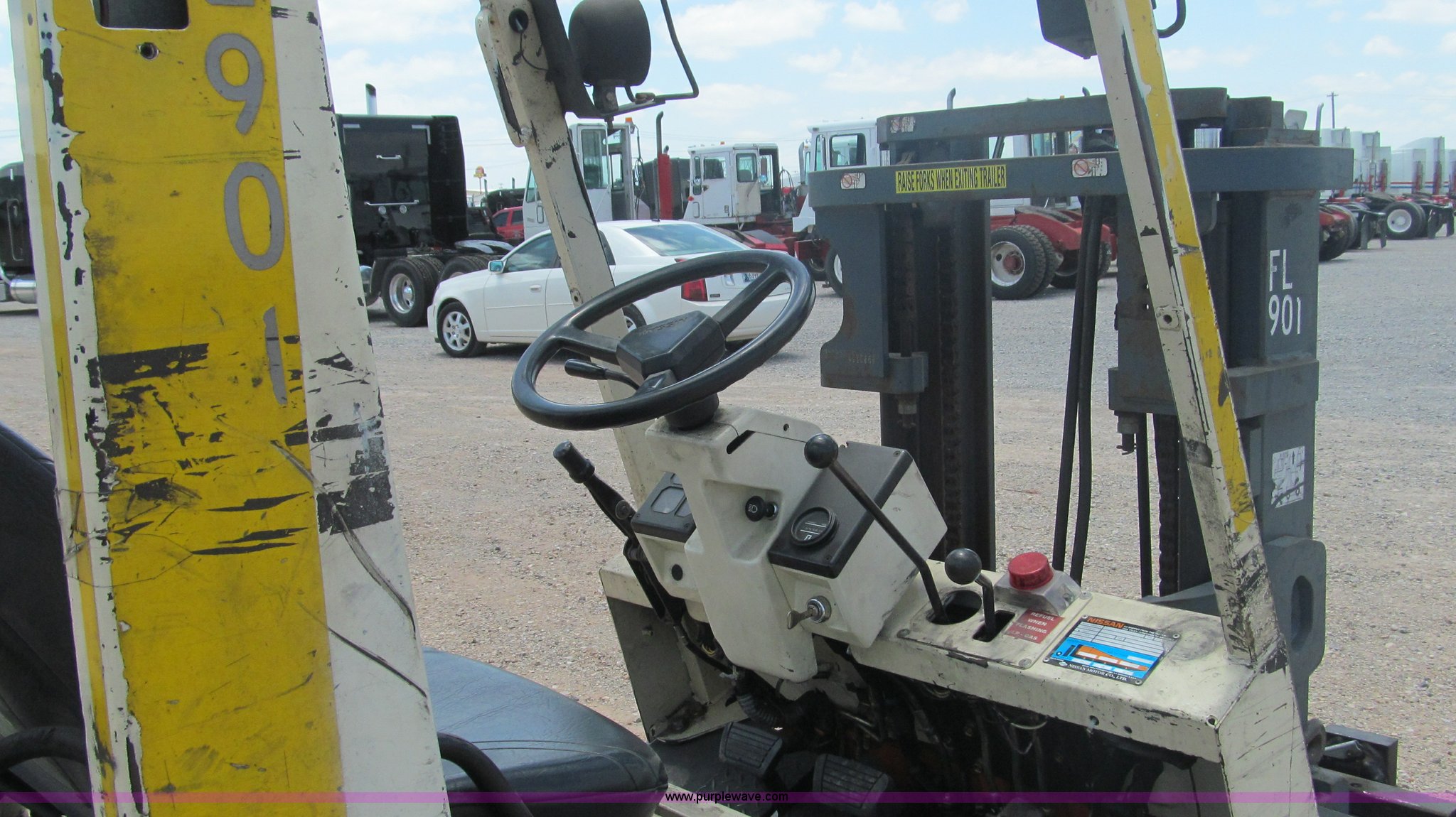 Purple Wave is selling a used Cushion Tire or Pneumatic Forklift in Oklahoma. This item is a 1997 Nissan Enduro 40 forklift with the following: 8,534 hours on meter, Four cylinder propane engine, Shuttle shift transmission, 1F-1R gears, 40"L forks, 82"H maximum lift, Hydraulic mast tilt, Side shift, Work lights, 7,213 lbs. base operating weight, 5.33/178-381 front tires, 413/152-285 rear tires, Cushion tires, Propane tank not included, Serial KCPH02P909325, Unit# FL901