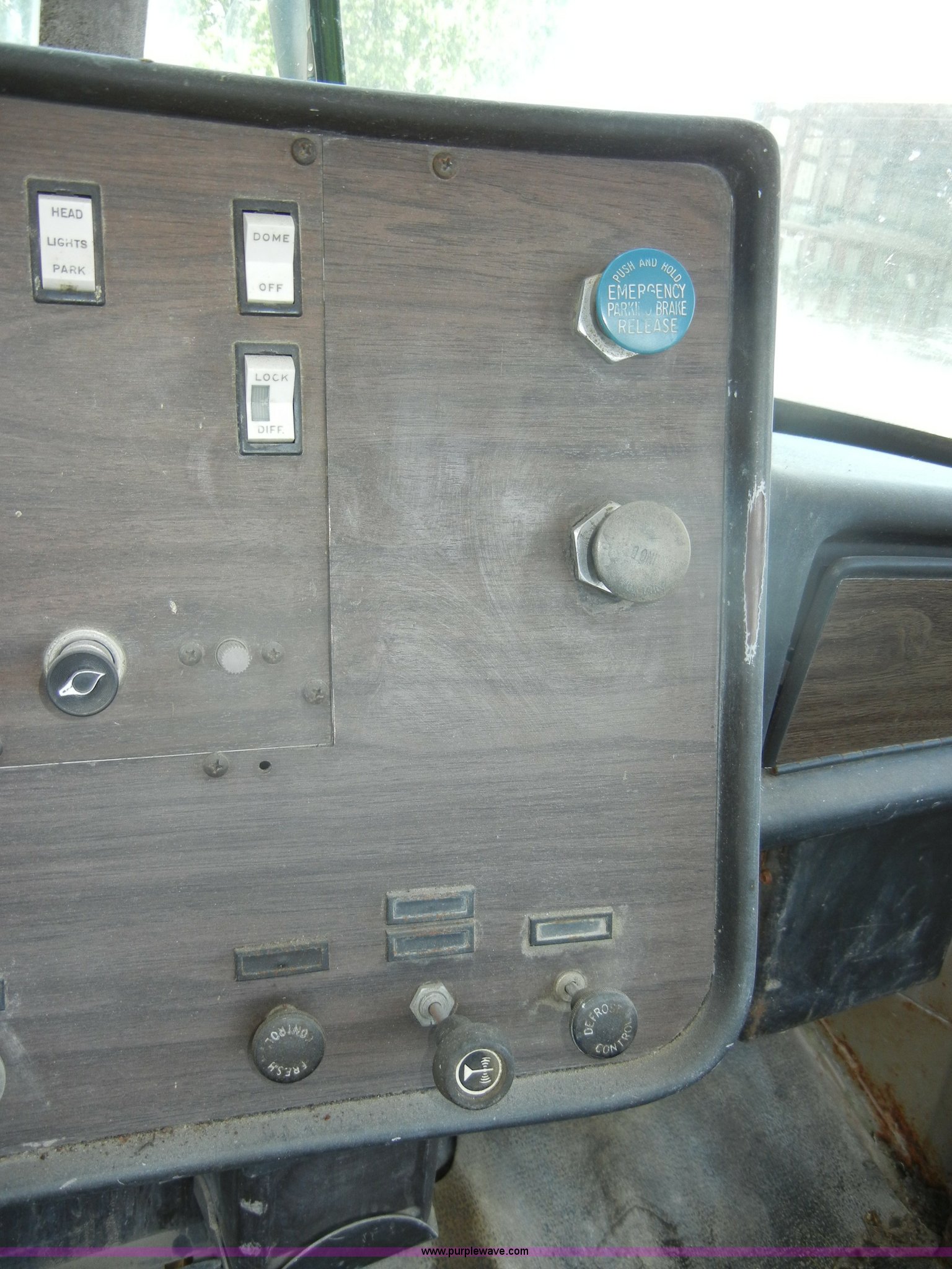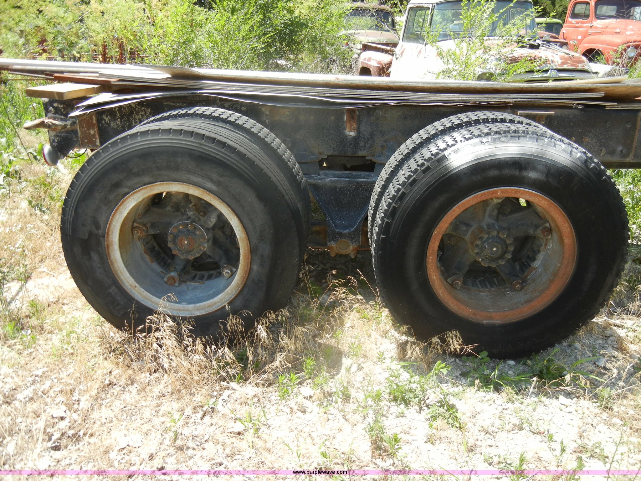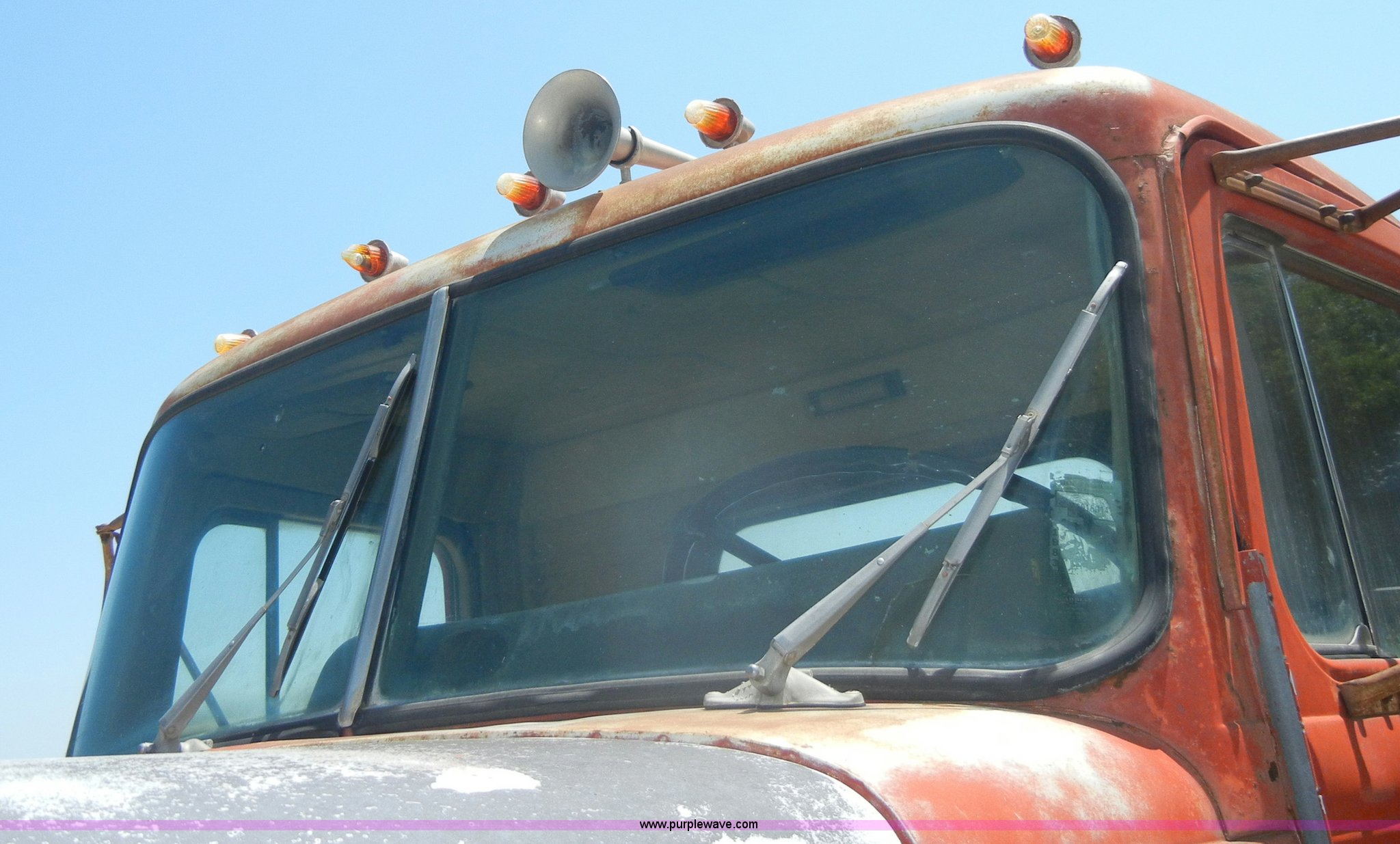 Purple Wave is selling a used Truck Chassis in Kansas. This item is a 1974 Diamond Reo DC10164 semi truck cab and chassis with the following: 81,153 miles on odometer, 790,550 hours on meter, Gas engine, 32 HP, Model 6-200, Five speed manual transmission, Manual windows and locks, Cloth air ride seats, 54 gallon fuel tank, Front and rear tow hooks, Air brakes, Air suspension, 204" bed base, 385/65R22.5 front tires, 9.00R20 rear tires, GVWR 48,320 lbs, Previously used as cement truck, Interior/exterior cosmetic damage, Dents and scratches, Wooden planks not included, Will be removed