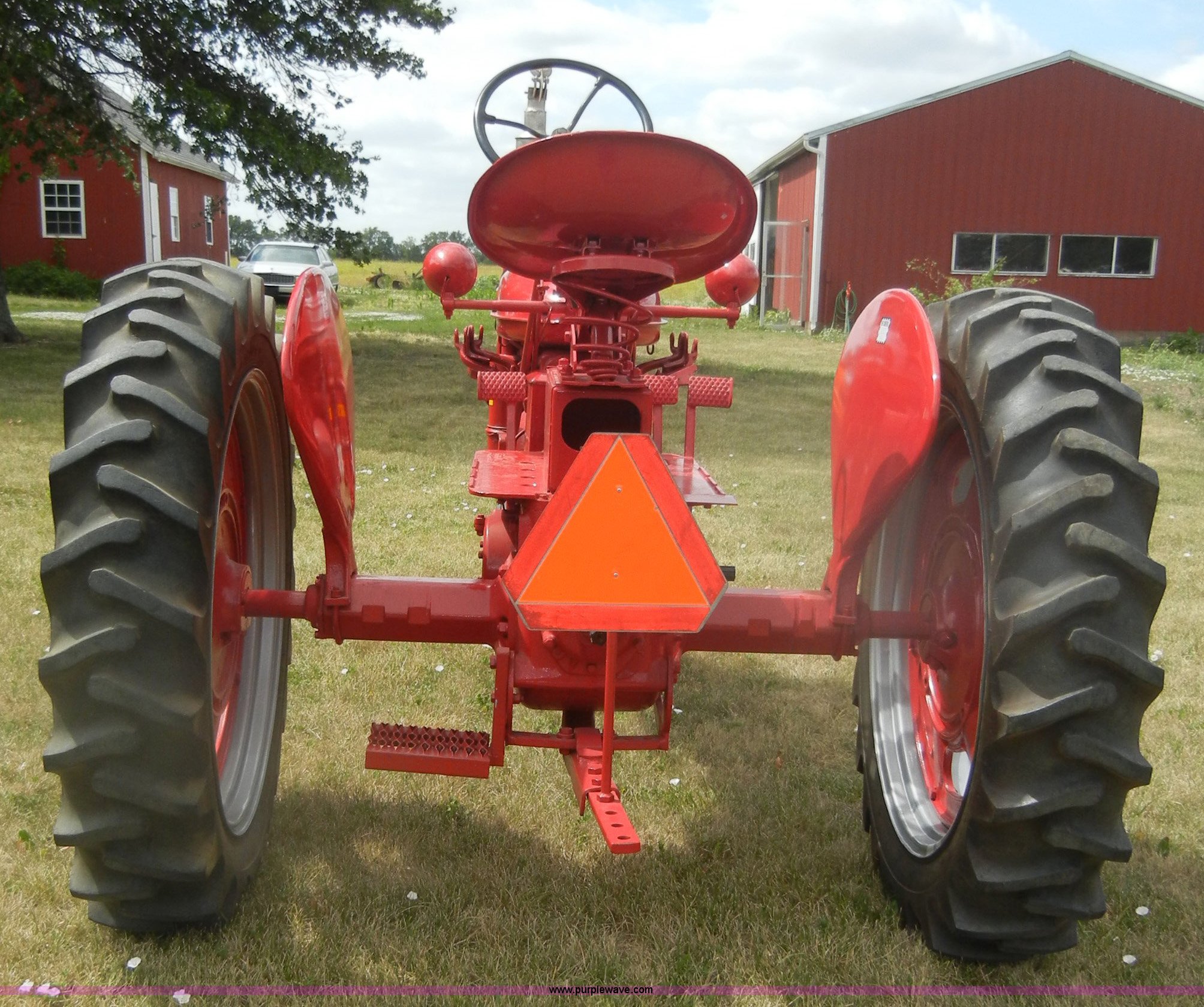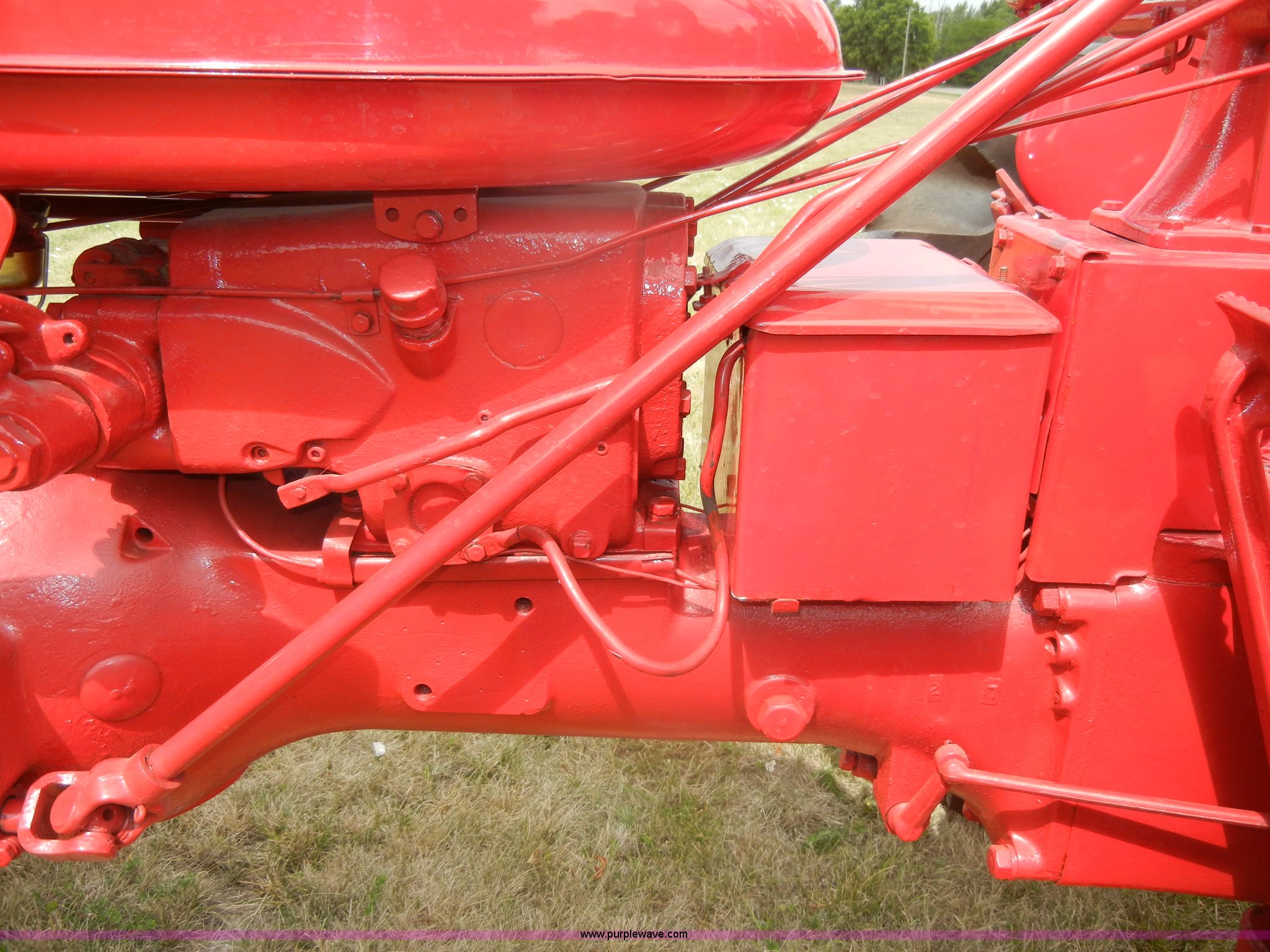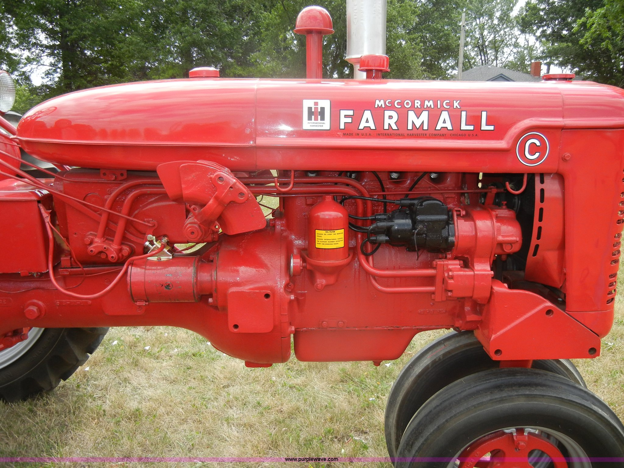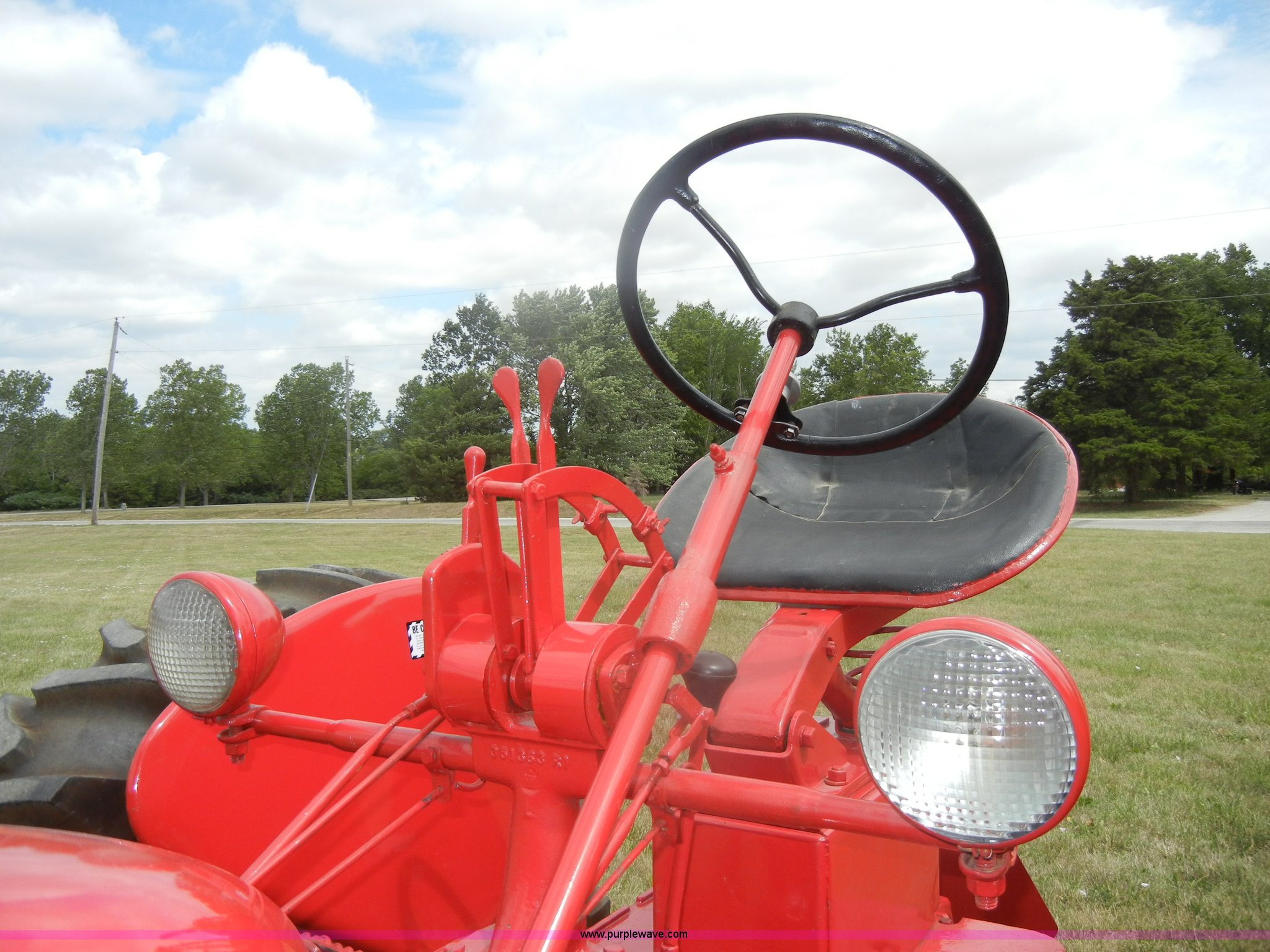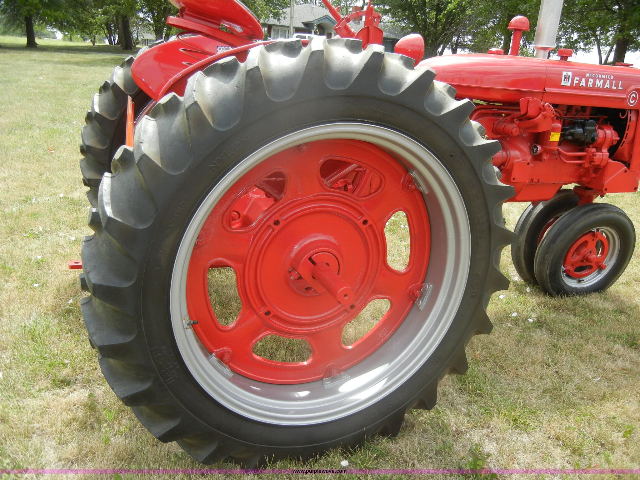 Purple Wave is selling a used Tractor in Kansas. This item is a McCormick Farmall C tractor with the following: Gas engine, Manual transmission, 4F-1R gears, 540 PTO, Draw bar, Steel seat with cushion, 5.00-15 front tires, 11.2-36 rear tires, Fully restored, Rebuilt starter, Head gasket leaks, Bad battery, Serial 39879