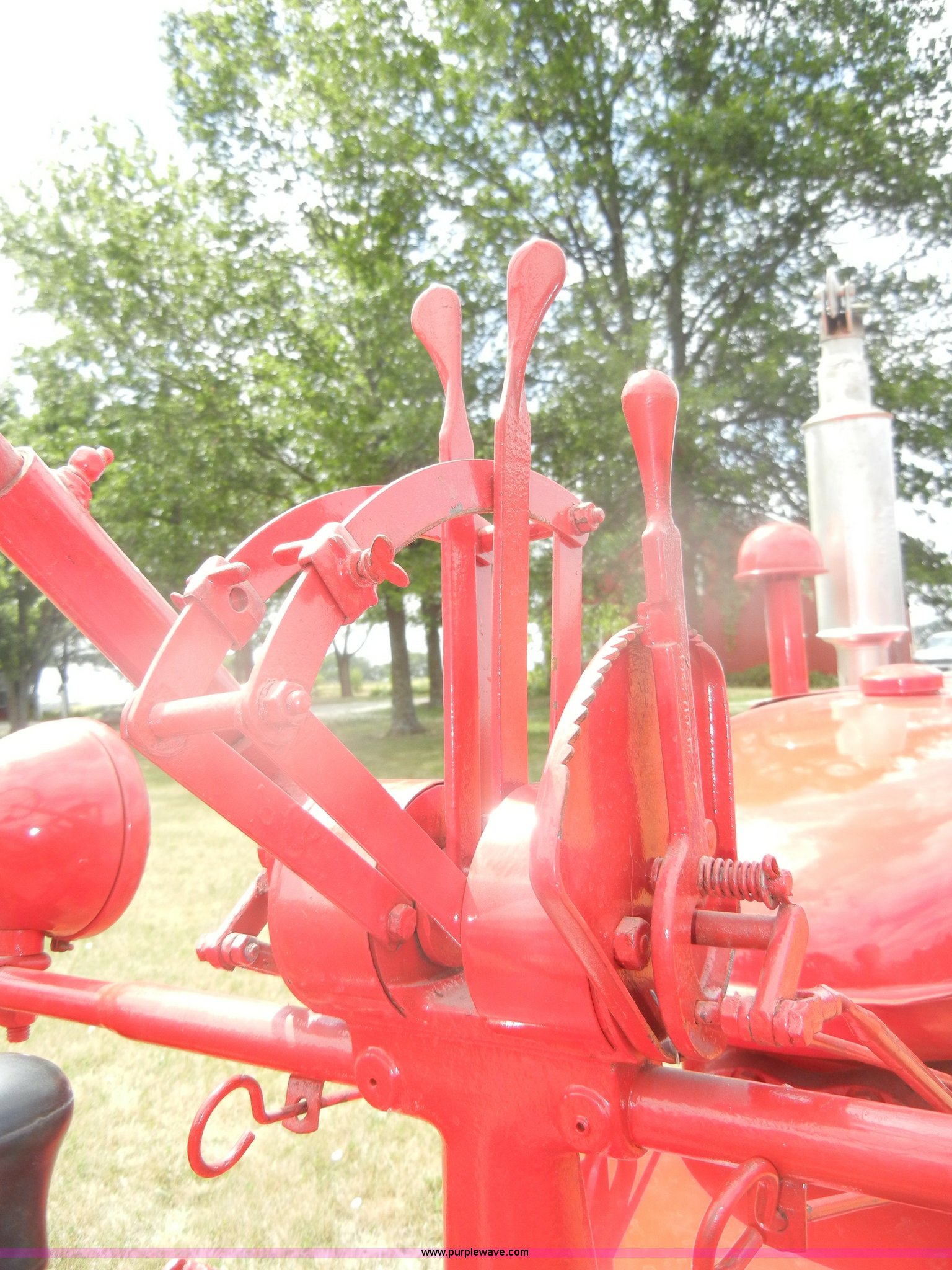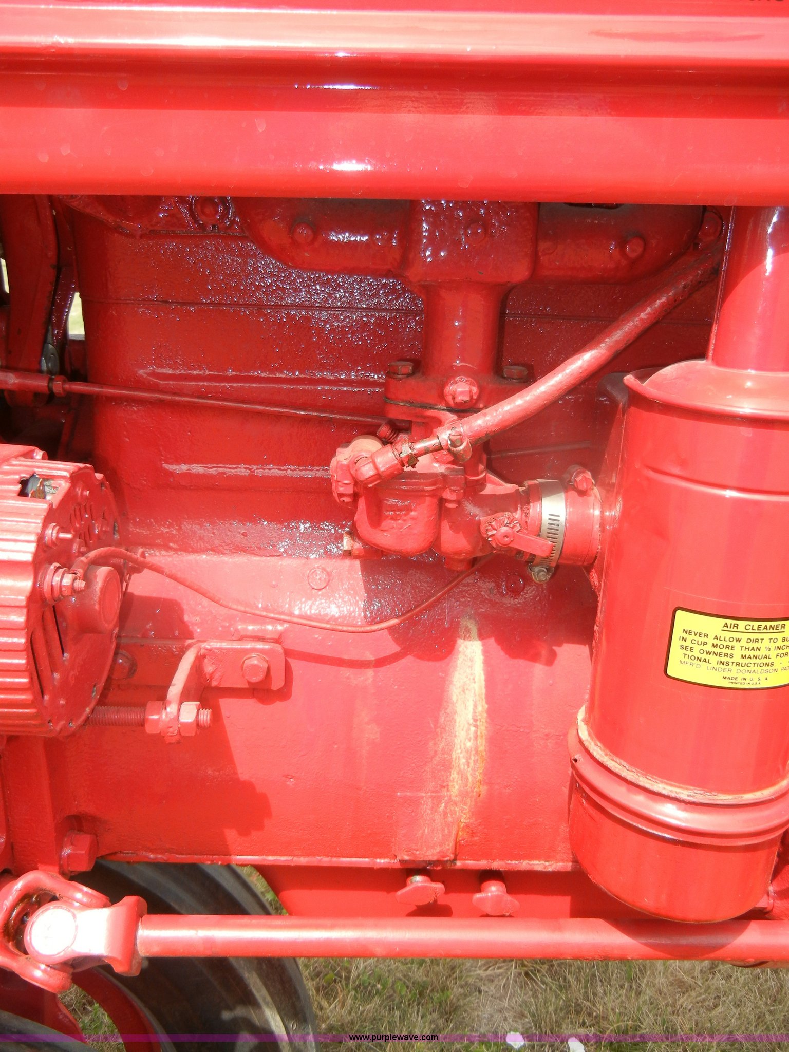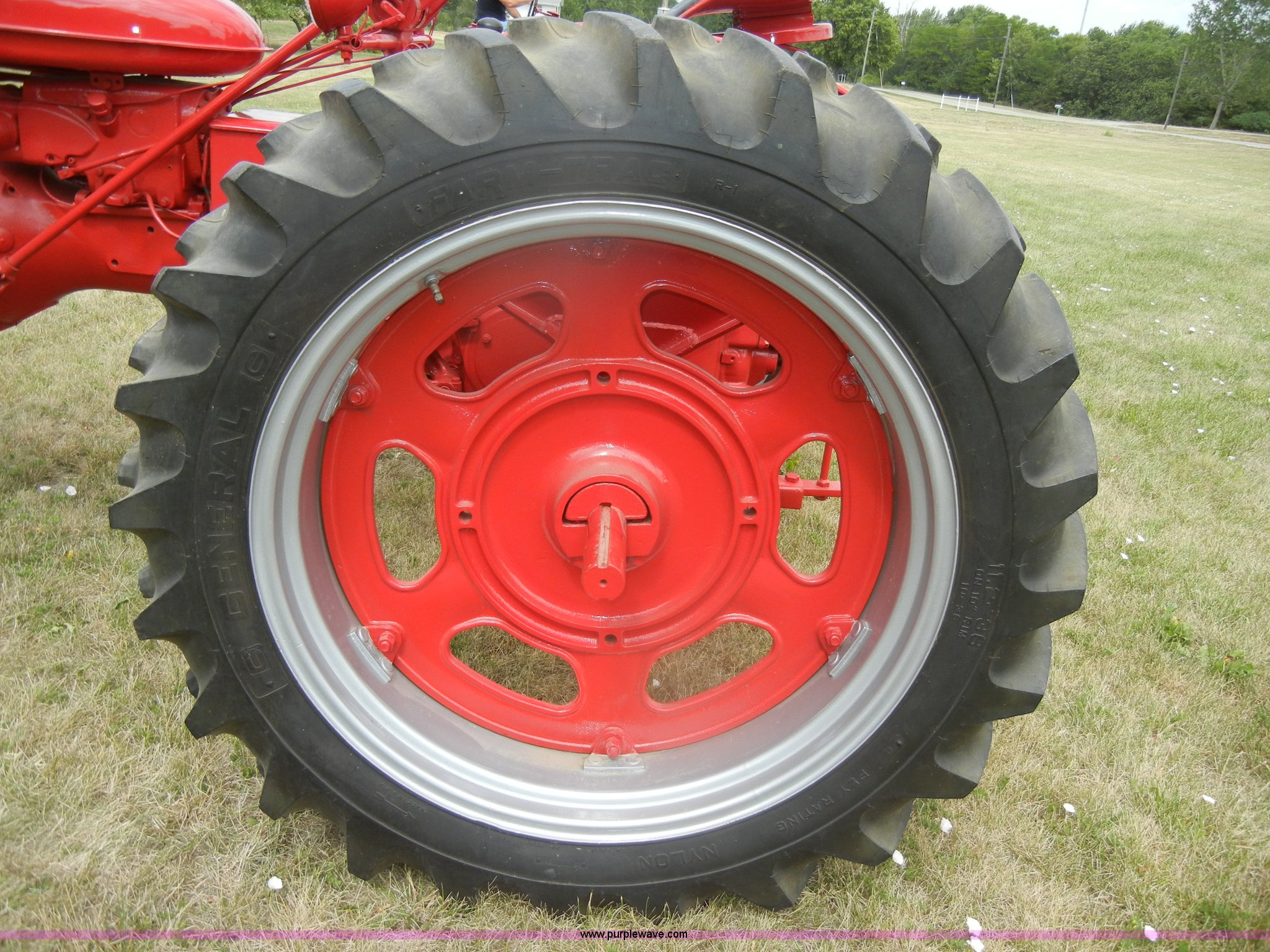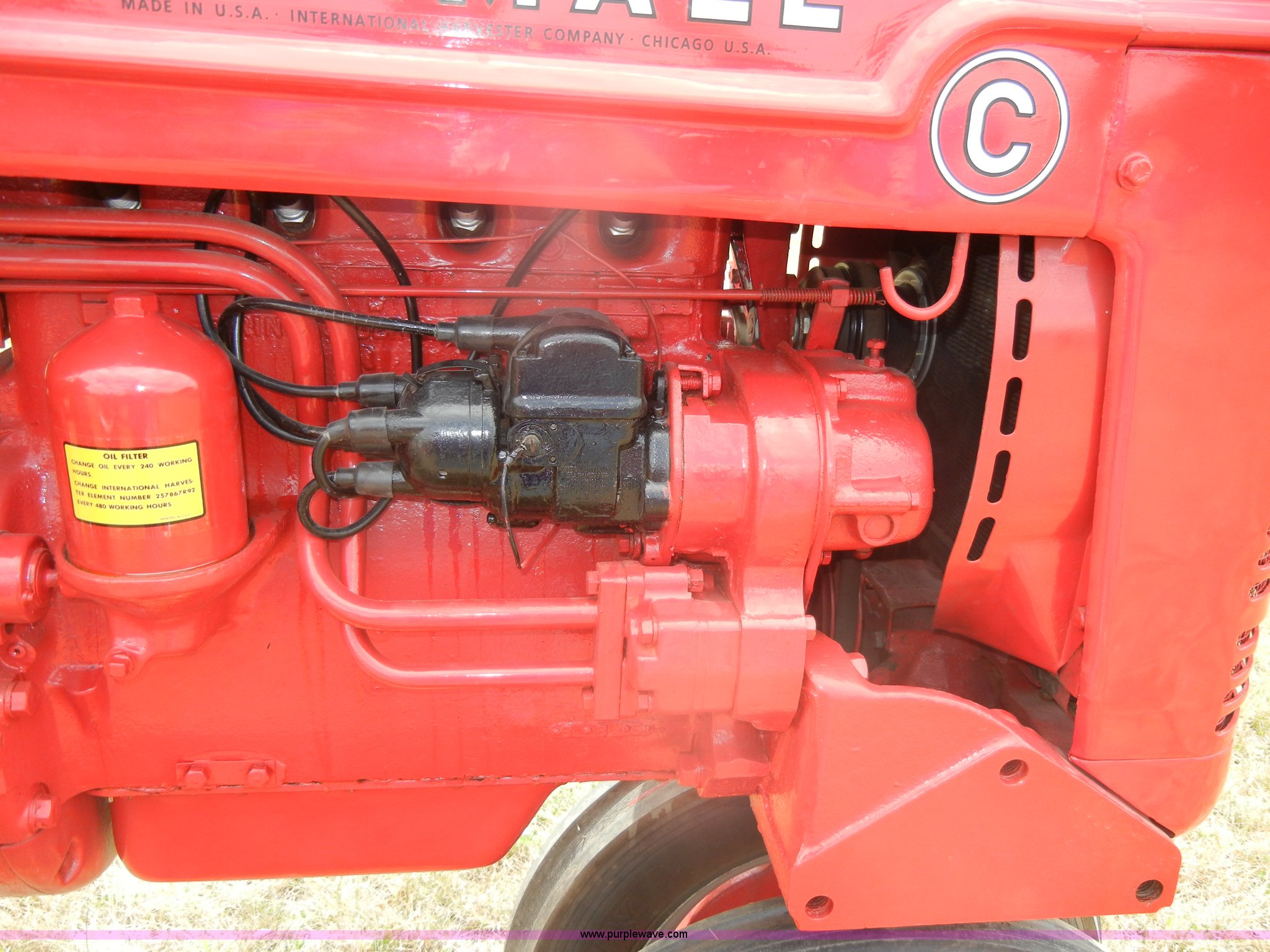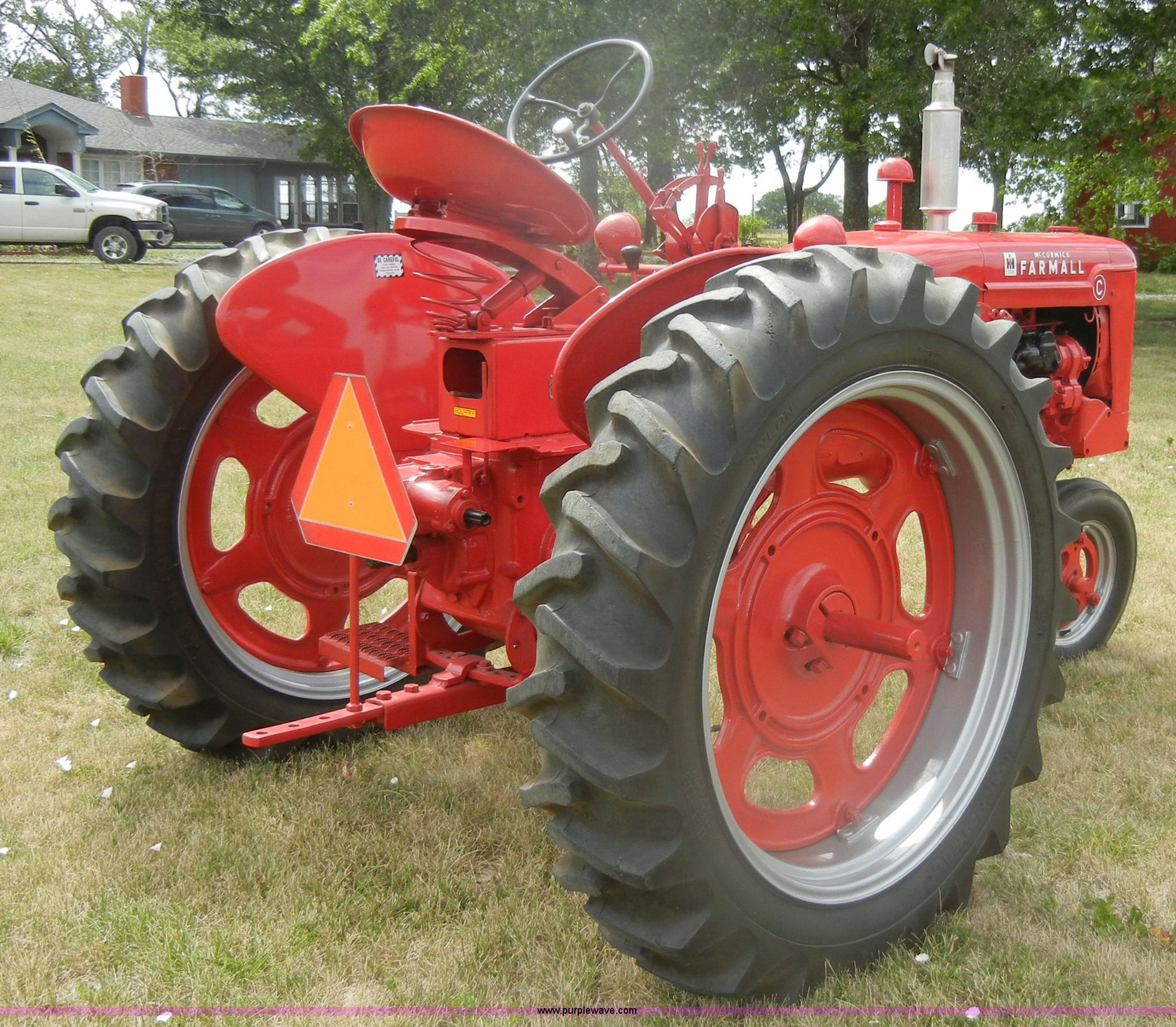 Purple Wave is selling a used Tractor in Kansas. This item is a McCormick Farmall C tractor with the following: Gas engine, Manual transmission, 4F-1R gears, 540 PTO, Draw bar, Steel seat with cushion, 5.00-15 front tires, 11.2-36 rear tires, Fully restored, Rebuilt starter, Head gasket leaks, Bad battery, Serial 39879