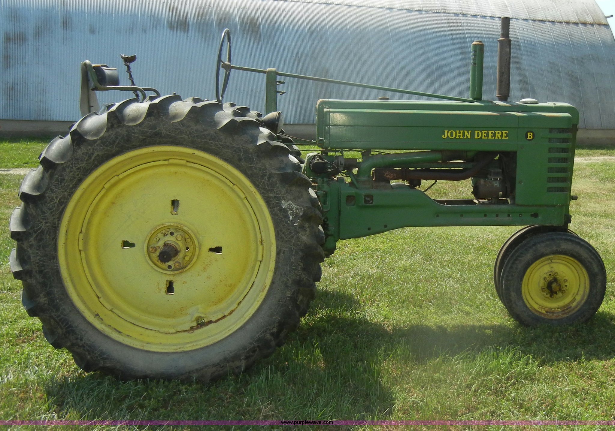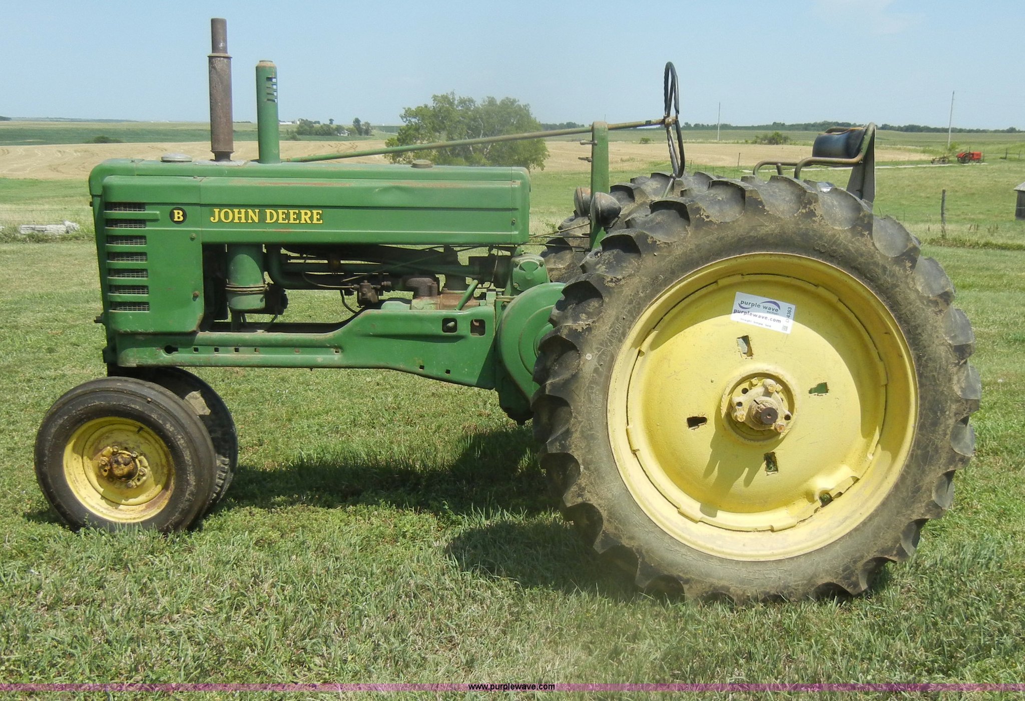 Purple Wave is selling a used Tractor in Kansas. This item is a 1950 John Deere B tractor with the following: Gas engine, Manual transmission, 6F-1R gears, Rear hydraulic plugs, 540 PTO, Draw bar, 5.50-16 front tires, 12.4-38 rear tires, Serial B267772
