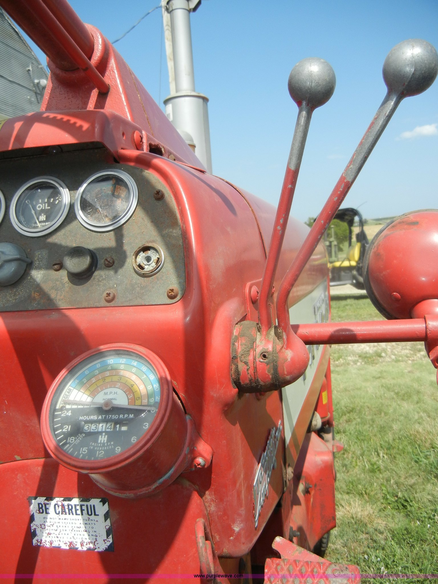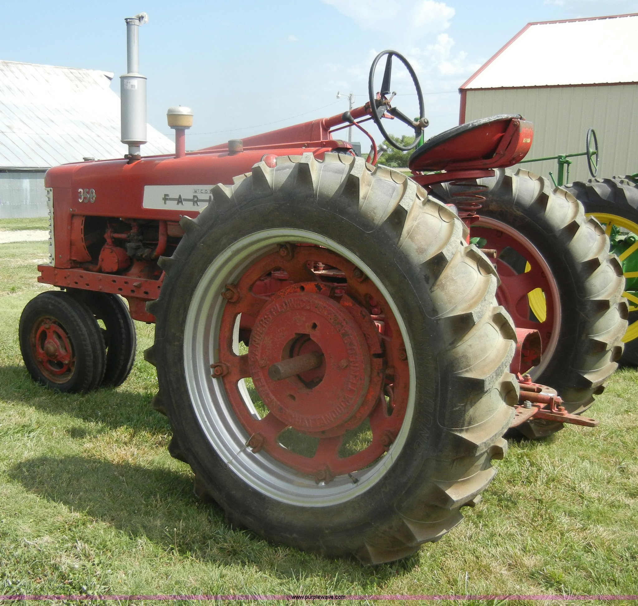 Purple Wave is selling a used Tractor in Kansas. This item is a 1957 McCormick Farmall 350 tractor with the following: 3,314 hours on meter, Gas engine, Manual transmission, 5F-1R gears, Torque amplifier, 540 PTO, Draw bar, Live hydraulics, Rear hydraulics, Rear wheel weights, 6.00-16 front tires, 13.6-38 rear tires, Recently replaced head, valves, and rings, Serial 9246