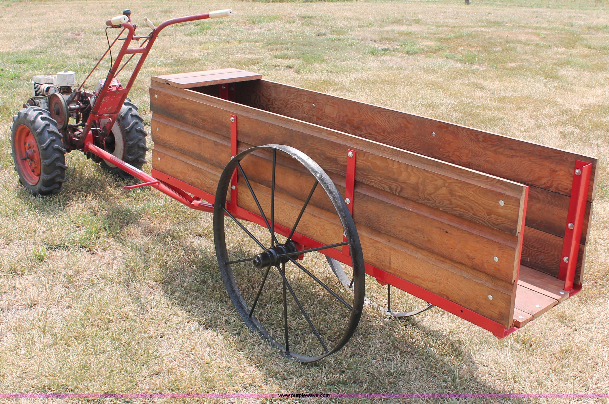 Purple Wave is selling a used Lawn and Garden in Kansas. This item is a Montgomery Ward 65X-5993 Hoe-Trac garden tractor with the following: Briggs & Stratton 4 HP gas engine, 70"L x 16"W x 18"H wagon with seat, Pin hitch, Plow, disk, cultivator, and more antique attachments, 5-12 front tires, Steel rear wheels, Serial 51M990066A