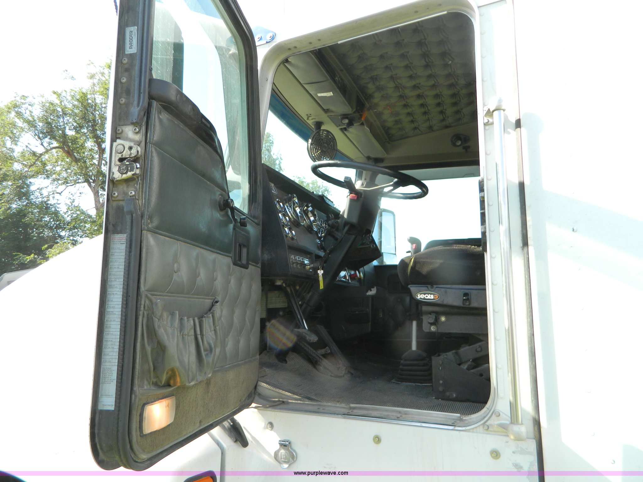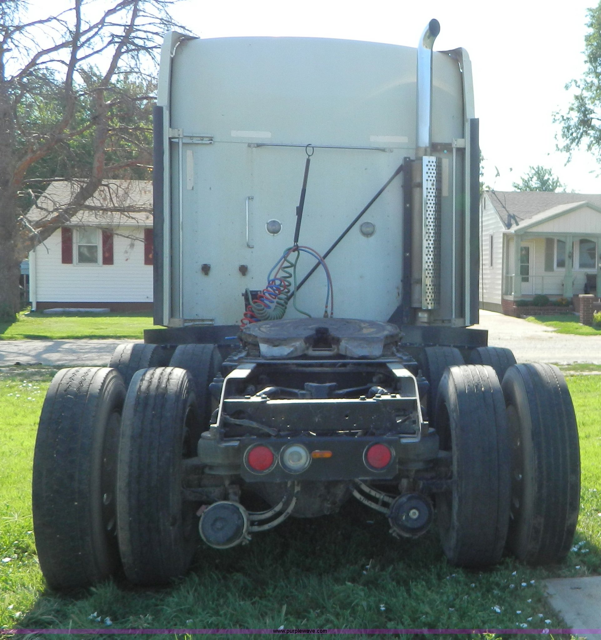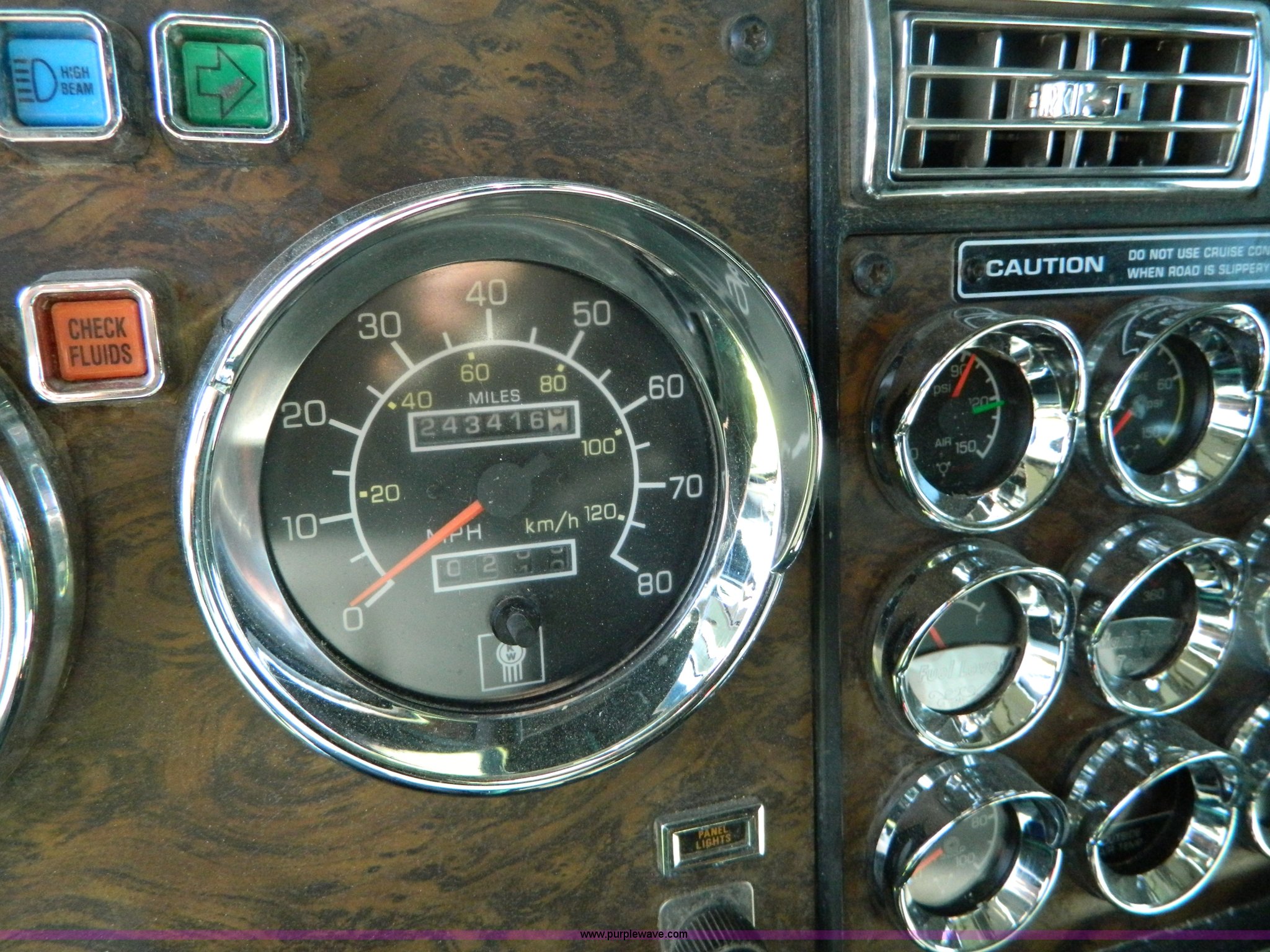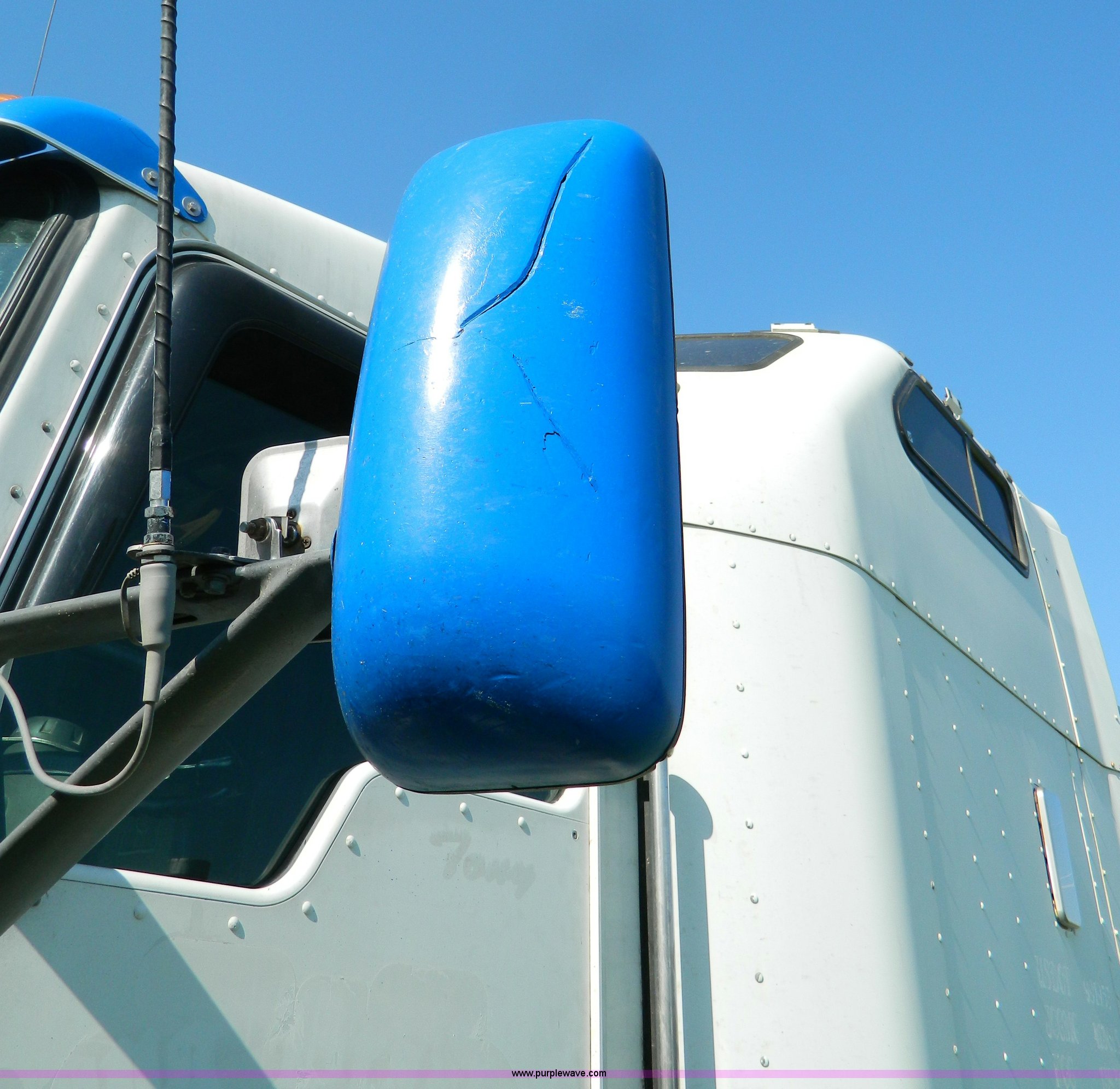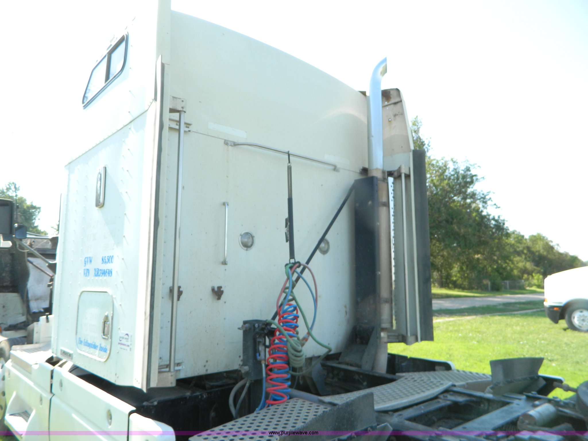 Purple Wave is selling a used Truck Tractor in Kansas. This item is a 1999 Kenworth T600 AeroCab semi truck with the following: 243,416 miles on odometer, Not actual mileage, Cummins N14 14.0L L6 diesel engine, Eaton Fuller 13 speed manual transmission, Twin screw, AC and heat, Tilt, Cruise, AM/FM/CD, Air ride seats, Power windows and mirrors, Air ride cab, 60" sleeper, Visor, Block heater, Dual 120 gallon fuel tanks, Aluminum deck plate, Dump valves, Air suspension, Air brakes, Jake brake, Engine brake, 3.70 gear ratio, 123" wheelbase, (6) aluminum wheels, (4) steel wheels, 285/75R24.5 tires, Chassis No. 794648, Interior/exterior cosmetic damage, Cracked mirror