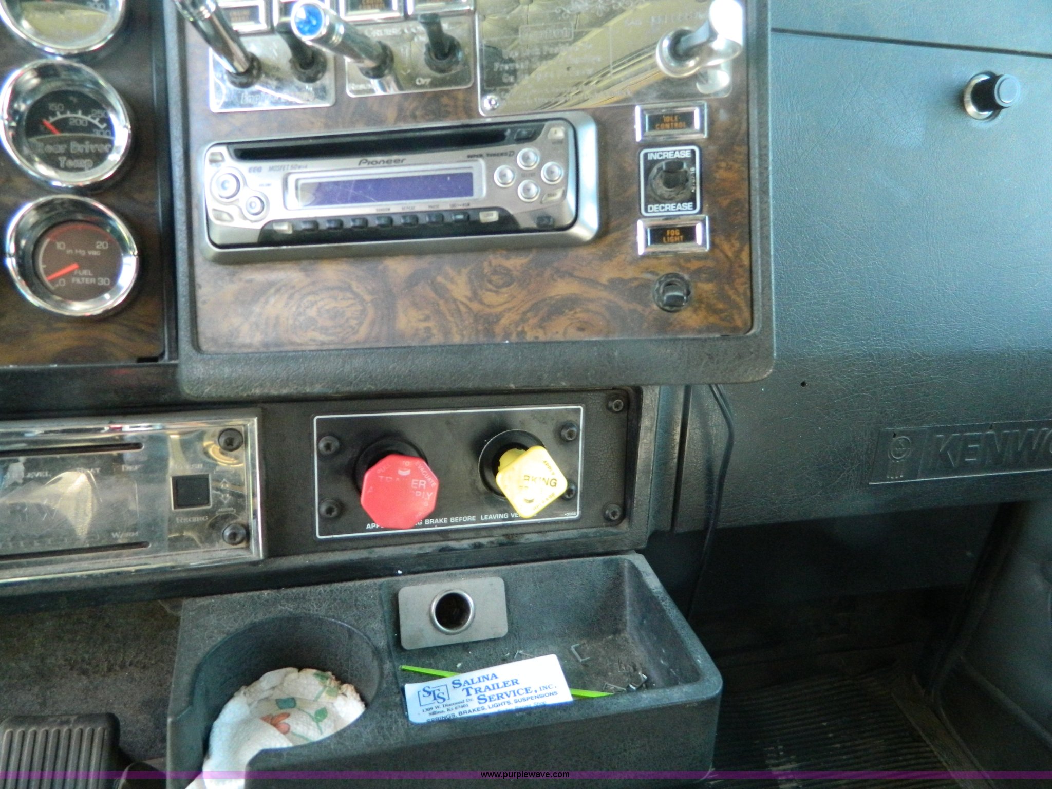 1999 Kenworth T600 AeroCab semi truck. 243,416 miles on odometer Not actual mileage, Cummins N14 14.0L L6 diesel engine, Eaton Fuller 13 speed manual transmission, Twin screw, AC and heat, Tilt, Cruise, AM/FM/CD, Air ride seats, Power windows and mirrors, Air ride cab, 60" sleeper, Visor, Block heater, Dual 120 gallon fuel tanks, Aluminum deck plate, Dump valves, Air suspension, Air brakes, Jake brake, Engine brake, 3.70 gear ratio, 123" wheelbase, (6) aluminum wheels, (4) steel wheels, 285/75R24.5 tires, Chassis No. 794648, Interior/exterior cosmetic damage, Cracked mirror. Vehicle has an E-Title in the State of Kansas. Buyer will receive paper title within 30 days from verification of funds. 1XKAD69X0XR794648. Shipping quotes available. 160 N Washington Rd. Assaria, KS 67416