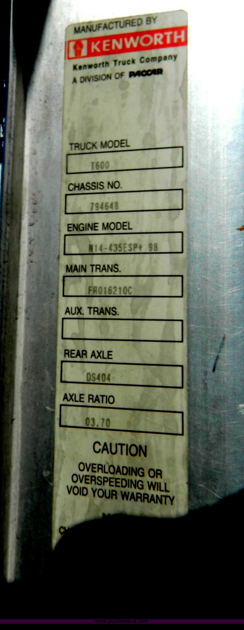 Take a look at this used 1999 Kenworth T600 AeroCab semi truck being sold on July 18th, 2012 in the SOLD! July 18 Truck and Trailer Auction made by Kenworth. Take a look at all of the item information below or take a look at similar auctions for Trucks.