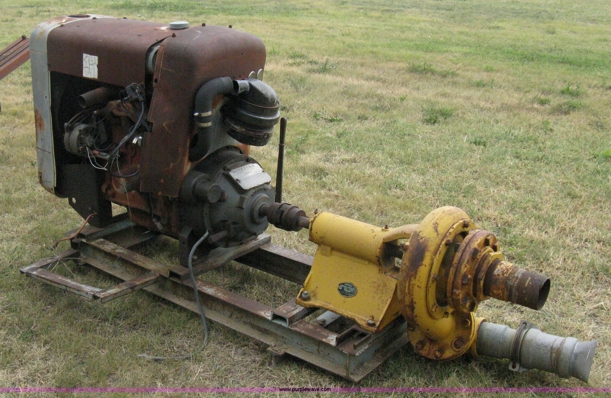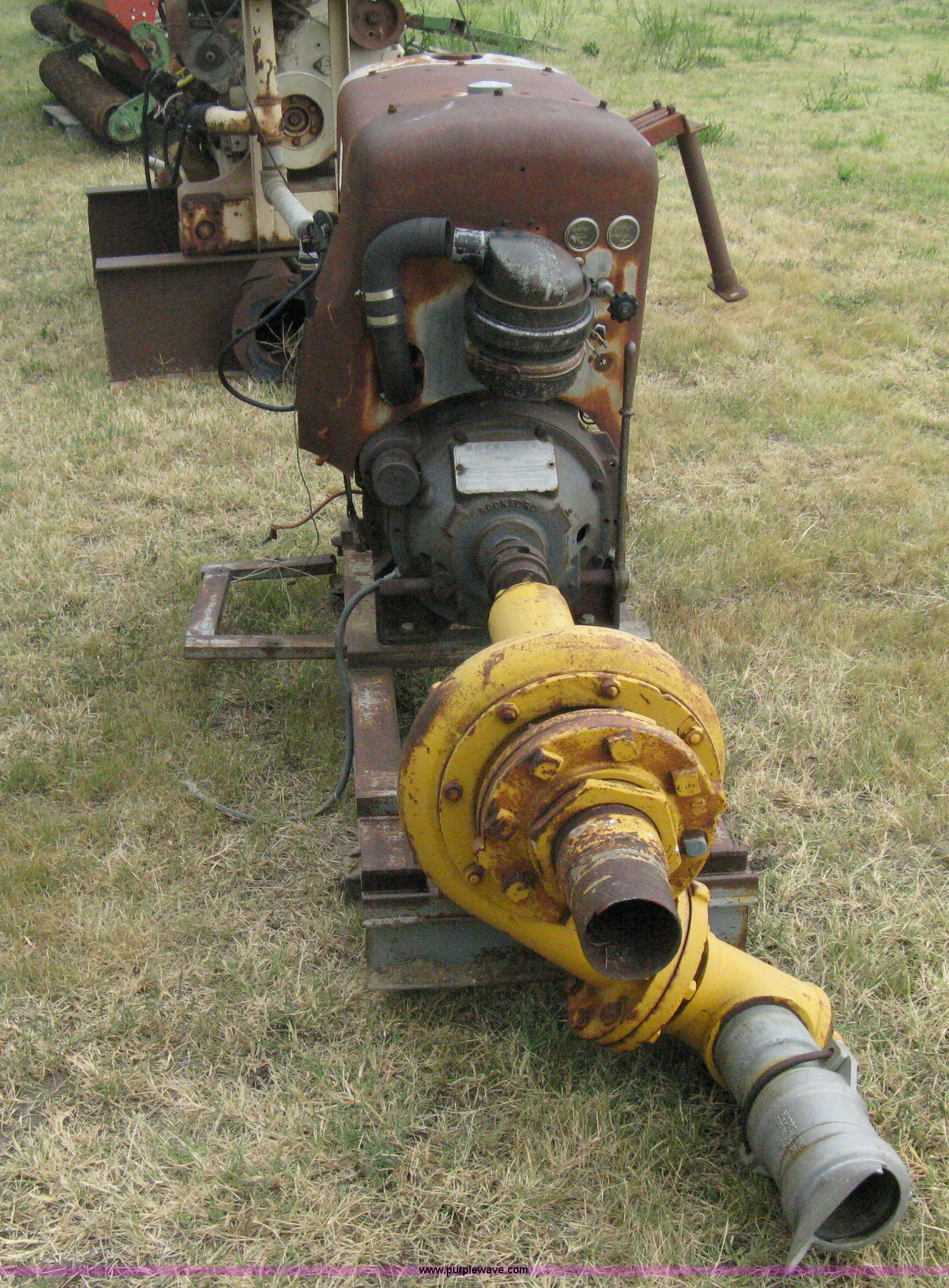 Ford four cylinder diesel irrigation engine. Rockford PTO with hand clutch Model PTA-5887, C7JZ-7275-B, Serial 500554, Berkeley 4ERE pump 4" inlet/outlet, Skid mounted, Operating condition unknown. Shipping quotes available. Cranmer Grass Farm. 6020 N 135th St W. Maize, KS 67101