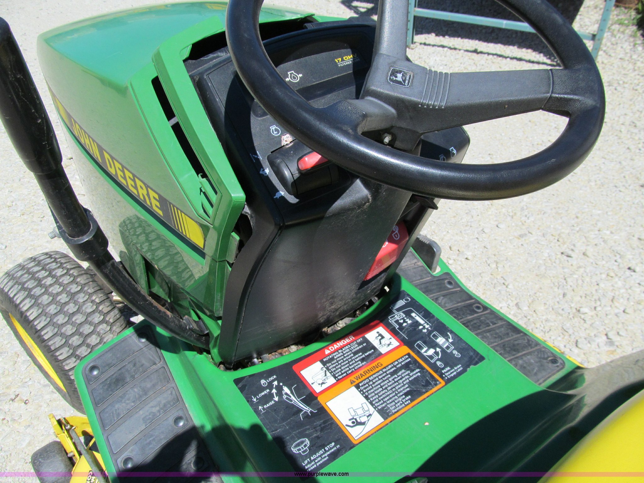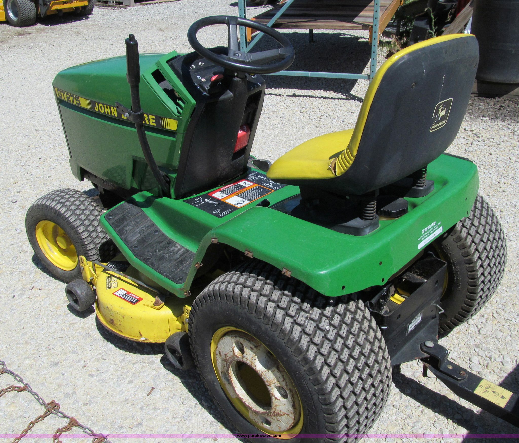 John Deere GT275 lawn mower has sold in Mount Ayr, Iowa for $522.50. Item A8357 sold on July 25th, 2012.