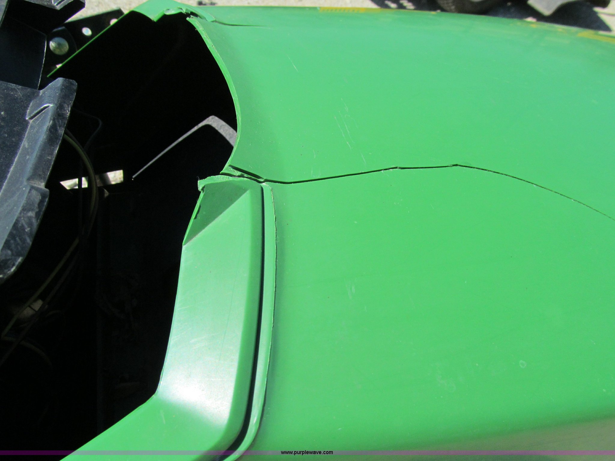 - Front hood cracked with pieces missing