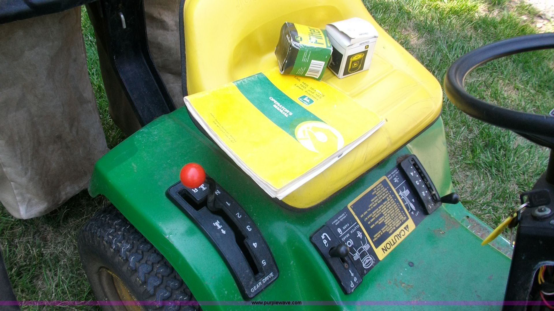 Purple Wave is selling a used Lawn and Garden in Kansas. This item is a John Deere 160 lawn mower with the following: 38" cut, Kawasaki FB460V engine, Five speed transmission, Bagger system, Owners manual, Extra blades, (2) extra oil filters, John Deere 42" blade with hardware, Tire chains, Operational, last used June 2012