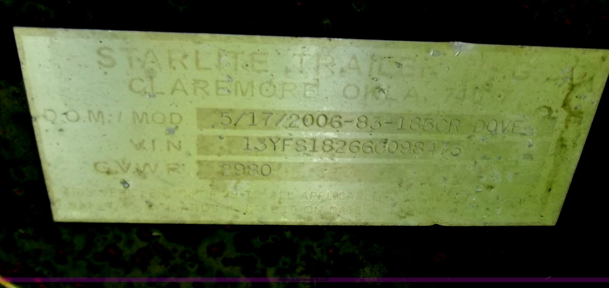 2006 Star 18' equipment trailer. 18'L x 83"W, 16' flat deck, 2' dove tail, (2) 4' ramps, Steel fenders, Stake pockets, Front storage box, Electric brakes on both axles, (2) 5,000 lb axles, Tongue jack, 2" ball, 235/80/16 tires. 13YFS18266C098473. Shipping quotes available. 1361 E 454th Rd. Bolivar, MO 65613