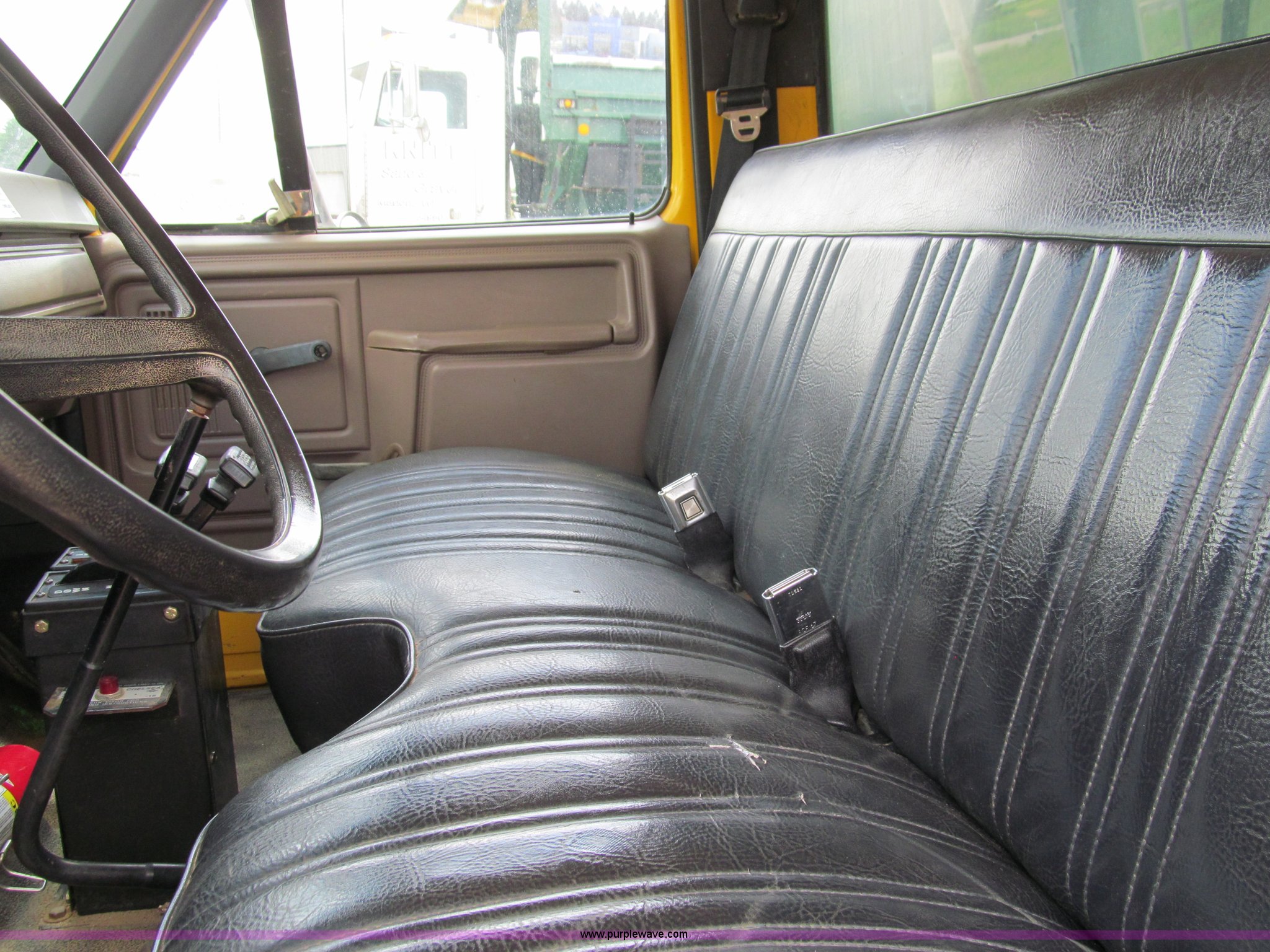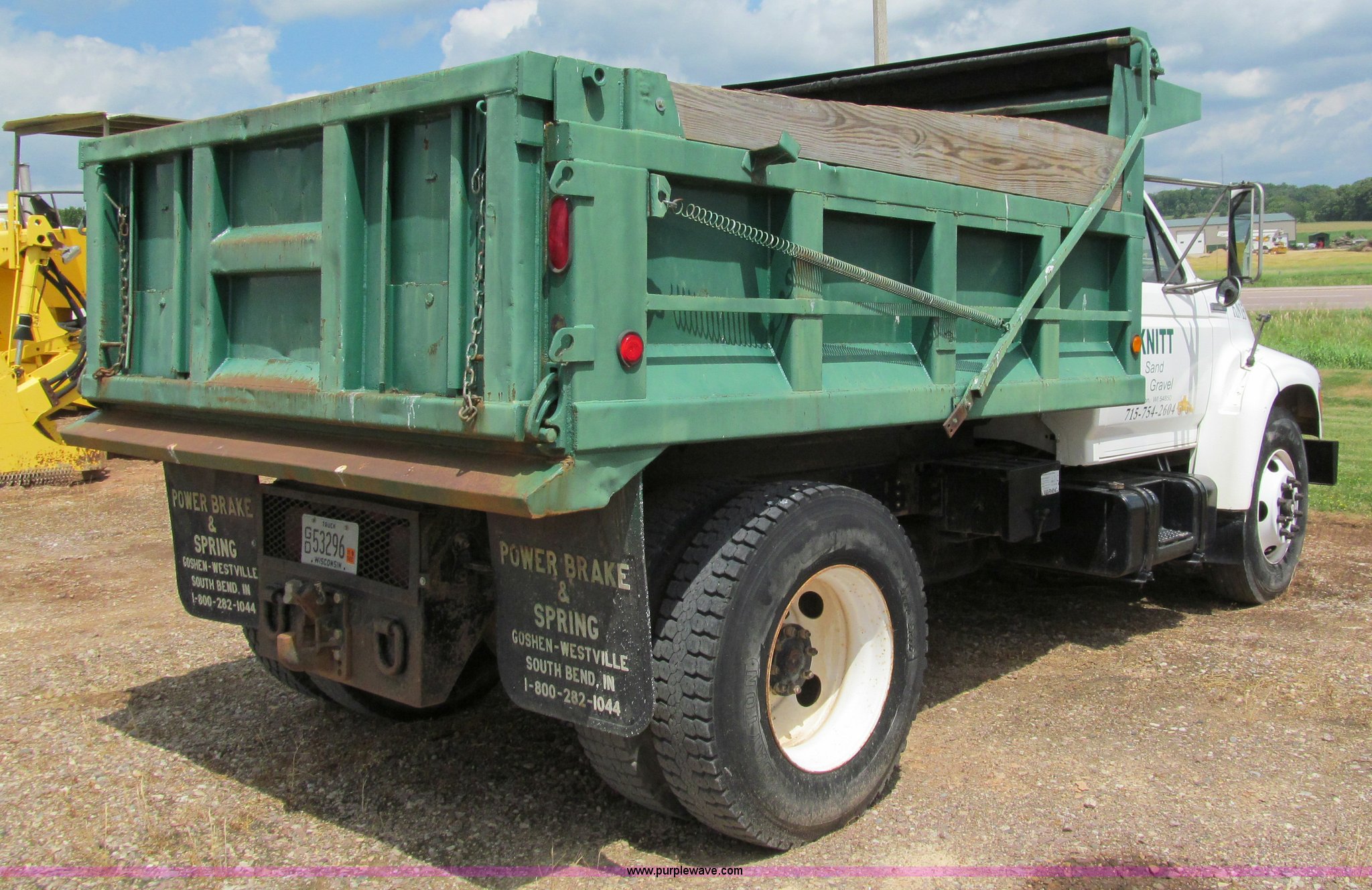 Purple Wave is selling a used Construction Dump Truck in Wisconsin. This item is a 1996 Ford F850 dump truck with the following: 27,045 miles on odometer, Cummins ISB 5.9L diesel engine, Six speed manual transmission, Rogers 10' steel box with hoist, Rogers dump controls, Roll over tarp, Spring suspension, Pintle hitch, 153" wheelbase, 11R22.5 tires, FAWR 9,000 lbs, RAWR 21,000 lbs